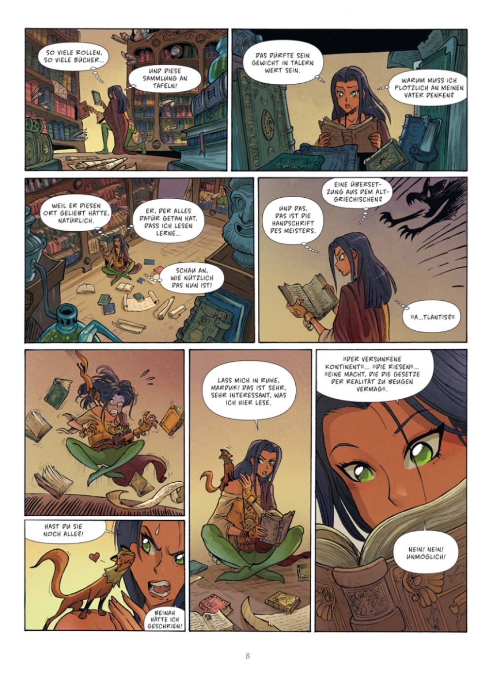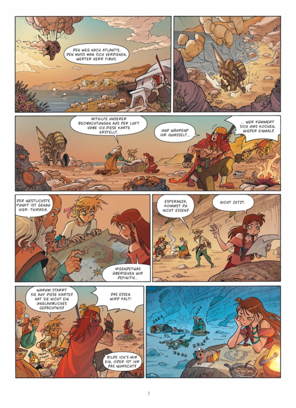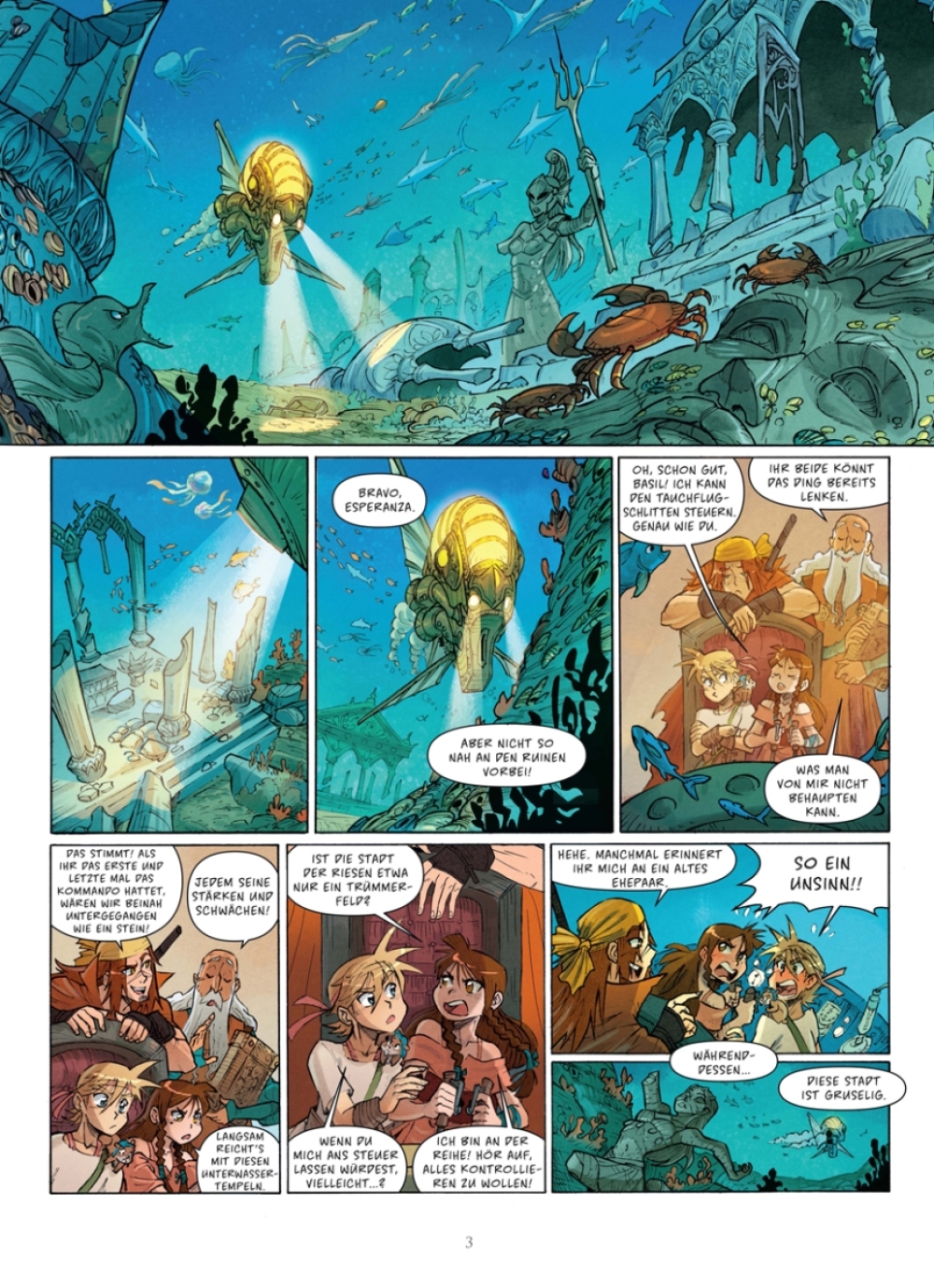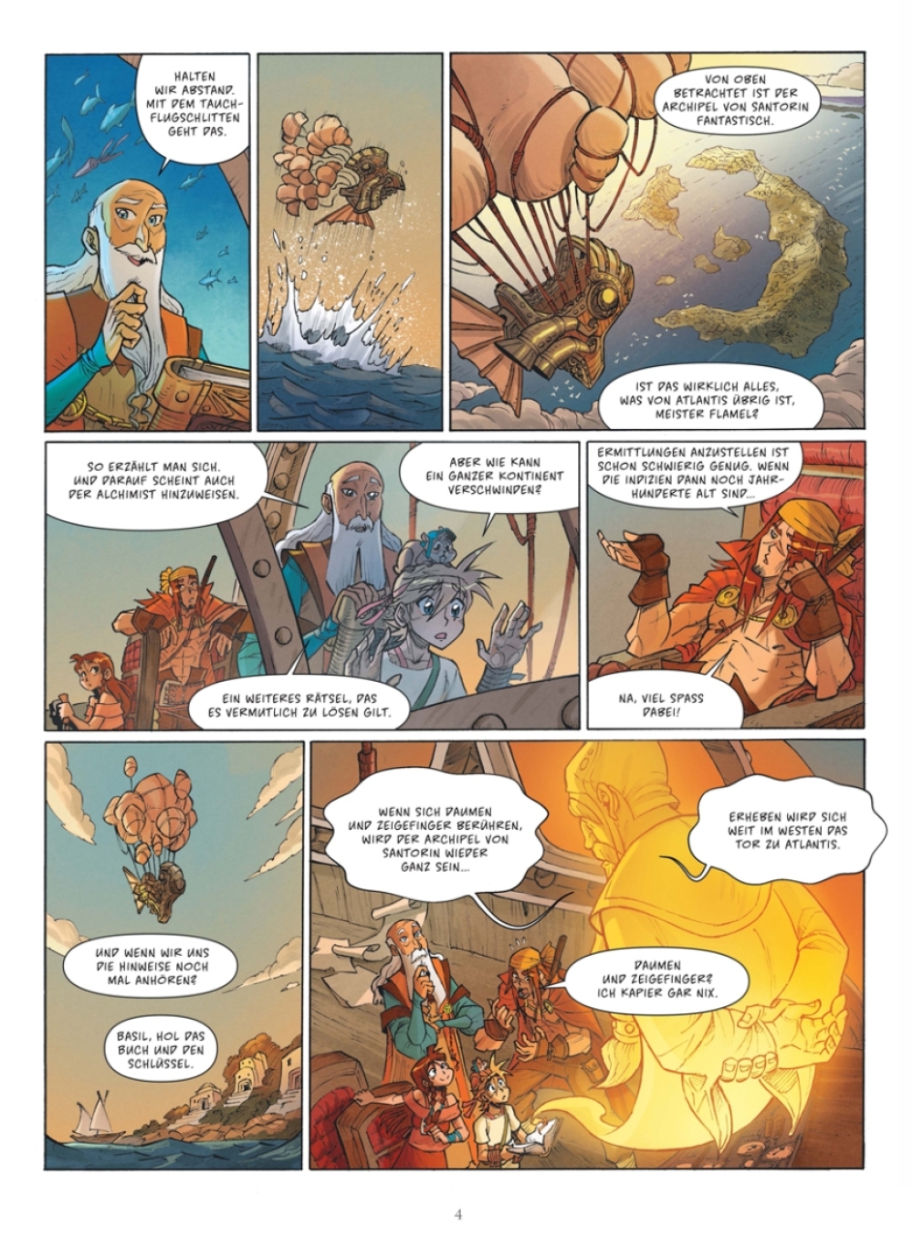 Diesmal tauchen Esperanza und Basil in das Herz des grandiosesten aller verlorenen Kontinente ein: Atlantis. Aber sie werden keine Zeit haben, um die Wunderwerke dieser mystischen Kultur zu bestaunen, denn die Stahlmaske sinnt auf Rache! Er hetzt ihnen Salamander auf den Hals, zusammen mit zwei Cyborgs, die so elegant wie tödlich sind. Unsere Helden werden unerbittlich gejagt und müssen währenddessen das schrecklichste Rätsel ihrer bisherigen Reise lösen: das Mysterium einer ganzen Armee von Riesen.