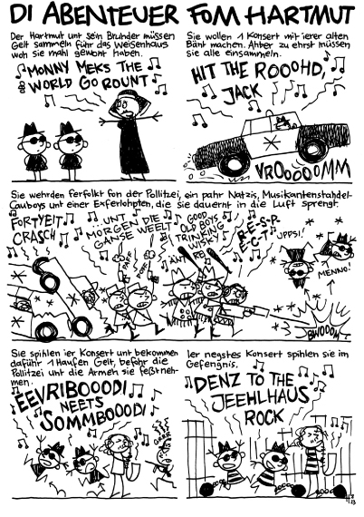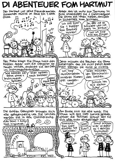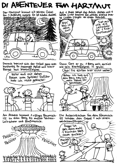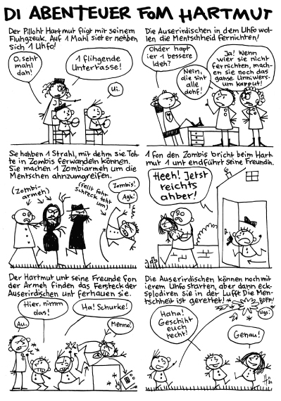 Der Hartmut geht ins Kino und erlebt über 50 Filmklassiker hautnah mit. Von Doktor Caligari bis Sharknado II werden mehr oder weniger bedeutende Werke aus rund 100 Jahren Filmgeschichte auf je einer Seite komplett nacherzählt und dabei alle Plot Twists gnadenlos gespoilert. Ein unverzichtbarer Band für alle, die mitreden wollen, wenn es um Filmklassiker geht, aber keine Lust haben, sich stundenlang die alten Schinken reinzuziehen.
