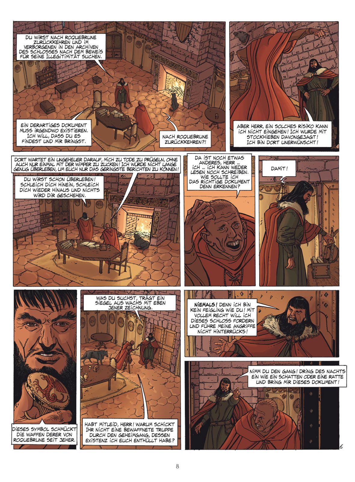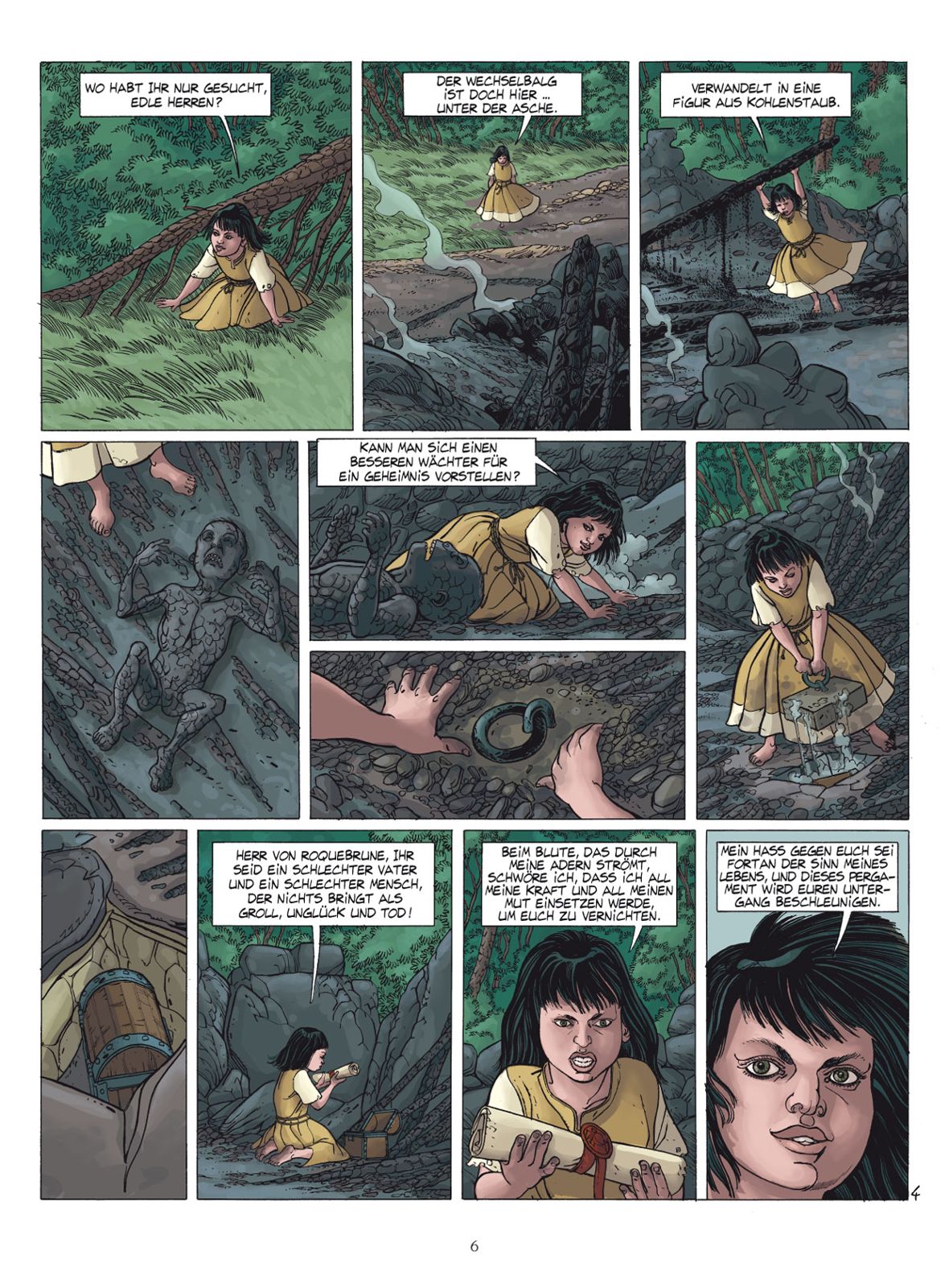Der Tod von Abel, Sohn von Payen de Roquebrune, stürzt den jungen Regenten in einen schrecklichen, zerstörerischen Wahn. Smerald, die Hexe, wird als Schuldige dieses Verbrechens bestimmt. In seinem Delirium stürzen sich wiederholt geflügelte Dämonen auf Payen, als ob sie Rache nehmen wollten für seinen früheren Ehebruch. Währenddessen schickt der Cousin von Payen, der Herr von Haute Terre, den Diener Perrin, um ein Pergament zu finden, das seinen legitimen Anspruch auf die Ländereien von Roquebrune bestätigt ...