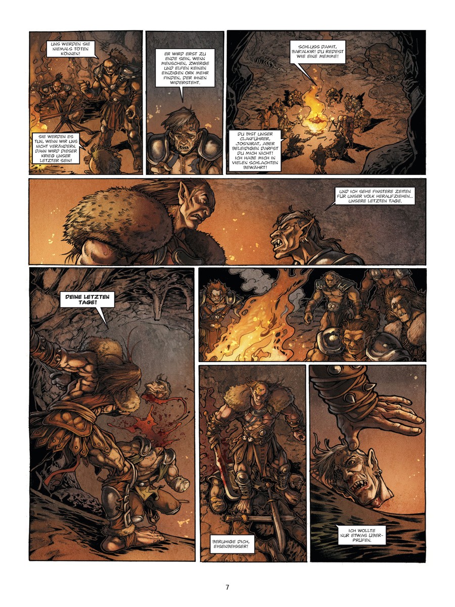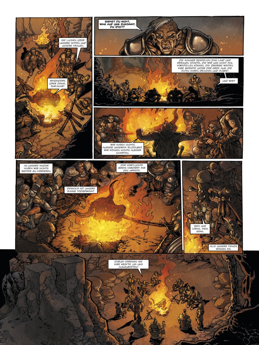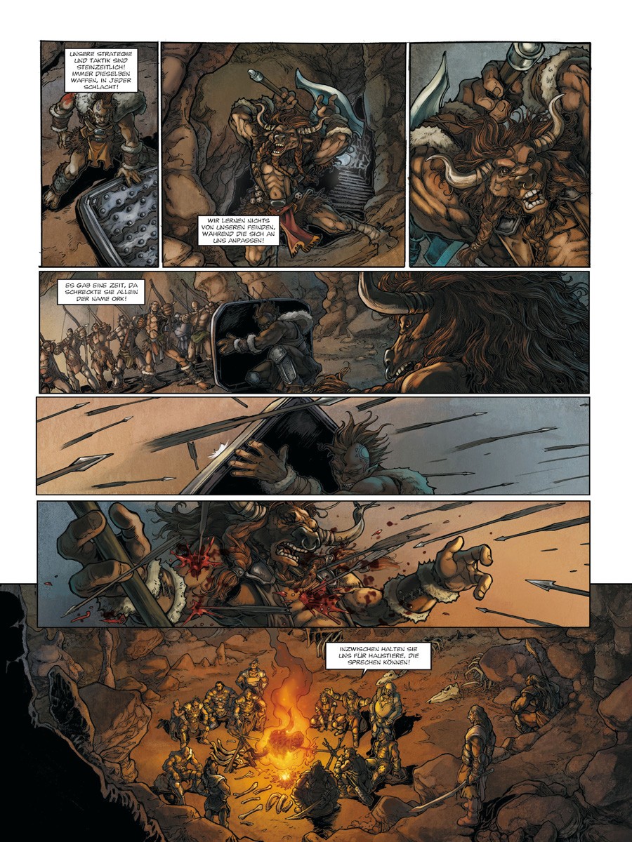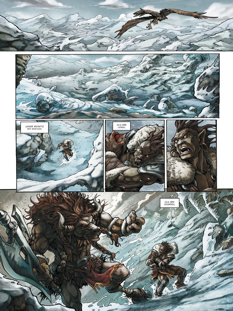 Den tausendjährigen Gesetzen folgend, bearbeiten die Orks alles, was sich auf ihrem Weg befindet, mit Blut und Stahl. Nun aber haben sich Elfen, Zwerge und Menschen verbündet, um sämtliche Orks auszurotten. Und ihr glorreicher Sieg steht kurz bevor; es bleibt nur noch, den König und dessen letzte Krieger auszulöschen. Unter den letzten Überlebenden seines Volkes befindet sich allerdings ein Ork, der nicht zu fliehen gedenkt – Kil’Tyrson. Doch seine Augen sind blass – für die Orks ein Zeichen von Feigheit – und in seinen Adern fließt das schlimmste Laster von allen: die List. Ein brachiales Fantasy-Spektakel des Starautoren Olivier Peru (Zombies, Nosferatu) und Daxiong / Lorusso.