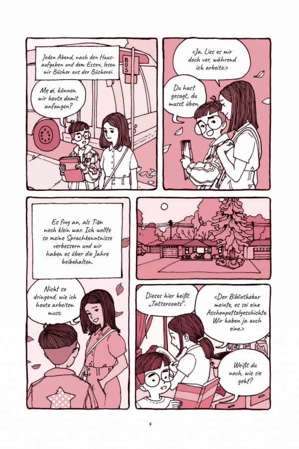 So auch Tiến, der seinen Eltern immer noch gerne seine Lieblingsgeschichten aus den Büchern vorliest, die er sich in der örtlichen Bibliothek ausleiht. Besonders für Tiến, der in den USA geboren sowie aufgewachsen ist, und seine Mutter, die aus Vietnam flüchten musste, sind Märchen wie „Allerleirauh“ oder „Die kleine Meerjungfrau“ mehr als ein Hilfsmittel, um gemeinsam die Sprache ihrer neuen Heimat zu erlernen.