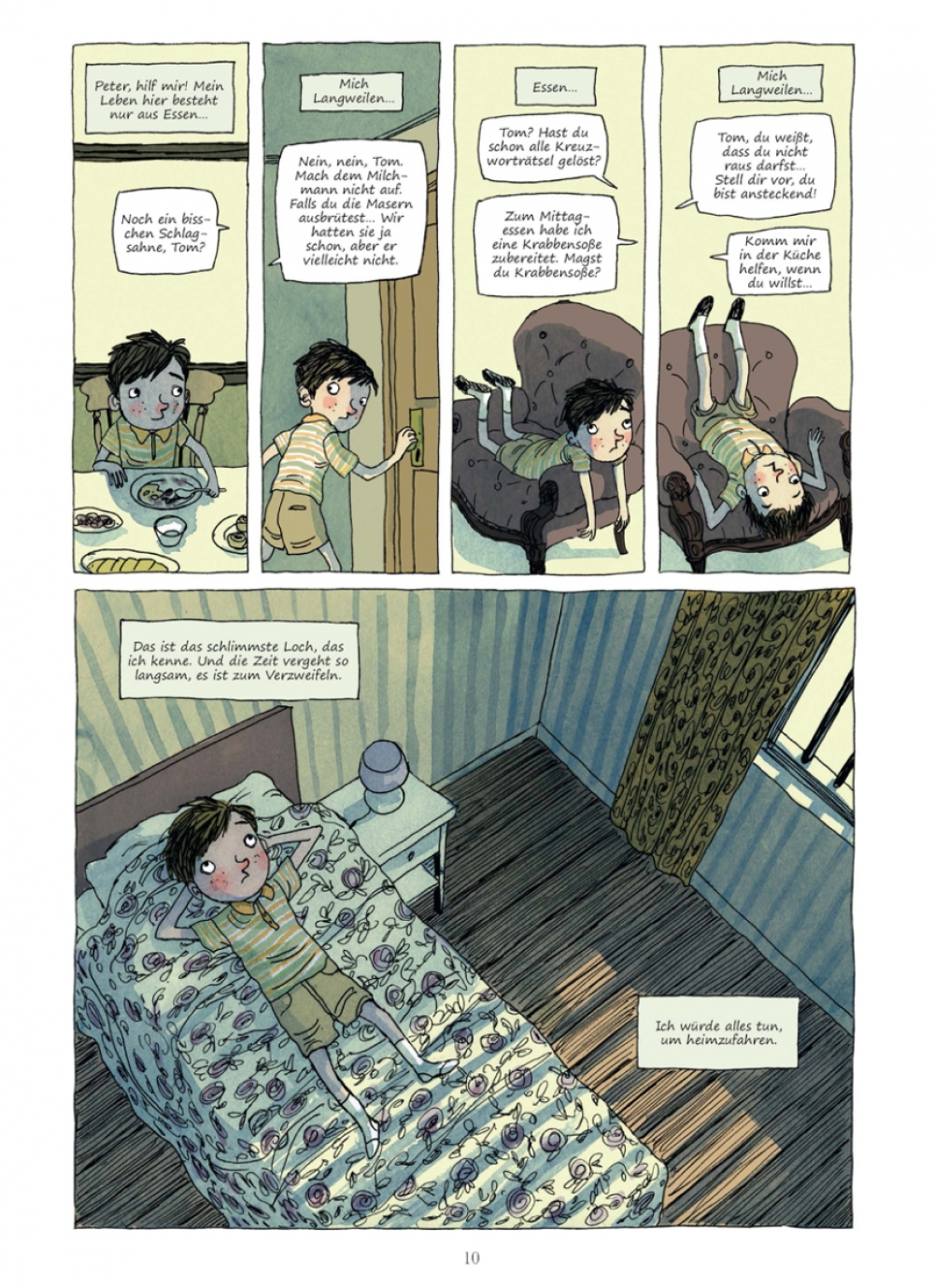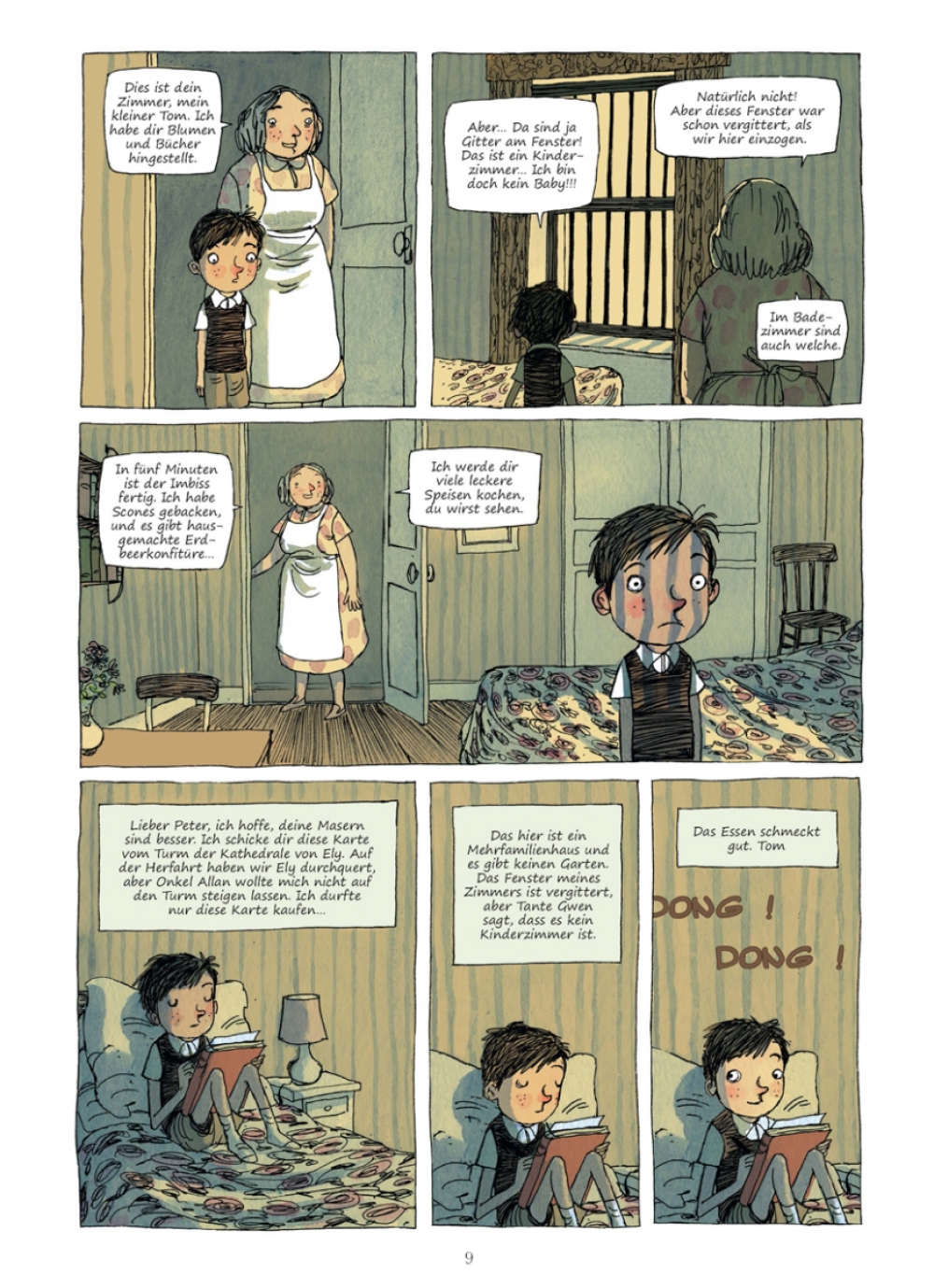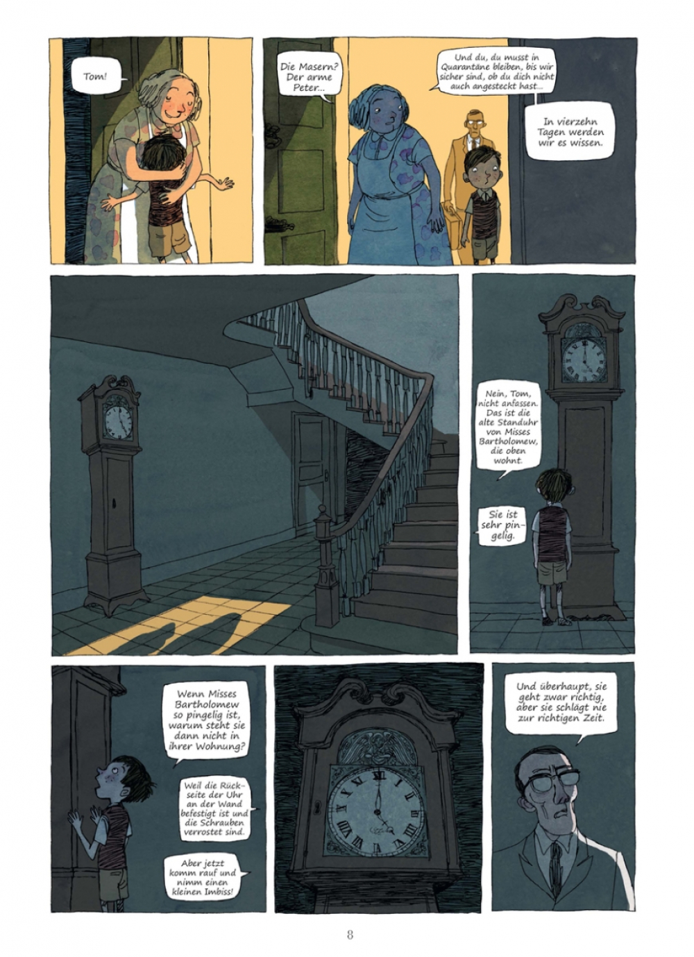 Weil sein Bruder die Masern hat, schicken seine Eltern Tom zu Onkel und Tante in die Stadt in Quarantäne. Zwei Wochen muss er in ihrem Haus bleiben, und das ausgerechnet zum Sommeranfang! Da hätte er ja fast lieber die Masern! Denn außer Essen und Schlafen gibt es dort nichts zu tun, und Tom langweilt sich furchtbar. Bis eines Nachts die alte Uhr im Flur die dreizehnte Stunde schlägt und die Tür zu einem verborgenen Garten preisgibt. Und als wäre das nicht genug, merkt Tom schnell, dass er an diesem magischen Ort unsichtbar ist – außer für ein Mädchen namens Hatty, für das die Zeit scheinbar anders verläuft als für normale Menschen…