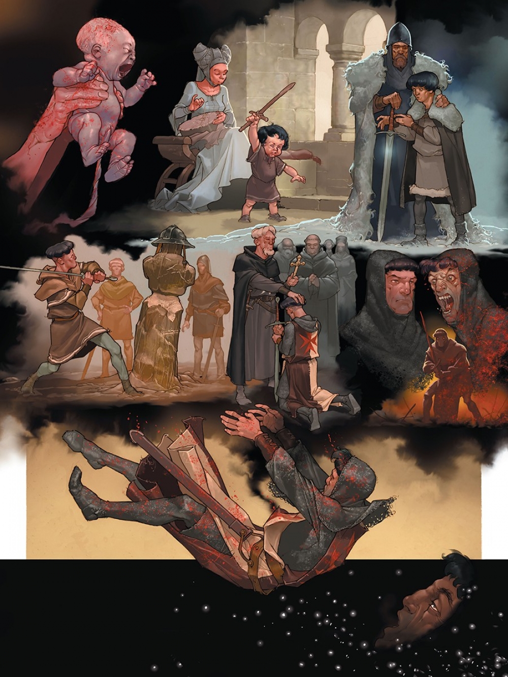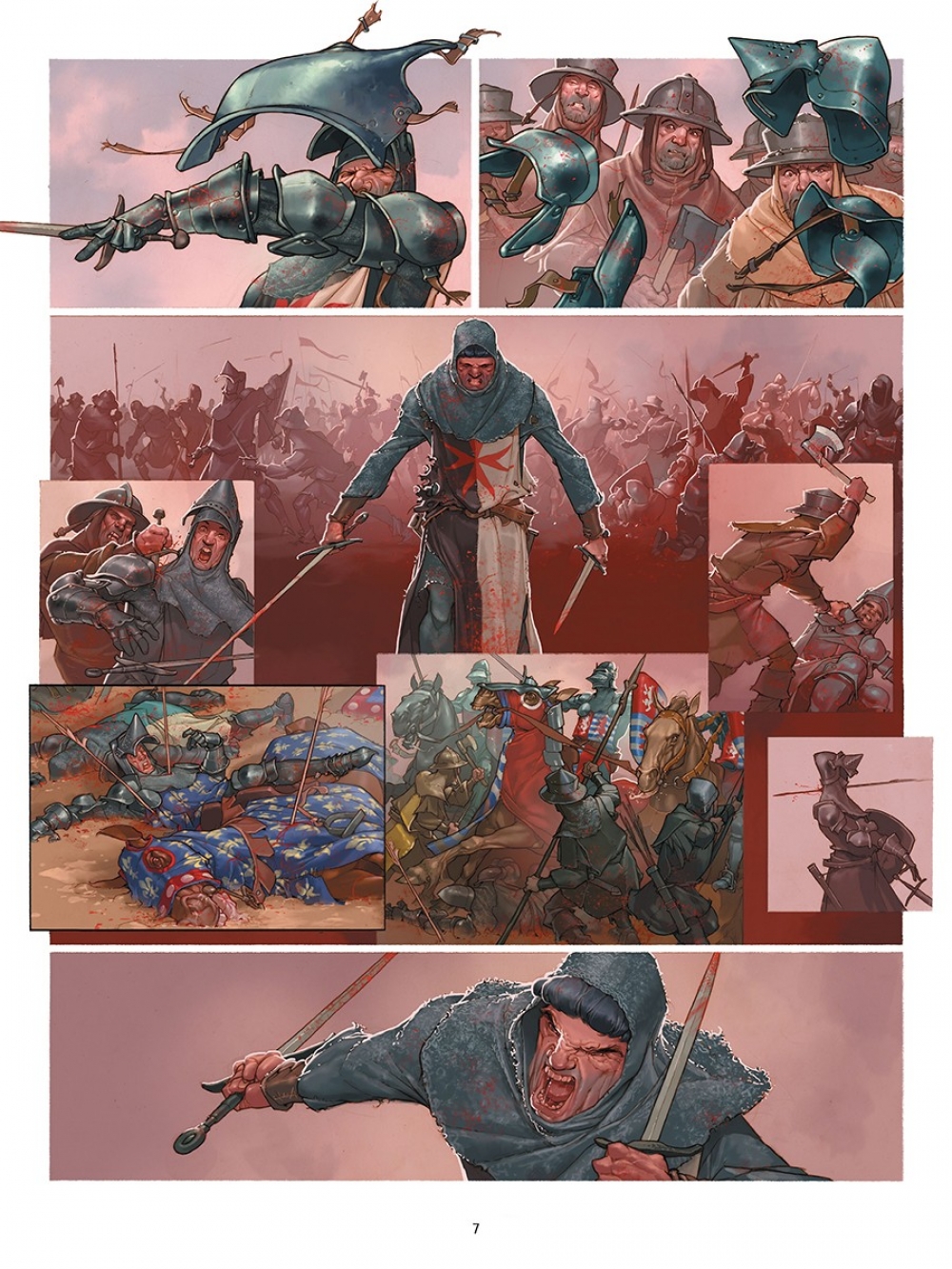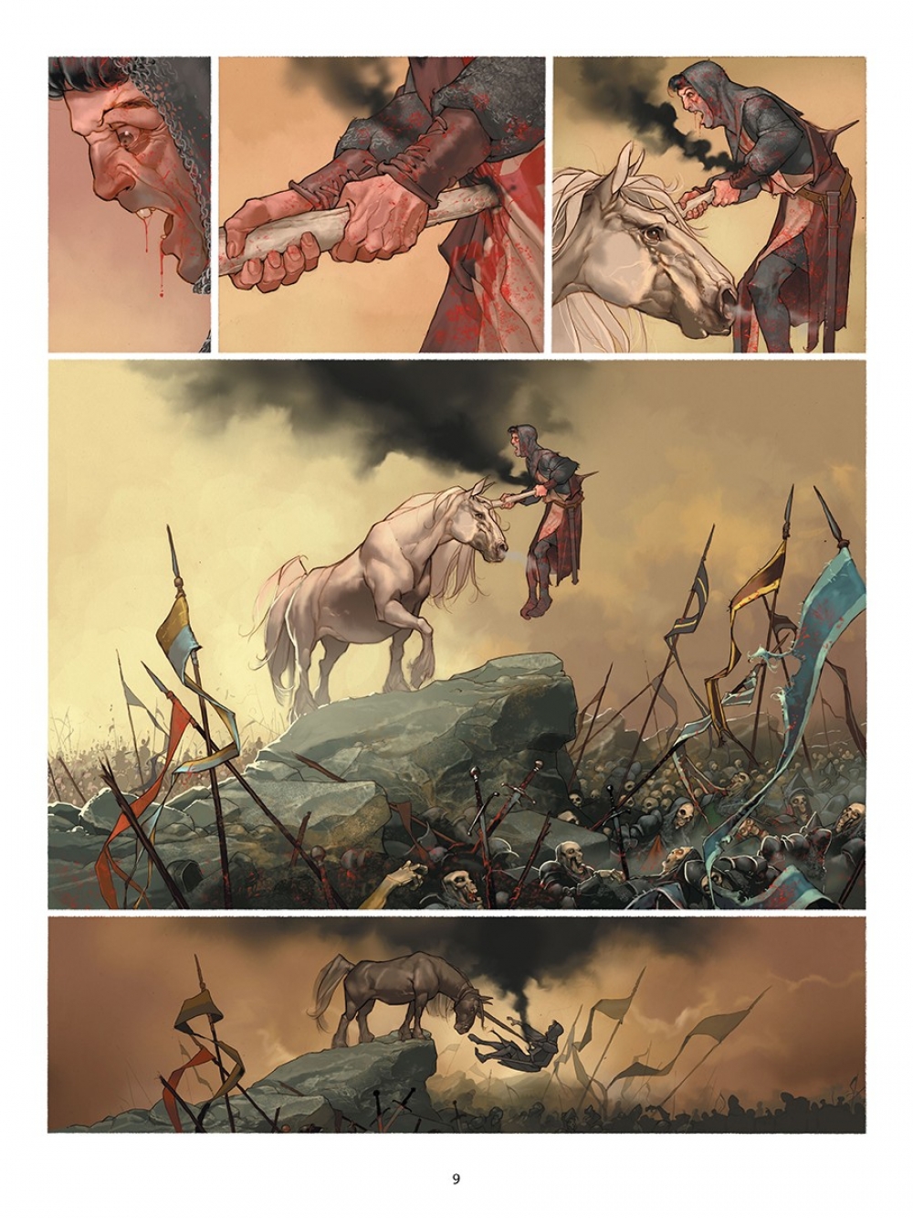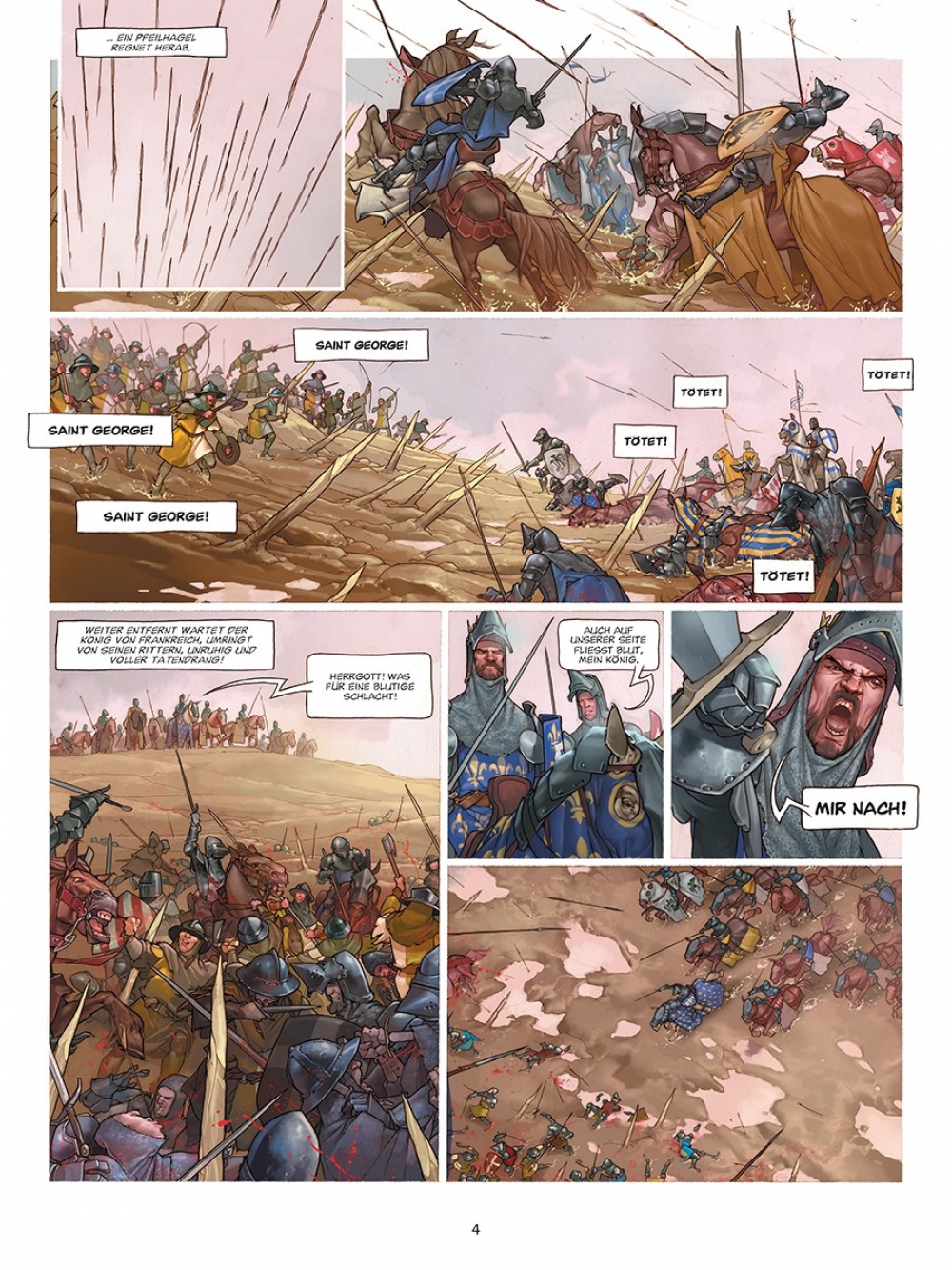 Im August 1346 erleiden die Franzosen und ihre Verbündeten bei dem Örtchen Crécy eine verheerende Niederlage. Selbst König Philipp VI. gerät im Schlachtengetümmel in Bedrängnis, und als sein Pferd unter ihm zusammenbricht, überlässt ihm der Ordensritter Juan Fernandez de Heredia sein eigenes Reittier. Nur steht er jetzt allein auf dem Schlachtfeld, umzingelt von Feinden, und trotz berserkerhafter Gegenwehr bricht er schließlich unter den Hieben seiner zahllosen Angreifer zusammen. Kurz bevor er das Bewusstsein verliert, hat er jedoch eine Vision: Er wähnt sich von einem Einhorn durchbohrt! Eine Schlacht mit weitreichenden Folgen. Zum einen ist sie der Auftakt eines Konflikts, der sich noch über hundert Jahre hinziehen wird. Zum anderen wirft sie Heredia völlig aus der Bahn. Besessen von seiner verstörenden Erscheinung, macht er sich auf die Suche nach dem Einhorn. Oder vielmehr nach einer Erklärung, warum er noch lebt.