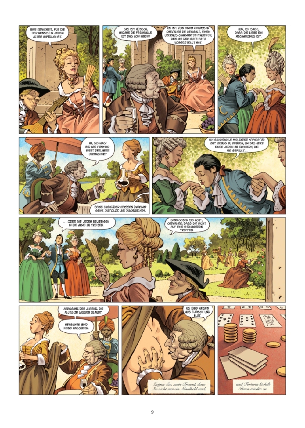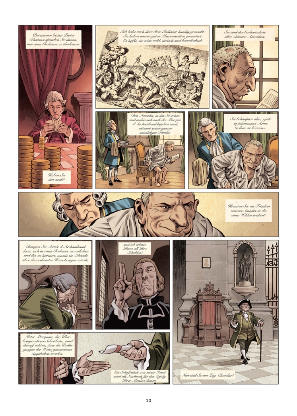 Nachdem er mit »Der große Indienschwindel« einen modernen Klassiker der Comicliteratur verfasste, legt Alain Ayroles seine neue fiktiv-historische Graphic Novel vor: Im Stil eines Briefromans à la »Gefährliche Liebschaften« und unterstützt durch die makellose Zeichenkunst von Richard Guérineau lässt der unnachahmliche Erzähler uns tief in das Zeitalter der Aufklärung eintauchen. »Der Schatten der Aufklärung« ist das Porträt eines Mannes, der wie kein Zweiter die dunkle Seite jener Epoche verkörpert.