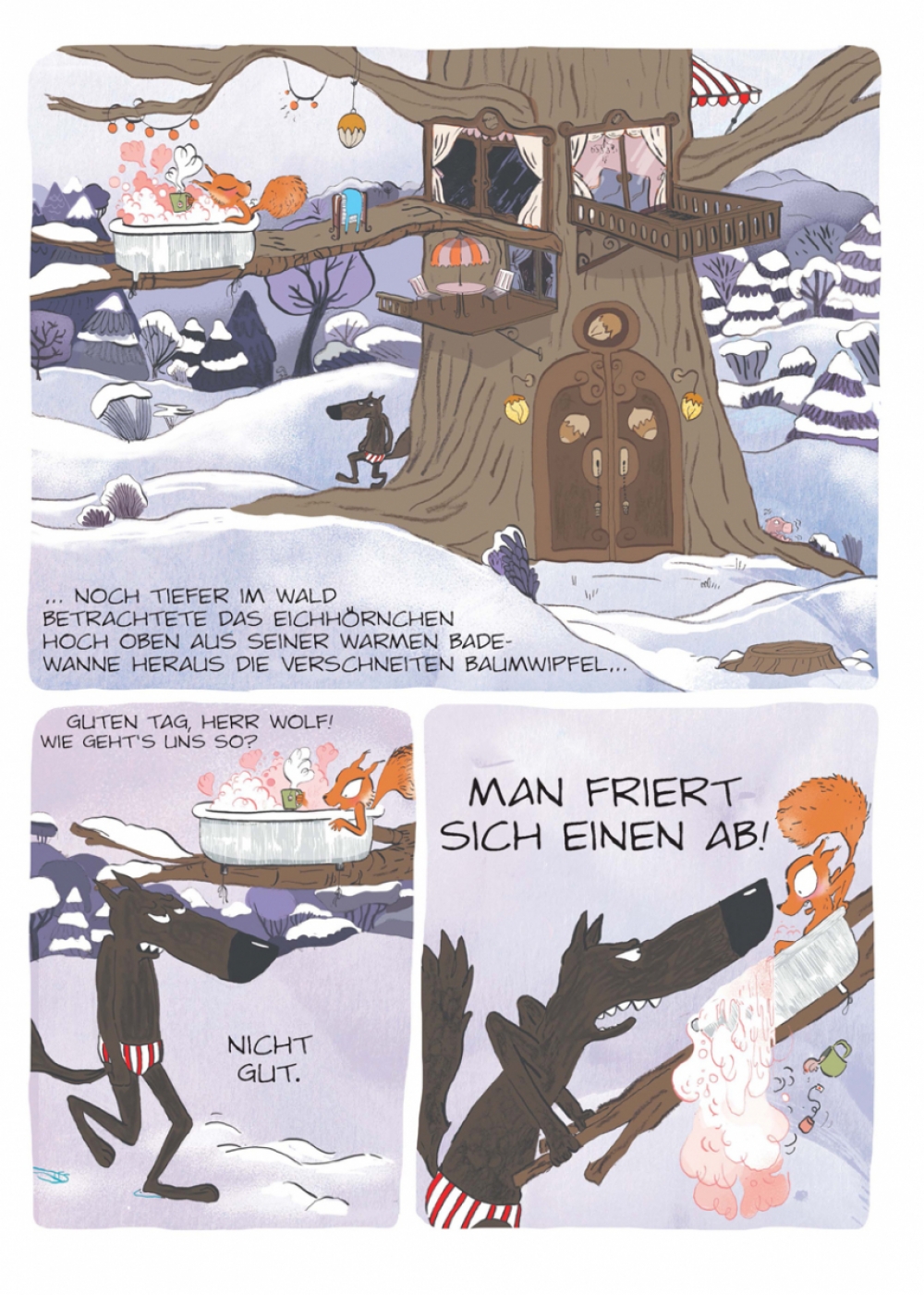 Der Winter kommt, und der Wolf im Wald kann nicht aufhören zu betonen, dass er sich wirklich einen abfriert. Aber wie kann es sein, dass dem Wolf trotz seines wunderschönen Slips so kalt ist? Die Waldbewohner täten gut daran, das bald rauszufinden, denn sie wollen sicher nicht, dass der freundliche Kerl sich wieder in den großen bösen Wolf verwandelt...