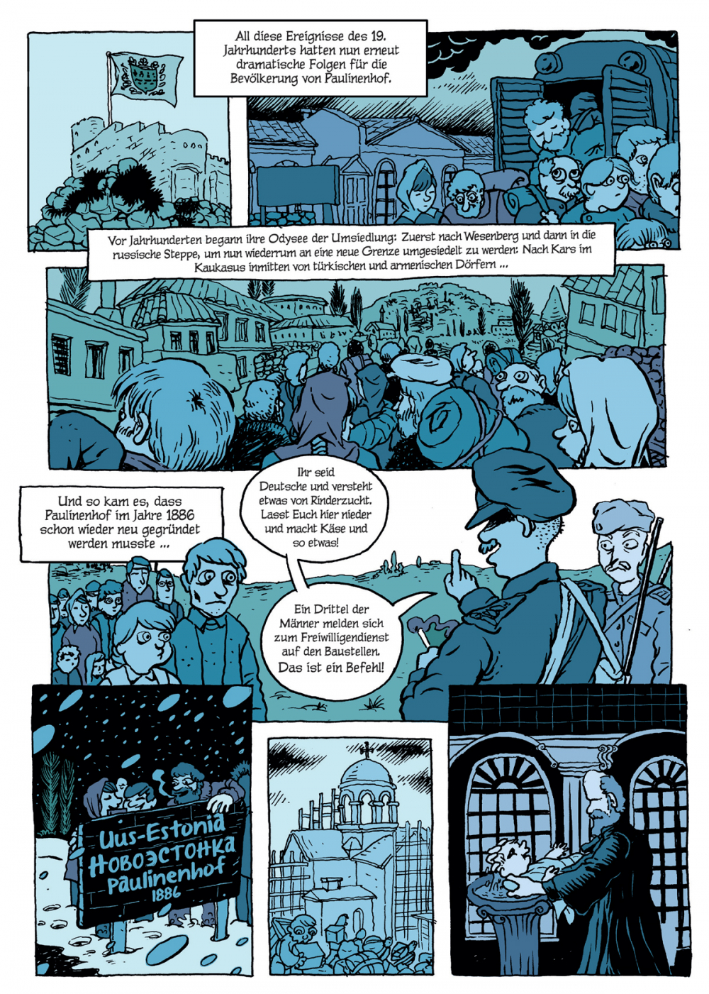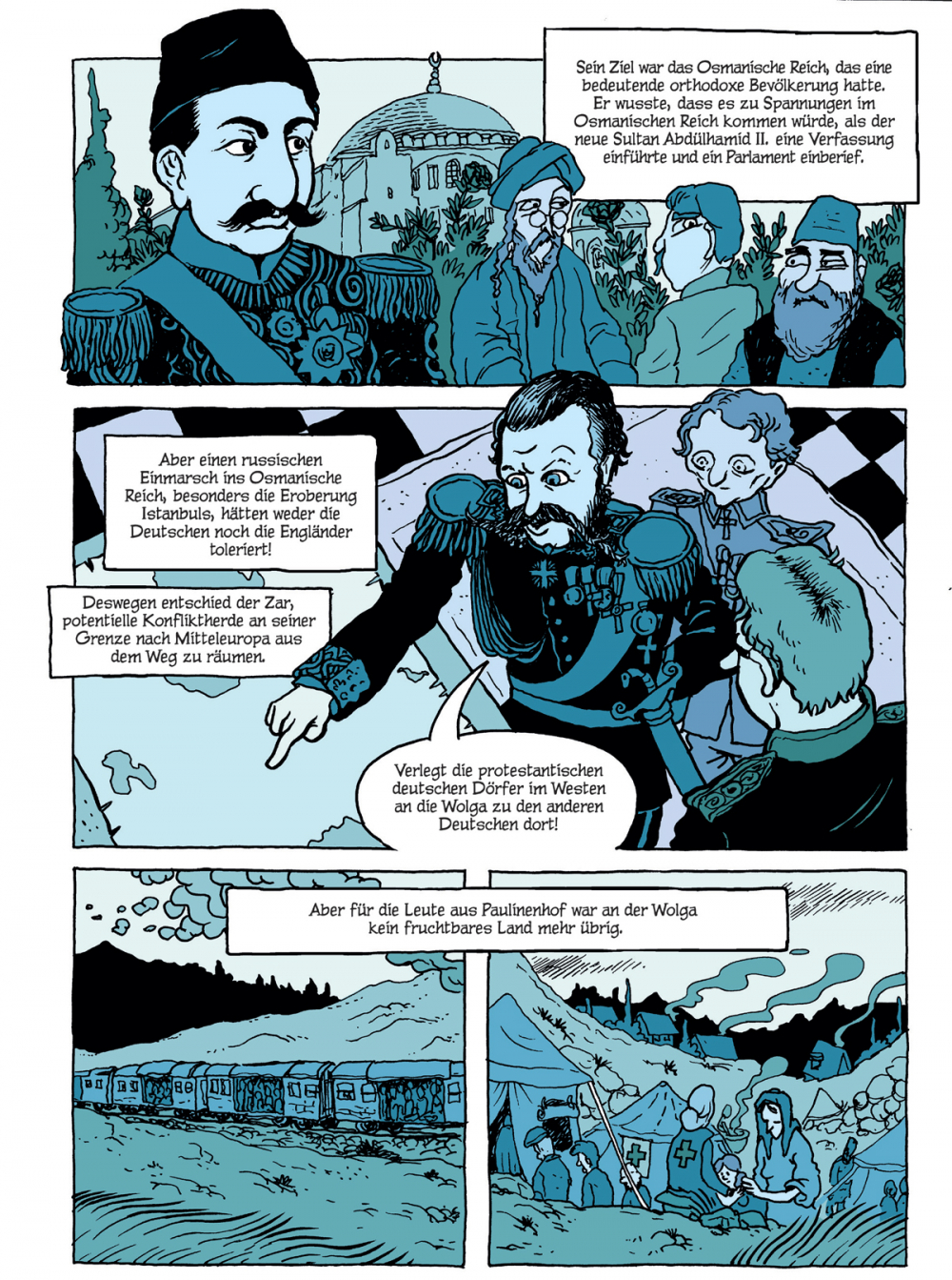 In dieser Graphic Novel wird einerseits die historische Geschichte eines kleinen Dorfes namens Paulinenhof erzählt, zum andern die Lebensgeschichte eines Deutschen, der nicht genau weiß, ob er Deutscher oder Türke ist.