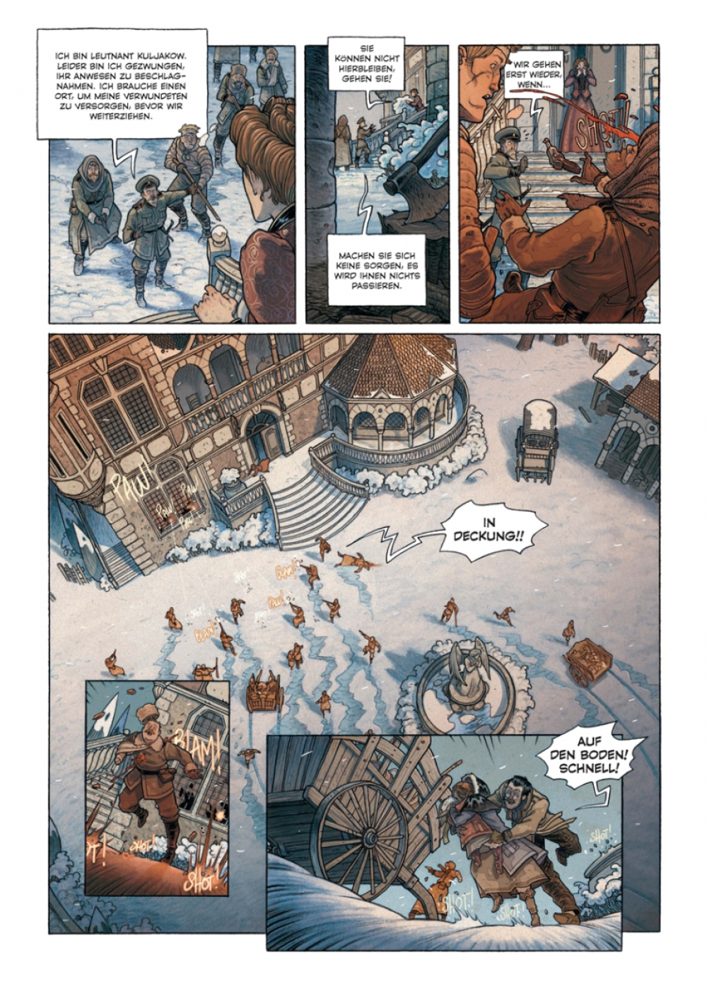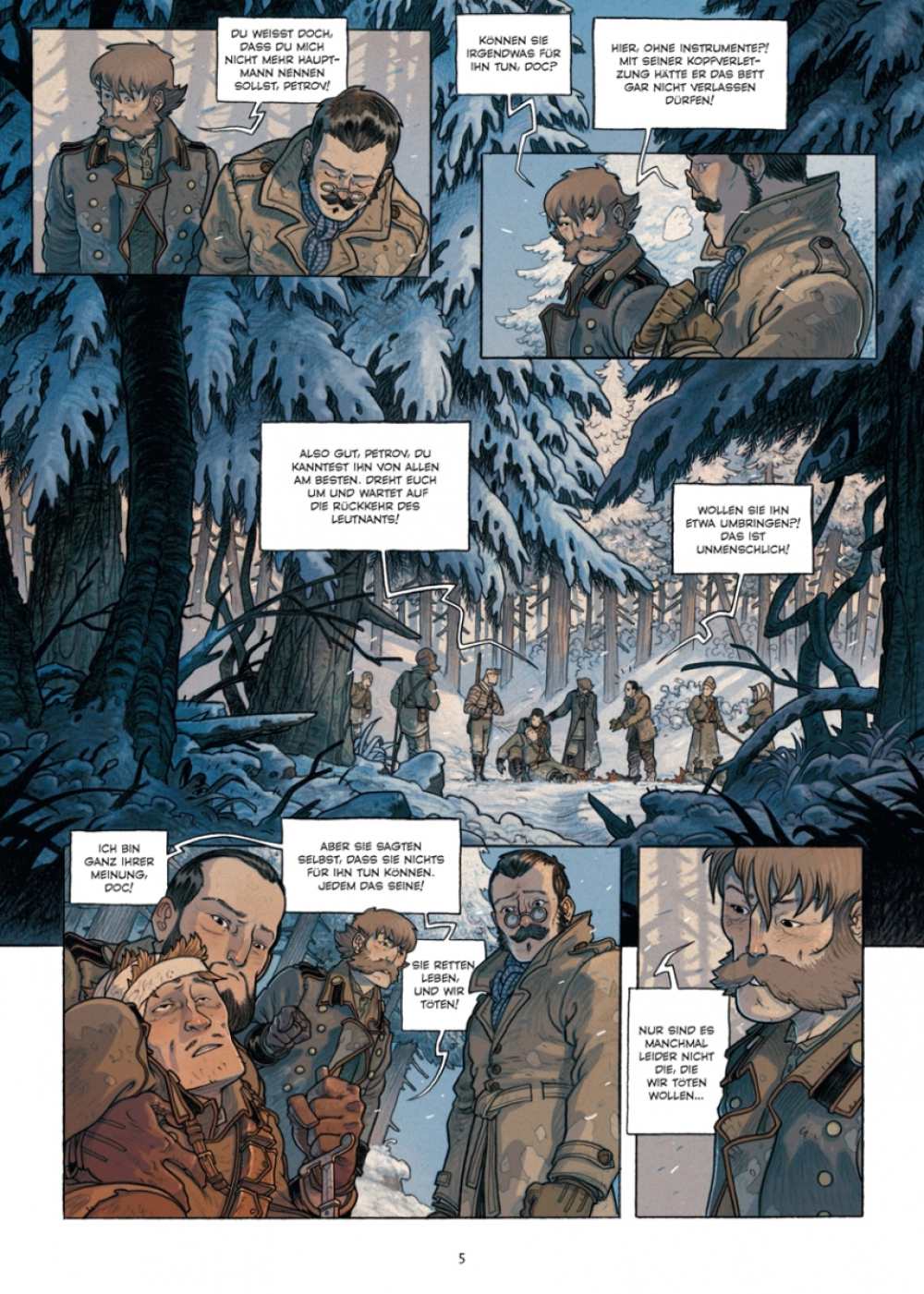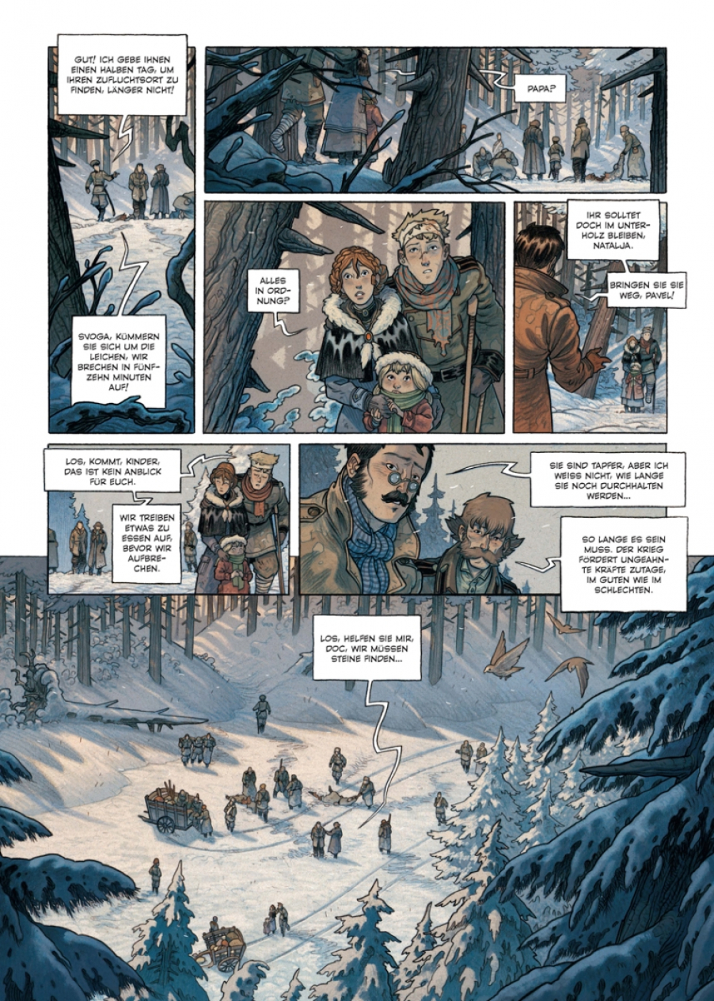 Mit letzter Kraft schleppt sich eine zusammengewürfelte Gruppe russischer Soldaten und Zivilisten durch den Schnee, egal wohin, bloß weg von der Front des Ersten Weltkriegs. Um die Moral zu heben und die Verwundeten versorgen zu können, machen sie Rast bei einem entlegenen Gutshof. Die Baronin empfängt sie mit offenen Armen, verbirgt jedoch zugleich ein Geheimnis: sie beherbergt eine Gruppe Kinder, die sie vor den Verwüstungen des Krieges schützen will. Schnell freunden sich die Töchter des Truppenarztes mit ihnen an, und für einen Moment können sie den Krieg vergessen. Doch schon bald werden die Soldaten unruhig, denn eine grausige Kreatur taucht in ihrer Mitte auf…
