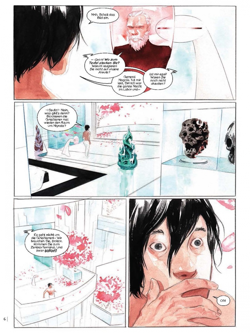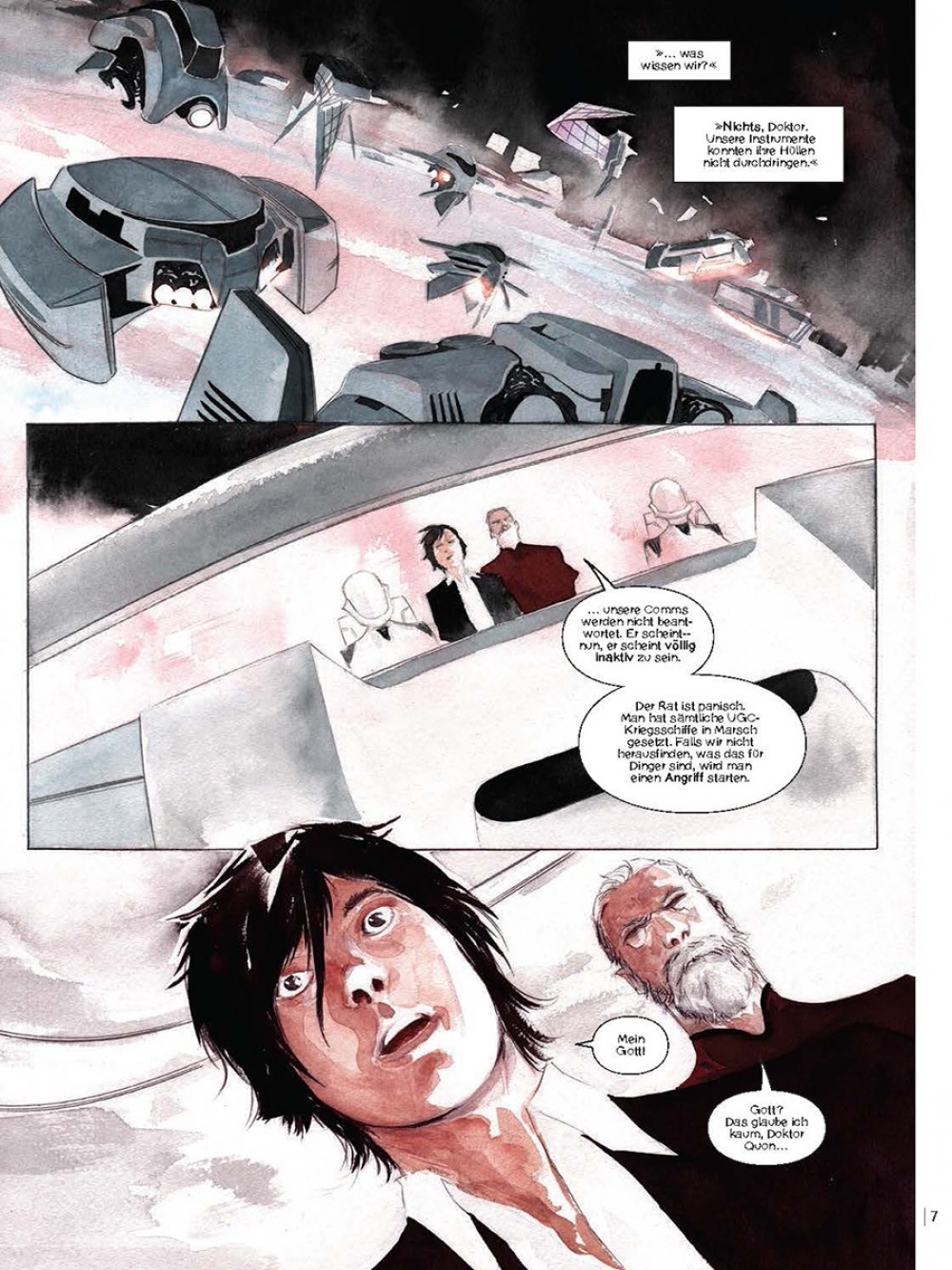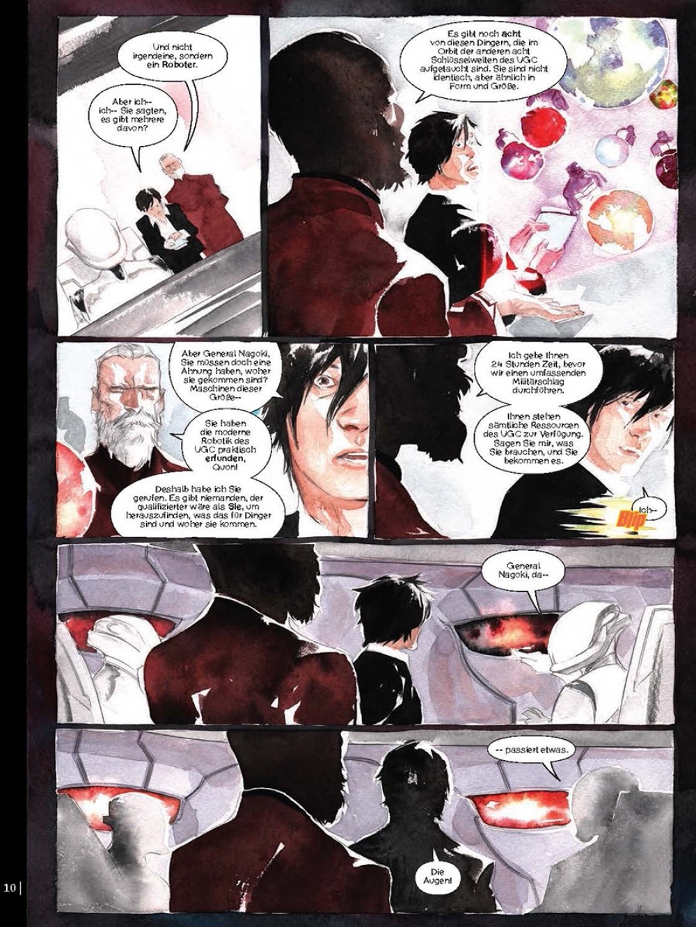 Als Jeff Lemire (»Sweet Tooth«) sich daran machte, sein neues Science Fiction Epos »Descender« zu entwerfen, nahm er an, dass die Story um den einsamen, von allen Kopfgeldjägern der Galaxie verfolgten Roboterjungen TIM-21 ihn in die entferntesten Winkel des Weltalls führen würde. Stattdessen landete er in Hollywood. Denn kaum hatten er und Zeichner Dustin Nguyen ihr Projekt im letzten Sommer erstmals öffentlich in groben Zügen umrissen, gaben sich die Filmstudios bei ihnen die Klinke in die Hand. Eine bewegende Geschichte über die emotionale Zweischneidigkeit künstlicher Intelligenz, von Dustin Nguyen in atmosphärisch dichte Aquarelle umgesetzt, deren Einflüsse von Miyazaki und Otomo bis Stanley Kubrick (»2001«) reichen. Und schon jetzt einer der SF-Comics des Jahres!