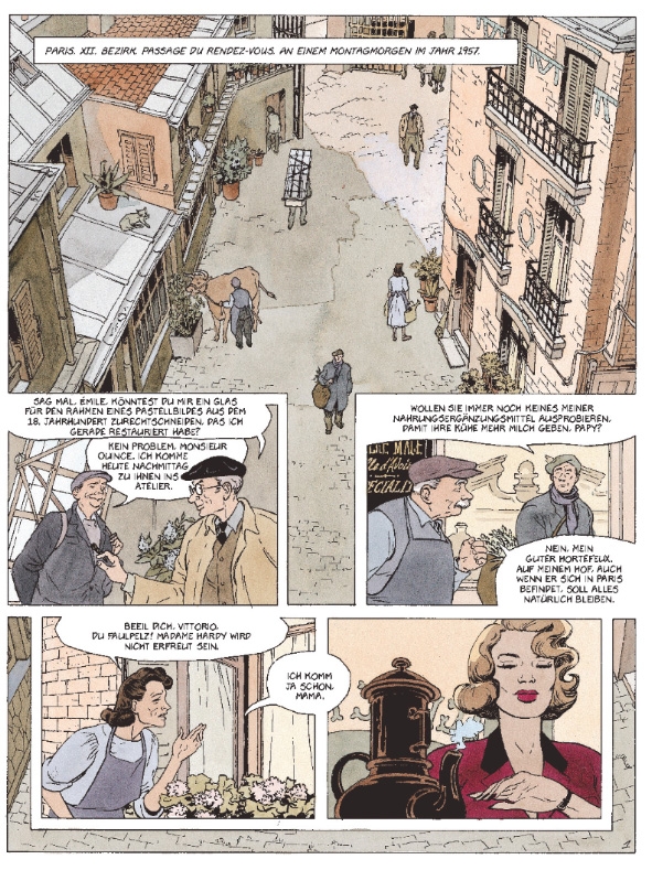 Wie Léo Malet in seinen Romanen haben Pierre Christin und Annie Goetzinger diese Umgebung und diesen Zeitraum als Rahmen für die Handlung ihrer Geschichte gewählt. Der Leser bewegt sich also zwischen den Menschen und der städtischen Landschaft einer perfekt abgebildeten Hauptstadt: Seien es Kleidung (eine Concierge ohne Kopfbedeckung, die ihren Besen festhält; Büromenschen mit Hut oder Arbeiter in Arbeitskitteln; junge Frauen in hauchdünnem Negligé oder knielangem Kostüm), Autos (die ersten Citroën DS erscheinen als Konkurrenz zu den Ford Vedette), Sehenswürdigkeiten (darunter die berühmten Löwen auf der Place Félix-Eboué, die heute verschwundene Cour Saint-Emilion oder auch die Höfe des Vororts Saint Antoine)...