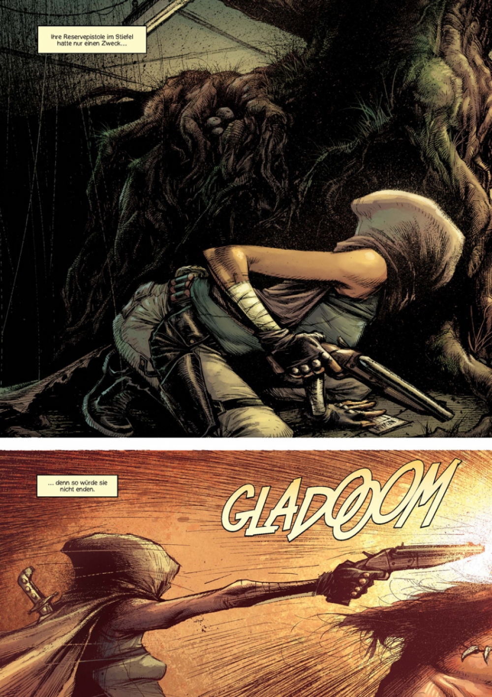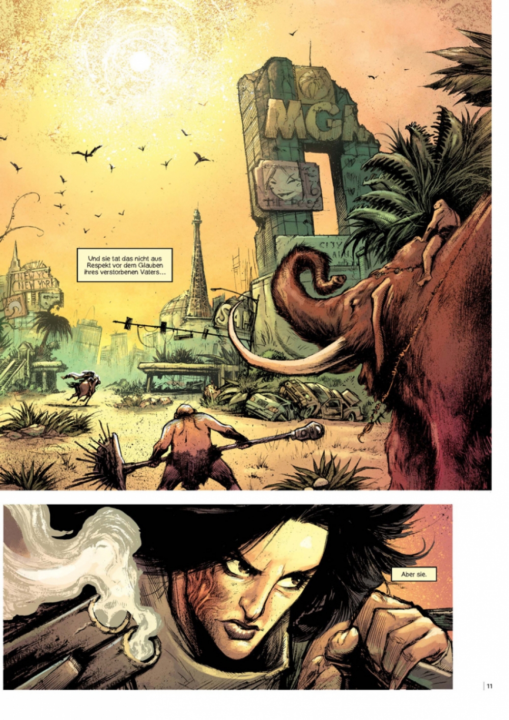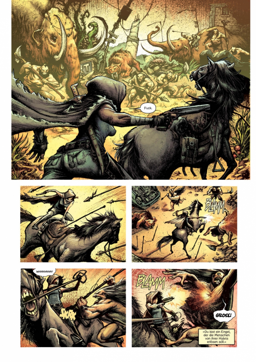 Das konnte nur schiefgehen. Dabei liegen die Probleme der Menschheit auf der Hand: Ressourcenvergeudung, Umweltzerstörung, Genpfuscherei. Und immer wieder Krieg, Terror, Mord und Totschlag. So kamen einige Oberschlaue mit unterentwickeltem Verantwortungsgefühl zu dem Schluss, das Problem des Menschen sei einzig der Mensch und vor allem sein Hang zu religiöser Intoleranz. Man müsse nur das dafür zuständige Hirnareal ausschalten, und alles wird gut. Wie gesagt, eine hirnrissige Idee. Innerhalb kürzester Zeit schraubt sich die menschliche Evolution zurück auf Neandertalerniveau Rick Remender hat reichlich Gelegenheit, seinen gallig schwarzen Humor von Jonathan Wayshak und Jordan Boyd so brillant wie drastisch in Szene setzen zu lassen. Ein wahrhaft endzeitliches Vergnügen!
