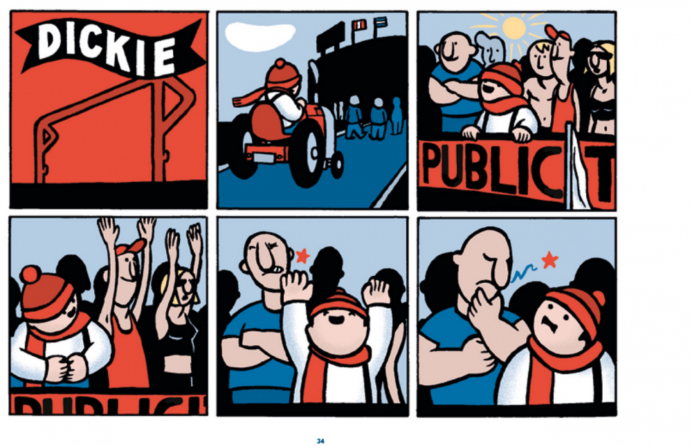 1. Die Geschichten kommen gänzlich ohne Worte aus; und 2. Dickie bietet eine brüllend komische, universelle Leseerfahrung getränkt mit Sarkasmus und wagt zudem einen Blick in die Abgründe der menschlichen Seele.