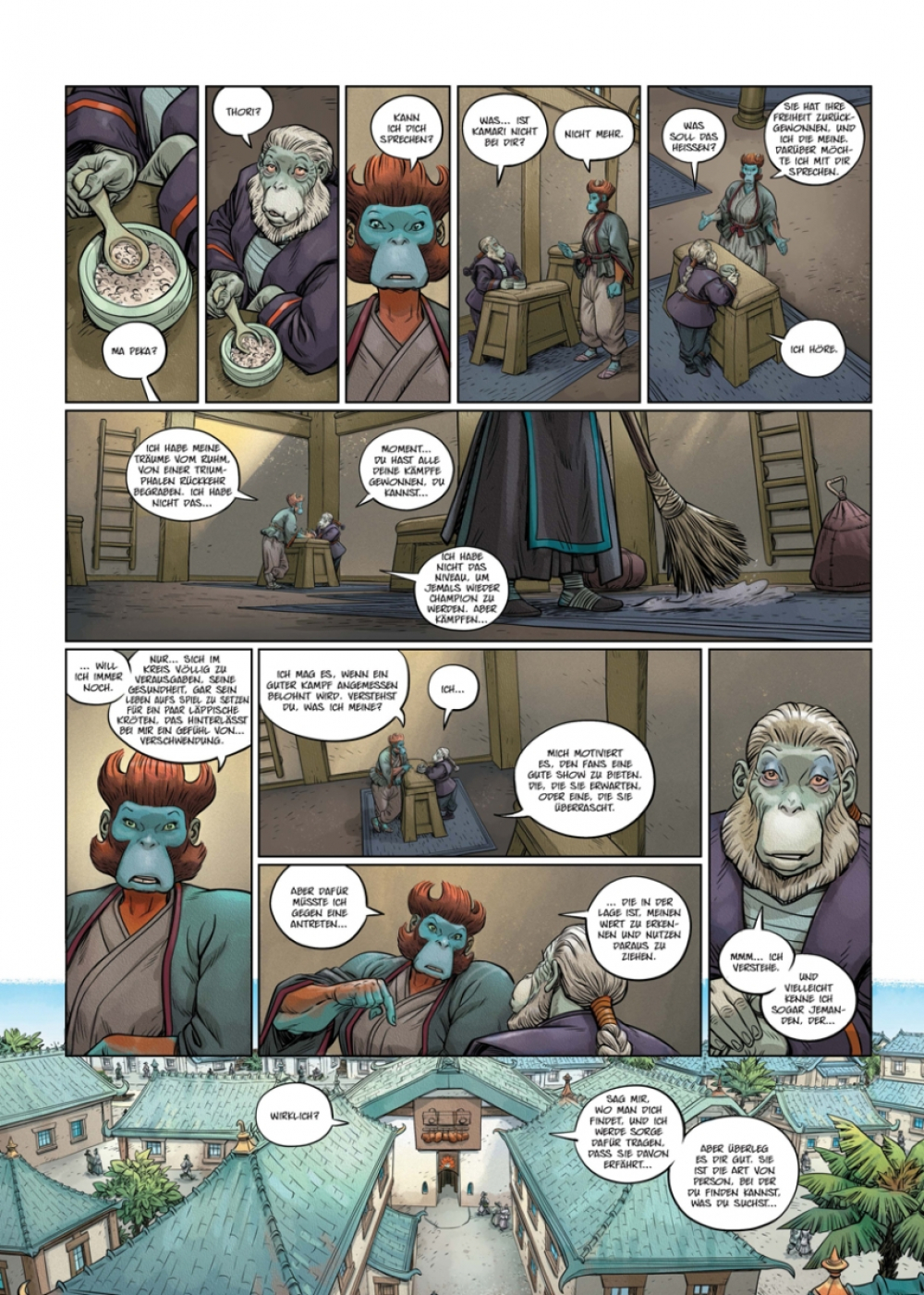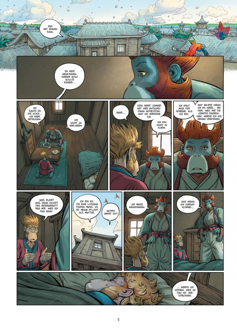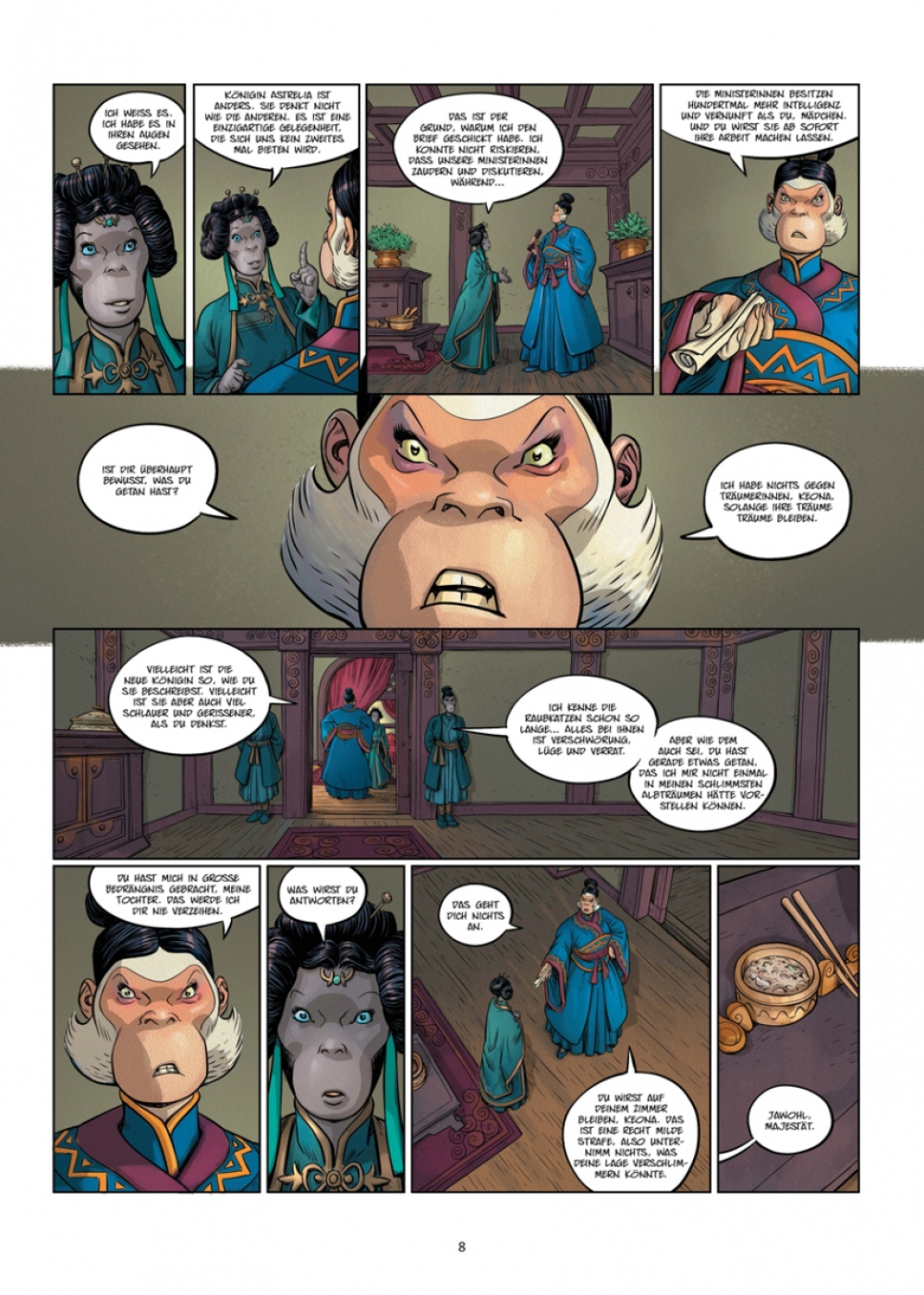 Der zweite Zyklus der »5 Reiche« führt die mitreißende Geschichte des fantastischen Reiches voller Intrigen und Verrat, Tücken und Krieg kongenial fort! Die Welt und ihre Figuren gewinnen stetig an Facetten, und eine Überraschung jagt die nächste in einem epischen Handlungsbogen, auf den George R. R. Martin stolz sein könnte. Dabei übersetzen Zeichner Jérôme Lereculey und sein Team die Vision der Autoren weiterhin in atemberaubende Bilderreigen.