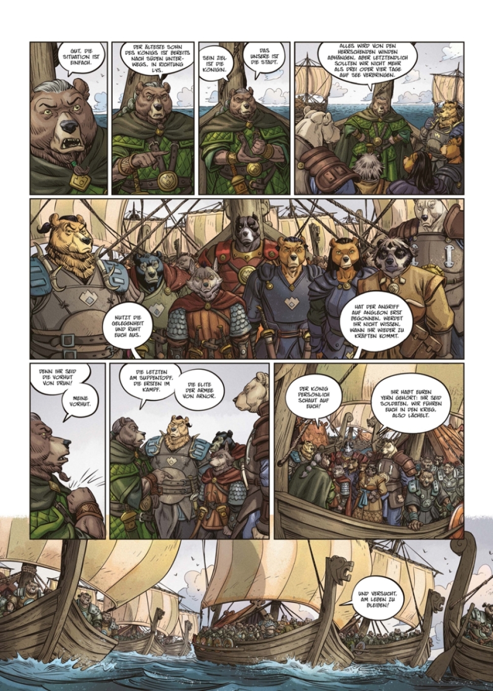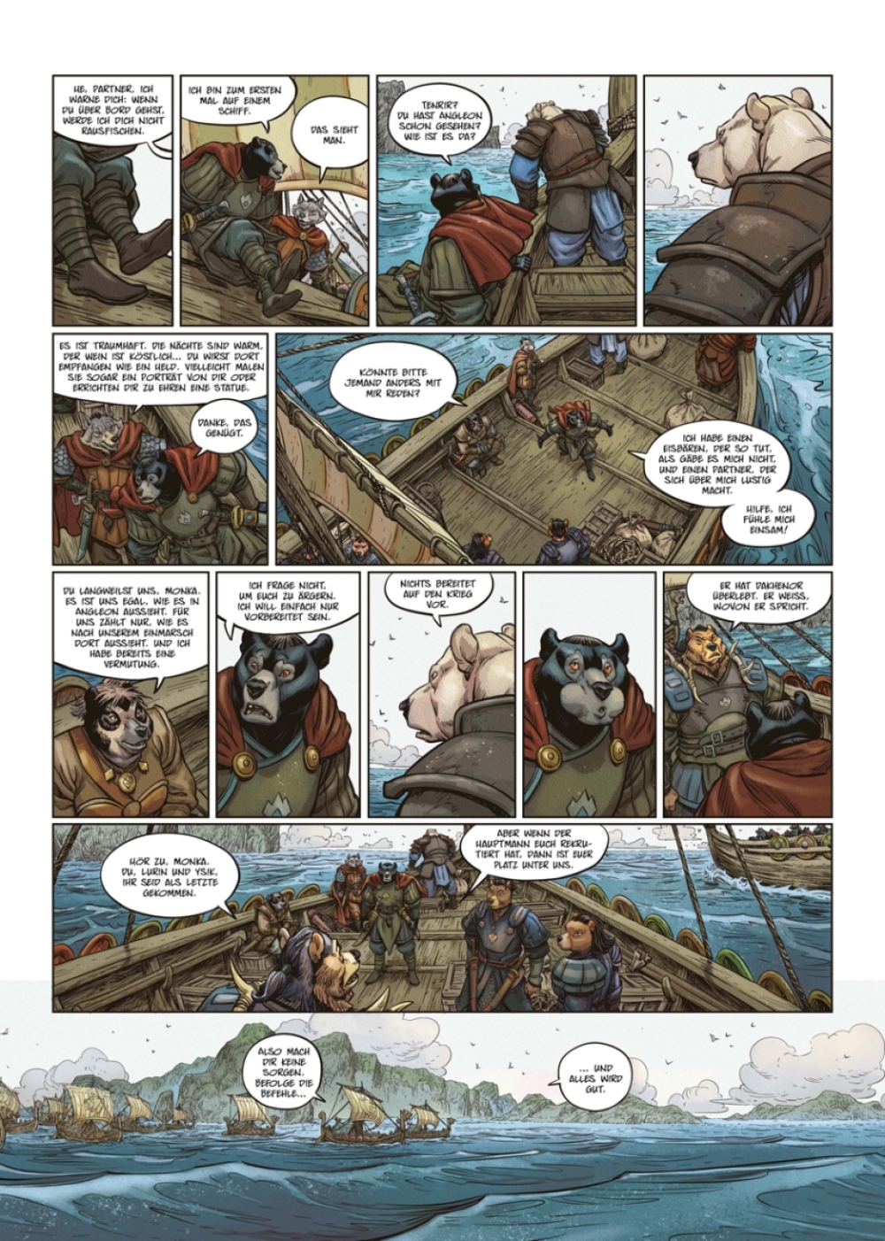Nach dem romanisch inspirierten Reich der Raubkatzen und dem asiatisch geprägten Affenkönigreich führt der dritte Zyklus von »Die 5 Reiche« uns in die nordischen Ländereien der Bären. Der Krieg zwischen Angleon und Arnor zieht unvermeidlich herauf, und die epische Handlung im Geiste von George R. R. Martins »Lied von Eis und Feuer« spitzt sich immer weiter zu! »Die 5 Reiche« ist und bleibt eine unvergleichliche Comicserie für alle Fans anspruchsvoller Phantastik.