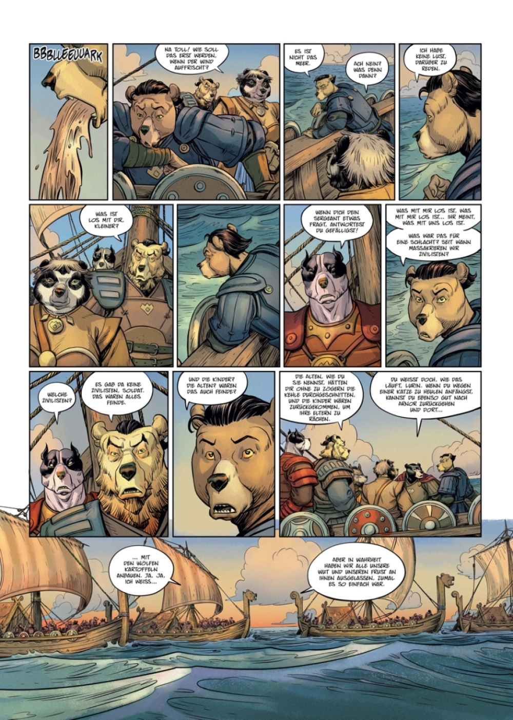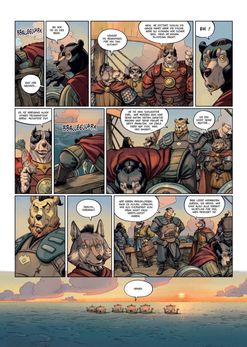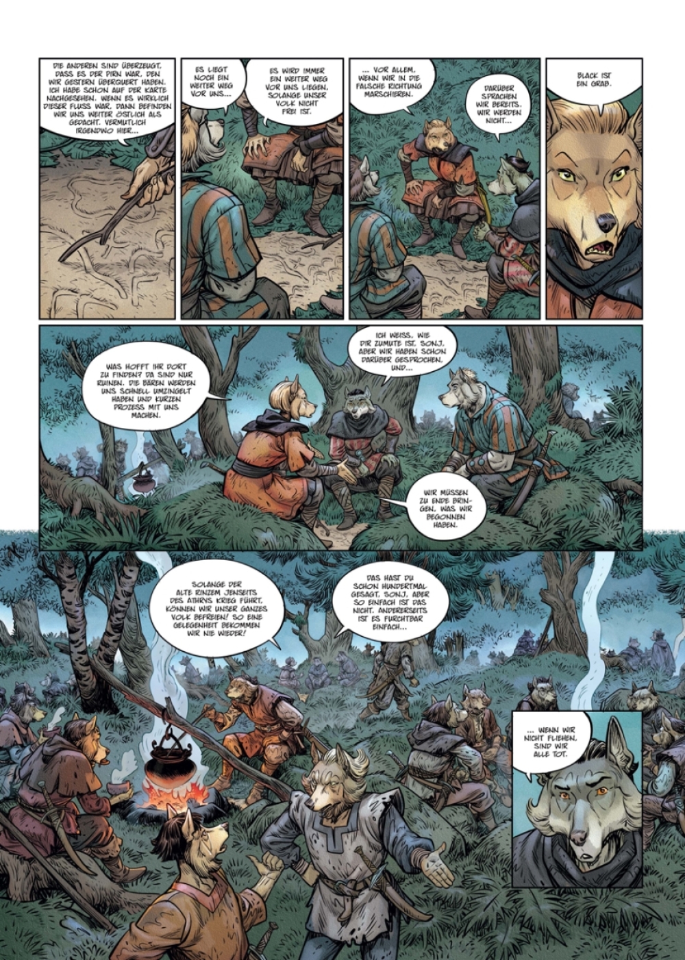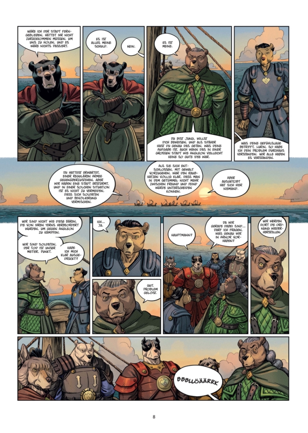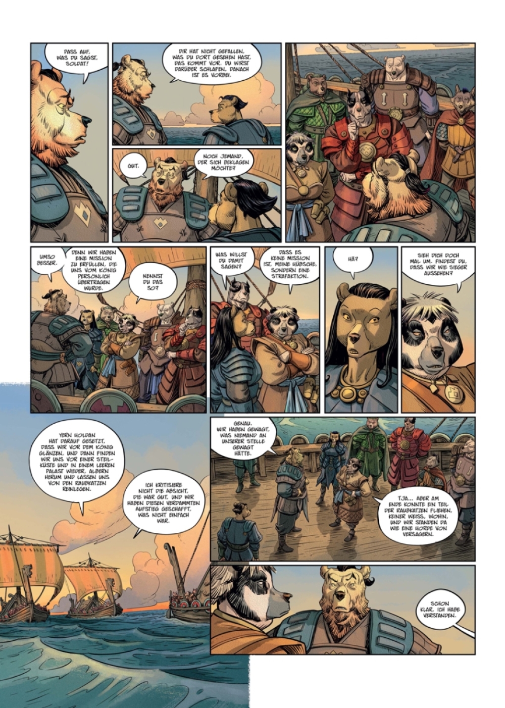 Nach dem romanisch inspirierten Reich der Raubkatzen und dem asiatisch geprägten Affenkönigreich führt der dritte Zyklus von »Die 5 Reiche« uns in die nordischen Ländereien der Bären. Der Krieg zwischen Angleon und Arnor zieht unvermeidlich herauf, und die epische Handlung im Geiste von George R. R. Martins »Lied von Eis und Feuer« spitzt sich immer weiter zu! »Die 5 Reiche« ist und bleibt eine unvergleichliche Comicserie für alle Fans anspruchsvoller Phantastik.