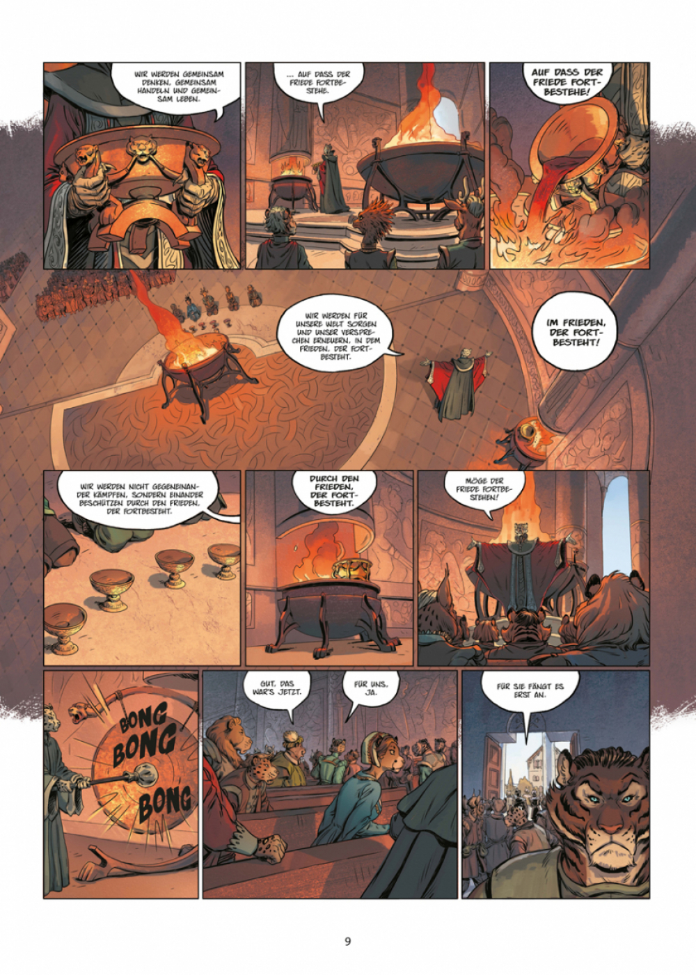 Es ist ein offenes Geheimnis, dass der alte König Cyrus von Angleon, Held der Schlacht von Drakhenor, im Sterben liegt. Sein Neffe Hirus, ein junger Tiger voller Ambitionen und Ungestüm, soll die Krone erben. Hirus träumt davon, die 5 Reiche unter seiner Herrschaft zu vereinen. Aber wie bei den Raubkatzen üblich, liegen die Dinge nicht ganz so einfach, denn bei Hofe haben viele ein Auge auf den Thron geworfen. Und die benachbarten Königreiche schmieden bereits Pläne, jedes Zeichen von Schwäche gnadenlos auszunutzen…