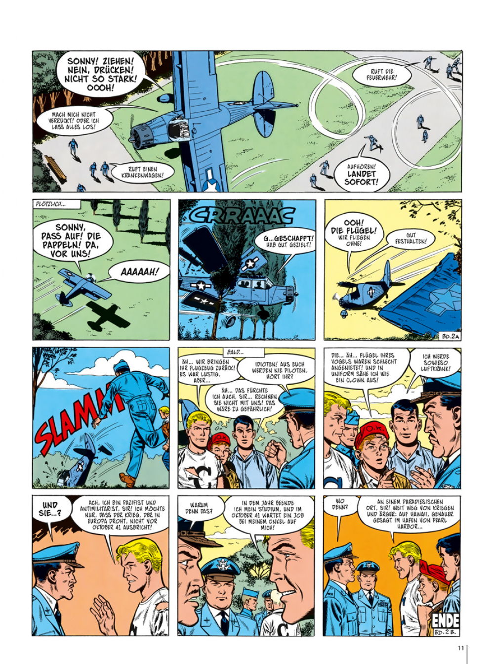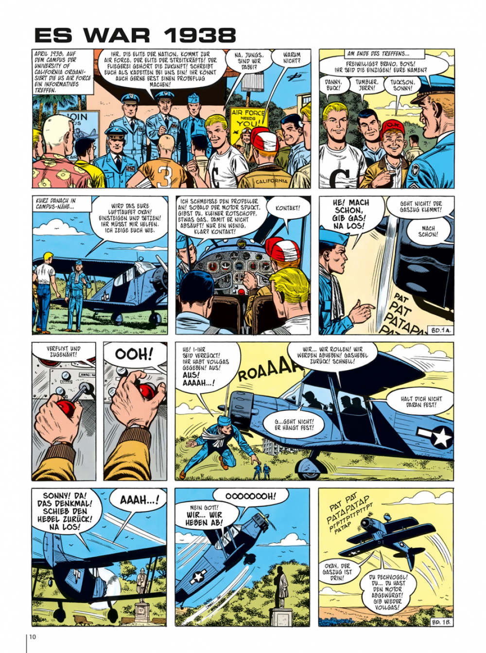 Als Bonus gibt es die Kurzgeschichte „Sergent Hardouins erster Luftkampf“ von Francis Bergèse, mit der er sich 1968 bei „Pilote“ bewarb, und „Die letzten Kämpfe“ von Giuseppe de Luca, der damit seine erste Buck Danny-Geschichte abgeliefert hat.