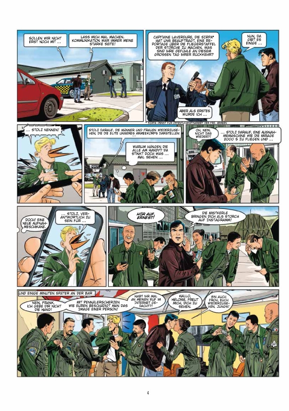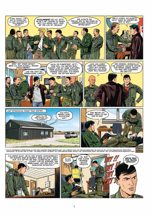 Unsere Helden sind zurück in der prestigeträchtigen Einheit der Störche. Während einer Routinepatrouille wird einer ihrer Kameraden wahnsinnig und eröffnet das Feuer auf eine überfüllte Autobahn. Tanguy ist gezwungen, ihn zu abzuschießen. Tief erschüttert, beschließen er und Laverdure zu versuchen, herauszufinden, was mit ihrem Freund passiert ist. Eine Untersuchung, die sie zu erschreckenden Entdeckungen führen wird ... Der erste Band des neuen Zweiteilers gibt einen Einblick in die technologischen Herausforderungen der Kriege der Zukunft, mit einem unerbittlichen Szenario, meisterhaft inszeniert von Buendia und Zumbiehl.