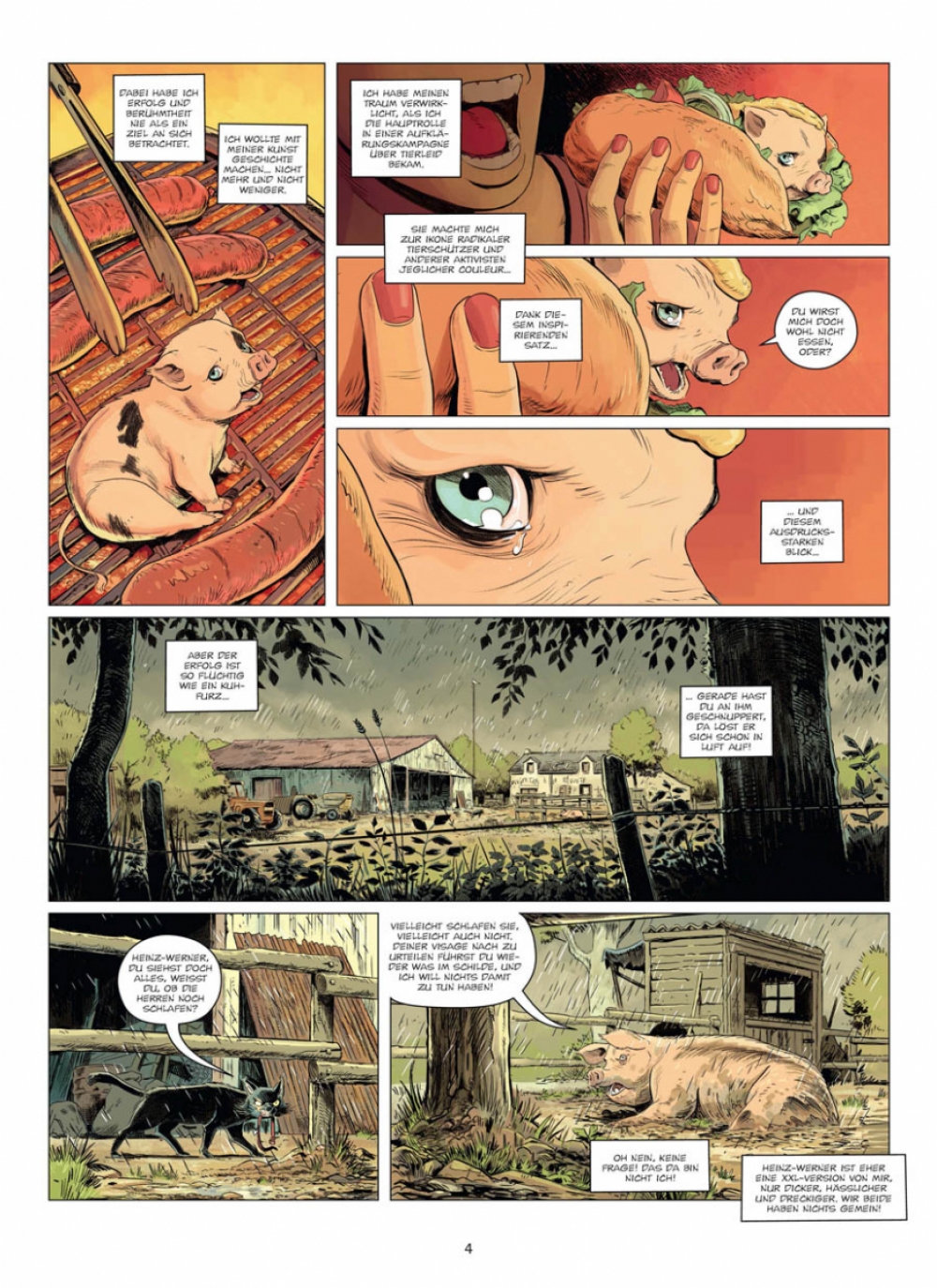Wieder mal ein Comic mit sprechenden Tieren, der aber eher nicht lustig ist. Er handelt vom übergeordneten Thema der Arroganz des Menschen gegenüber den Mitgeschöpfen.