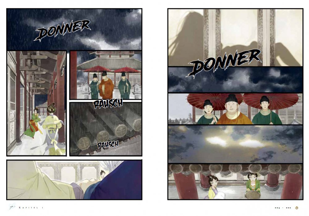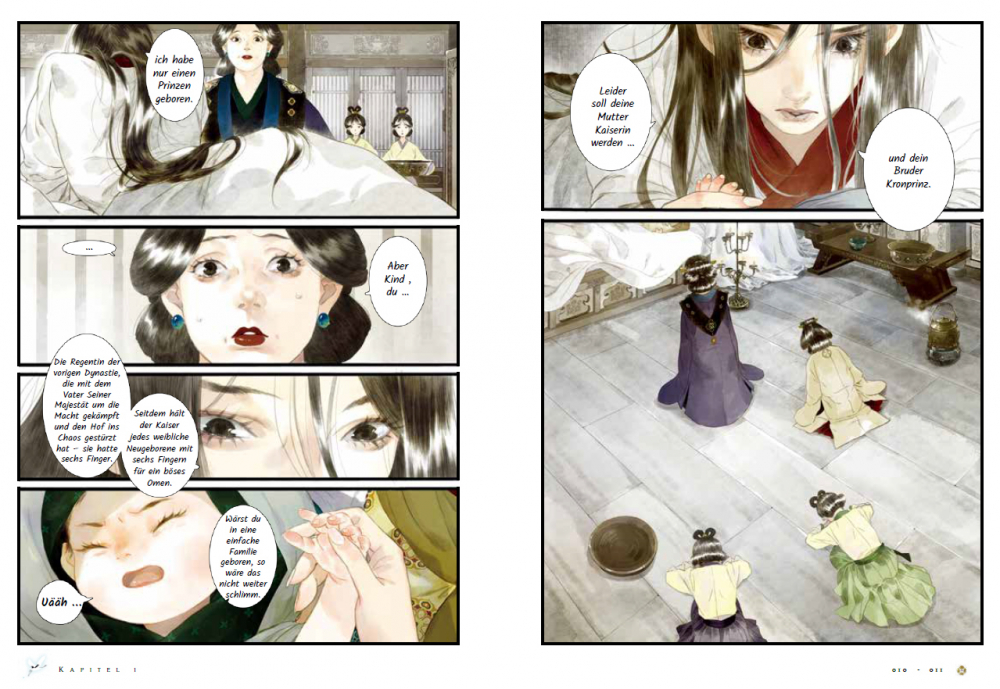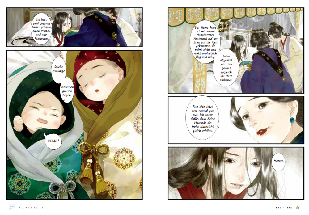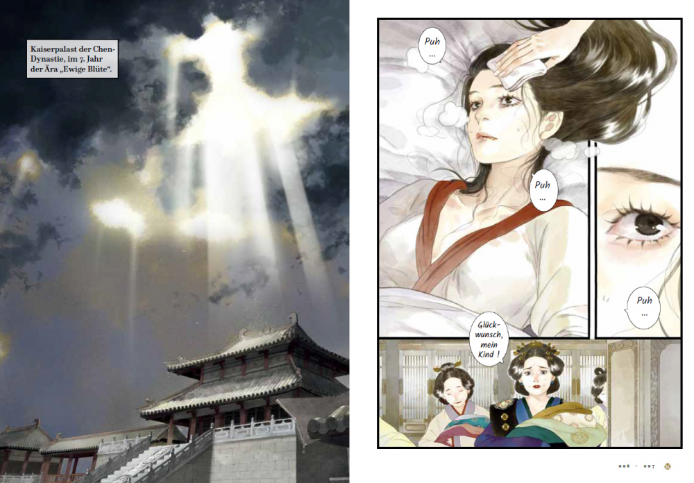 China während der Herrschaft der (fiktiven) Chen-Dynastie. Die kaiserliche Konkubine höchsten Ranges Jing gebärt unter den Strahlen der Abendsonne Zwillinge: einen Jungen und ein Mädchen.