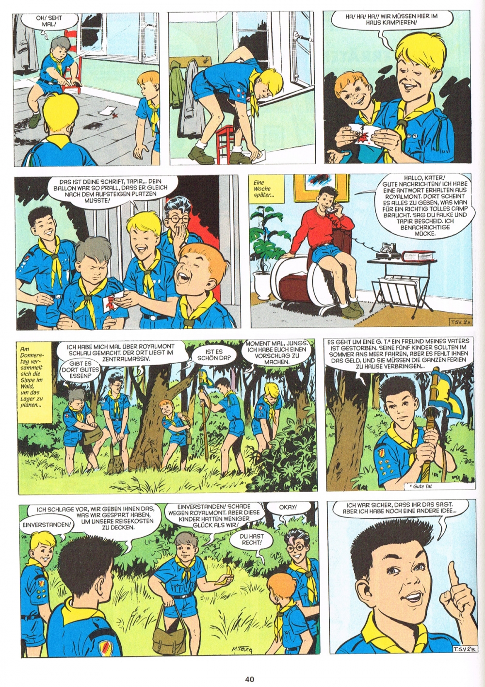 Die Pfadfinder Mustang, Falke, Kater, Mücke und Tapir haben vielen jungen Lesern von Spirou und anderen Magazinen weltweit die Werte der Pfadfinder vermittelt und sie mit ihren Abenteuern zum Träumen gebracht.