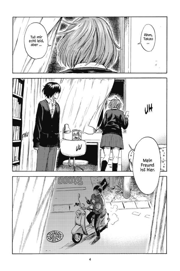 Takao hat einen Neuanfang gewagt und seine düstere Vergangenheit hinter sich gelassen. Doch die Freundschaft mit seiner Klassenkameradin Aya, mit der er die Liebe für die Literatur teilt, wird auf die Probe gestellt, als er wegen einer Familienangelegenheit in seine Heimatstadt zurückkehren muss …