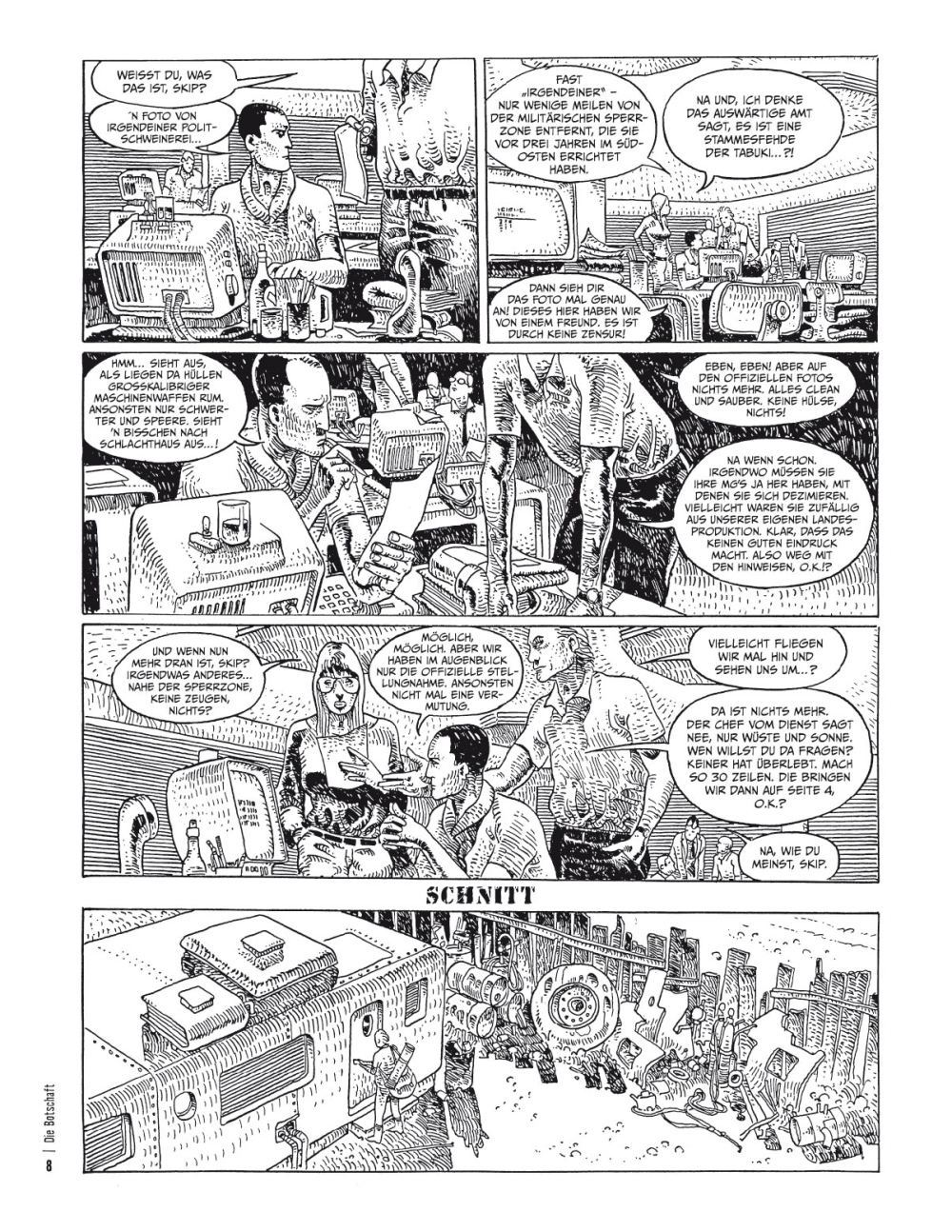 Gut vier Jahrzehnte nachdem das auf Fantasy und Horror spezialisierte Comicmagazin Menschenblut die Fortsetzungsgeschichte Die Botschaft zum Abschluss gebracht hat, liegt der legendäre Science-Fiction-Thriller aus der Feder des deutschen Ausnahmekünstlers Matthias Schultheiss (Die Haie von Lagos, Die Wahrheit über Shelby) nun erstmals in Albumform vor. Nichts für zartbesaitete Gemüter!