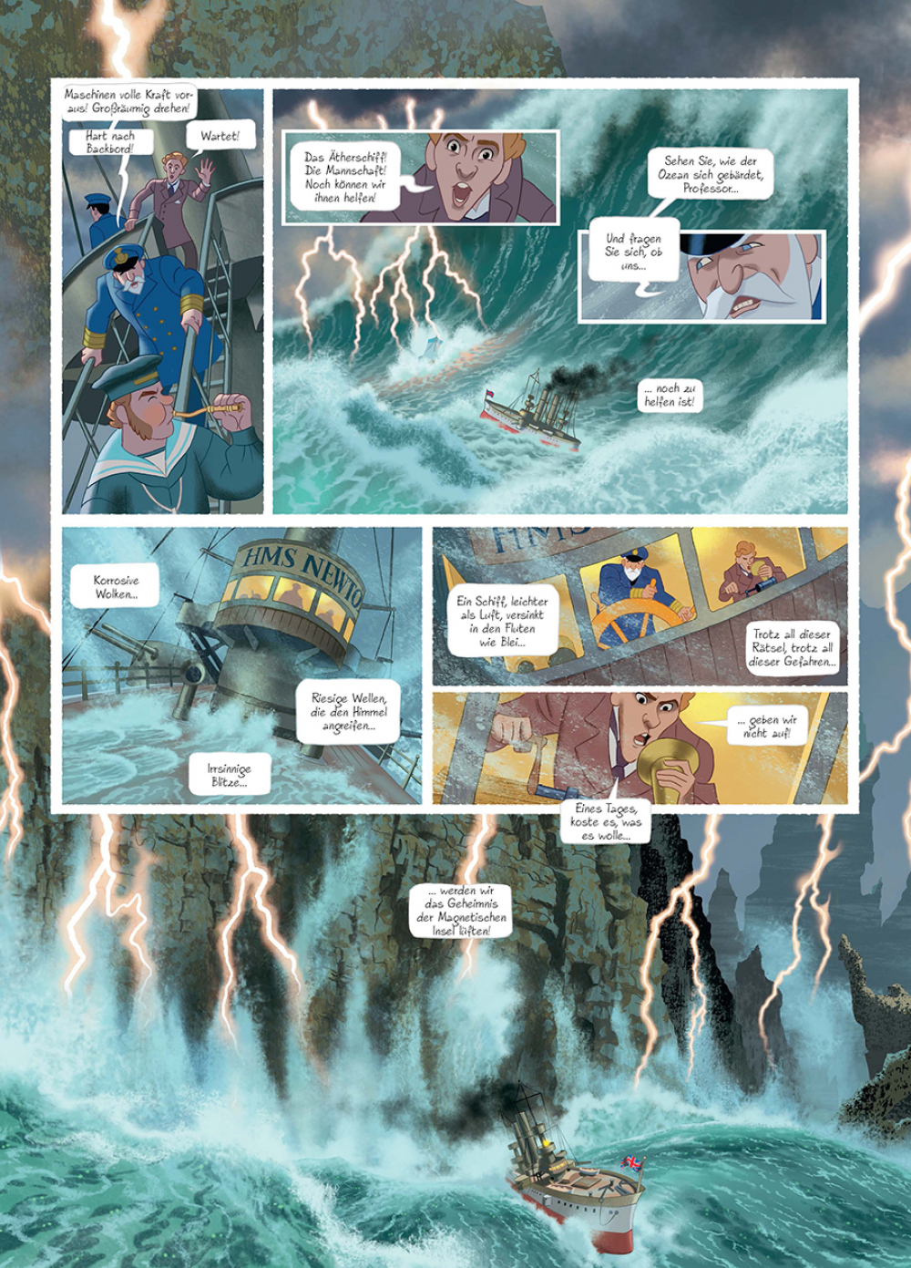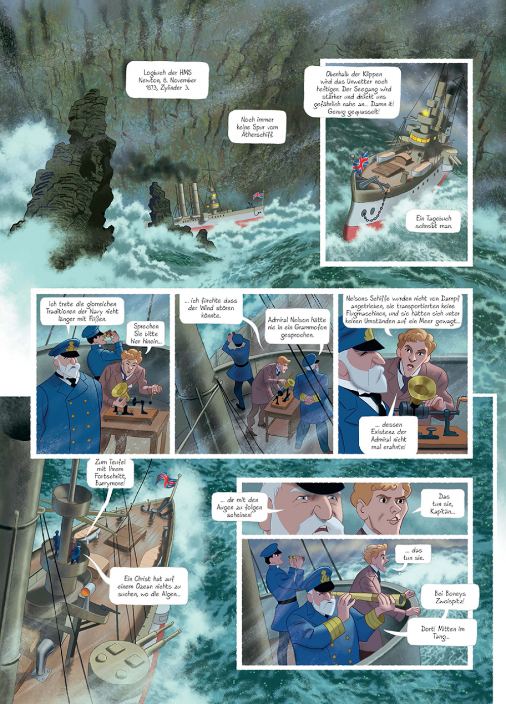 In diesem unabhängigen Spin-off zum modernen Meisterwerk »Das Schloss in den Sternen« von Alex Alice lässt Texter Alain Ayroles (»Der große Indienschwindel«) seiner Fabulierlust freien Lauf: Weltraumzeppeline! Politkomplotte! Liebesdramen! Dinosaurier! Ein Glück, dass Étienne Jungs farbenfroher Stil so herrlich verspielt wie detailverliebt ist und uns somit eine Comic-Trilogie sondergleichen beschert.