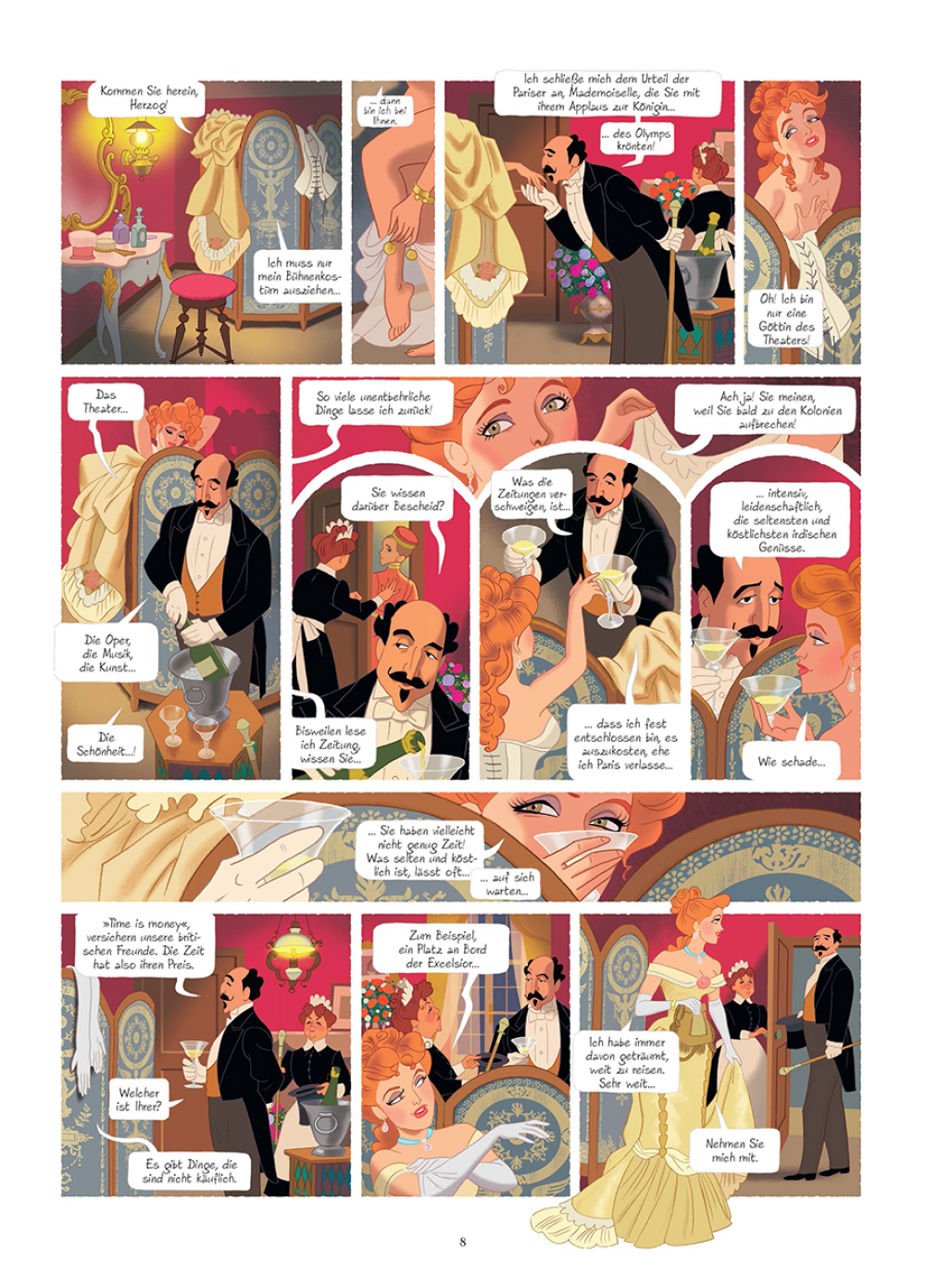 Im Jahre 1874 ist es den Großmächten der Erde gelungen, den Äther zu bändigen und an Bord grandioser Schiffe den Weltraum zu erobern. Entdecker, Pioniere und Geschäftsleute streben gen Himmel auf der Suche nach Abenteuern und Profit. Der gefeierten Schauspielerin Hélène Martin gelingt es, einen Platz an Bord der »Excelsior« zu ergattern, die Kurs auf den nebelverhangenen, ungezähmten Planeten Venus nimmt. Dort sitzt ihr Verlobter, ein Dichter, der Napoleon III. ein Dorn im Auge ist, in einem Straflager ein – und Hélène ist wild entschlossen, ihn zu retten!