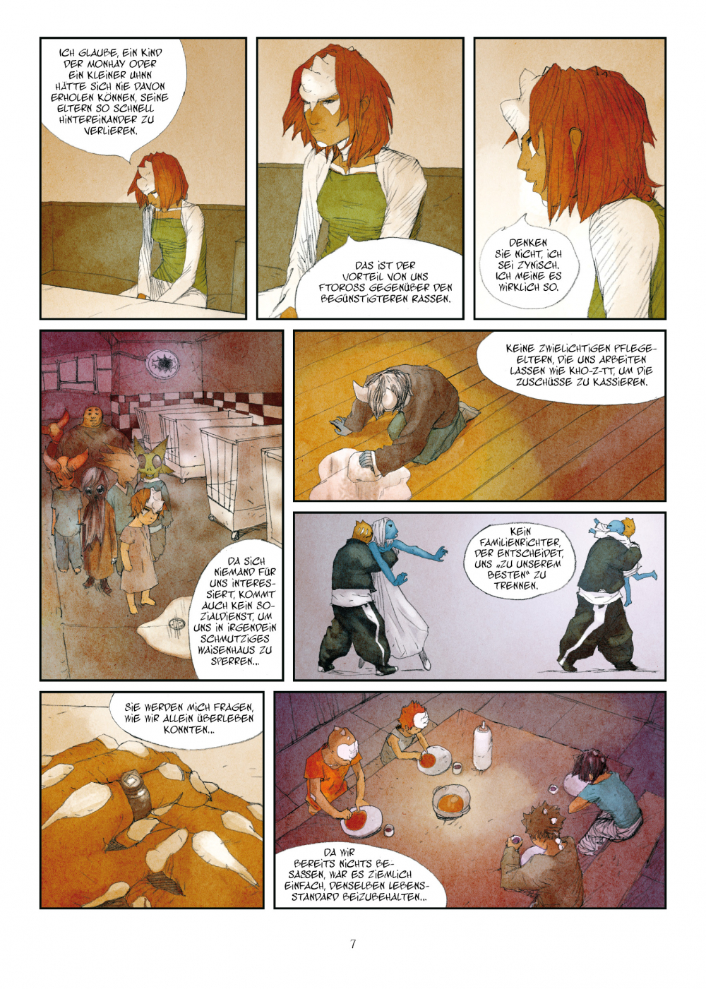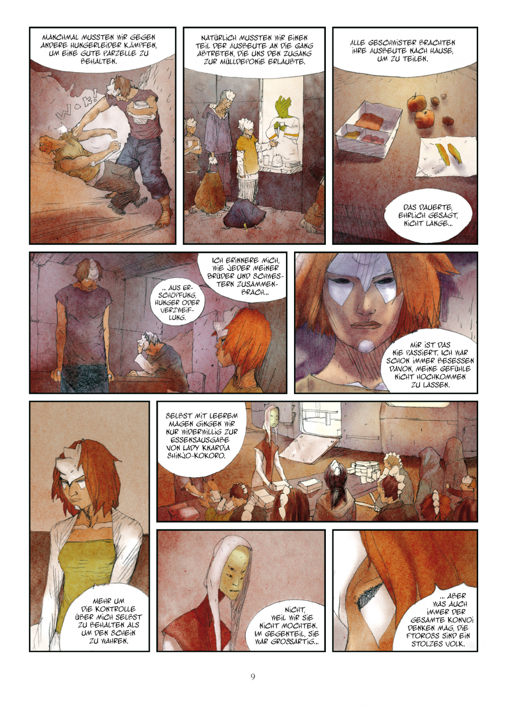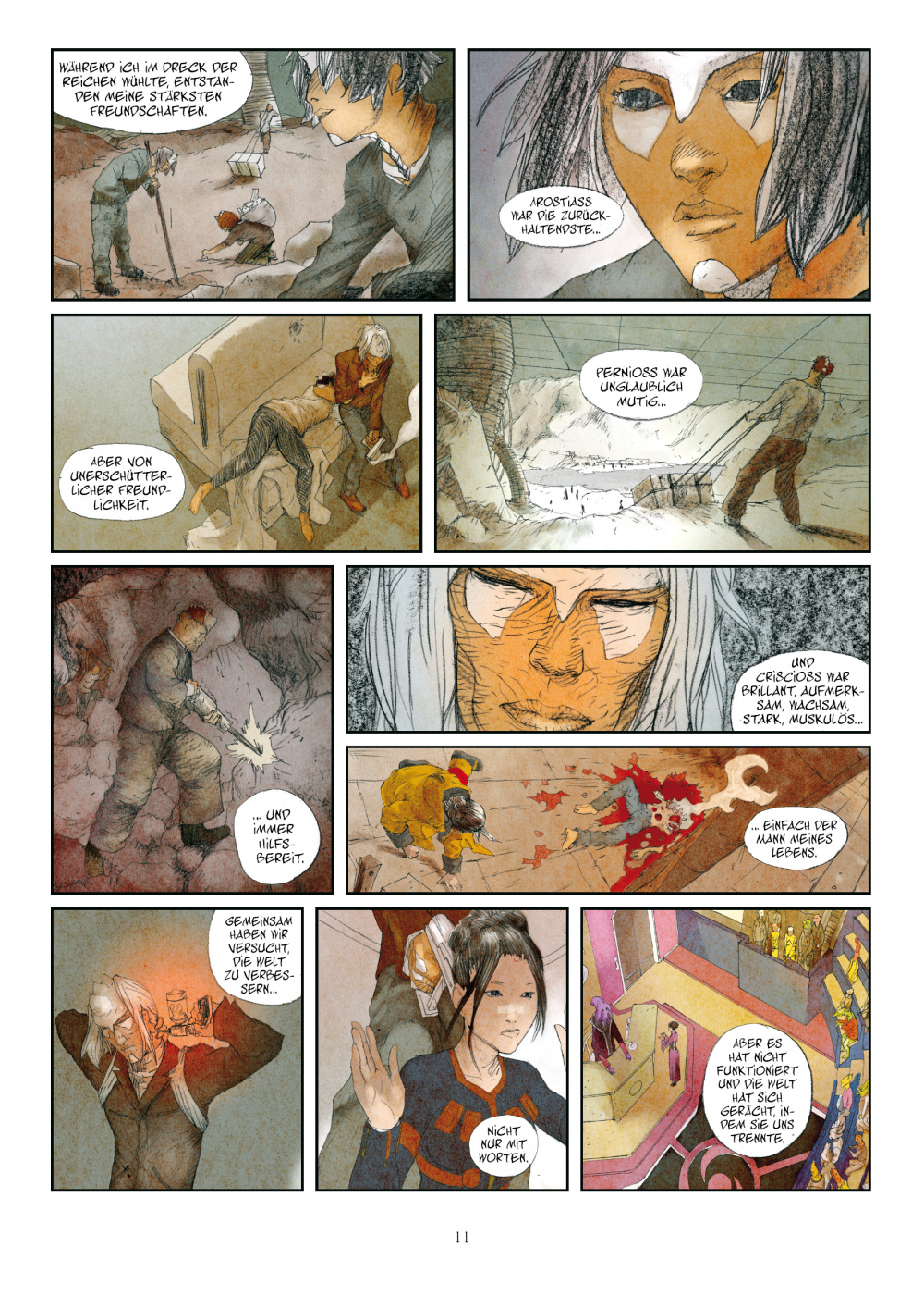 Nävis, die Rächerin mit dem großen Herzen, ist zurück! Nachdem sie von einem verzweifelten Ftoros (Wake, Band 5) als Geisel genommen wurde, ist Nävis auch entschlossen, diesen Menschen zu helfen, die in Armut und Krankheit leben und vom Verfassungsgeber ignoriert werden? Sie wird jedoch die Freuden einer halluzinogenen Droge probieren, die, wie sie später erfährt, aus dem Serum schwangerer Frauen hergestellt wird.