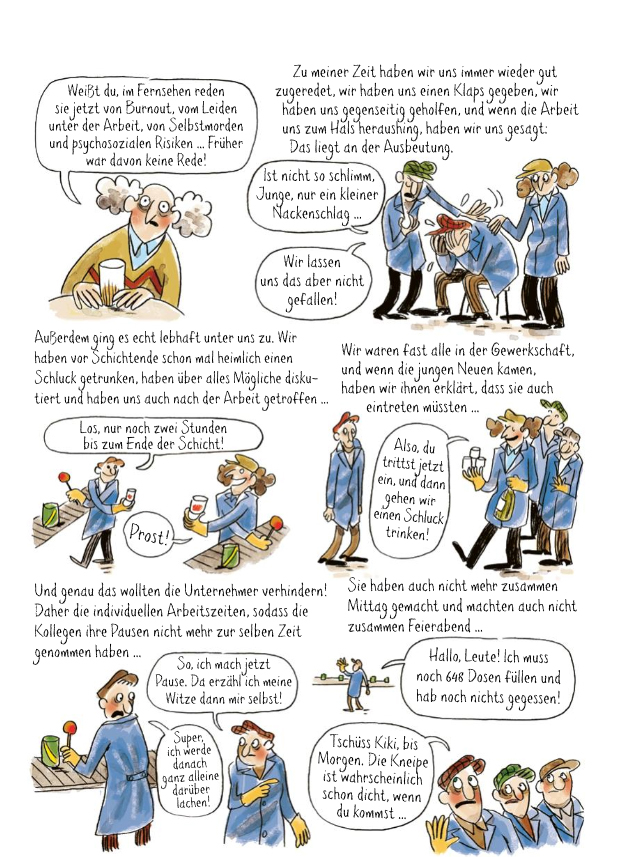 Warum haben sich Burnout, Depressionen und sogar Selbstmorde am Arbeitsplatz in allen westlichen Gesellschaften so ausgebreitet, obwohl es heißt, dass die Arbeit in den letzten Jahrhunderten so viel weniger anstrengend geworden ist? Danièle Linhart beschreibt, auch auf humorvolle Art und Weise, was die perversen Auswirkungen der heutigen Managementmethoden sind, die die Arbeitnehmer·innen zunehmend prekarisieren und sie manchmal sogar an ihrem eigenen Wert und ihren Rechten zweifeln lassen.