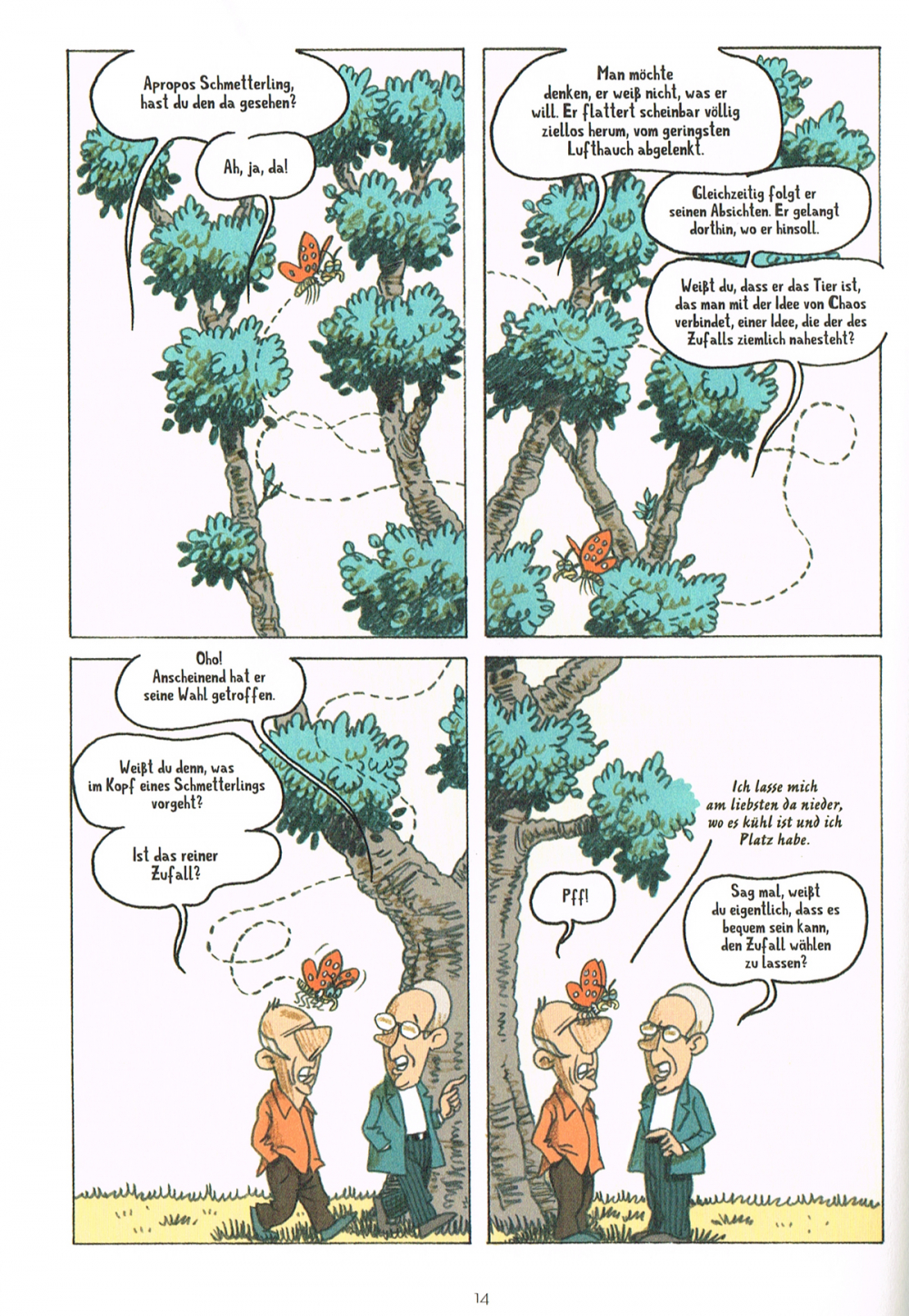Andere Zufälle sind berechenbar – jedenfalls ungefähr. Zum Beispiel, wievielmal wir im Durchschnitt würfeln müssen, um eine Sechs zu bekommen. Da wird der Zufall irgendwann zur statistischen Wahrscheinlichkeit. Wenn wir zum Beispiel einen mechanischen Effekt berechnen, können wir einigermaßen genau von den Ursachen auf die Folgen schließen, aber bei komplizierten Vorgängen, etwa beim Wetter, kann der sprichwörtliche Flügelschlag eines Schmetterlings einen Tornado auslösen. Hier können wir die Folgen eines Ereignisses nicht berechnen, denn dafür müssten wir alle Faktoren in dem Prozess so genau messen oder berechnen können, dass wir eine Zeitspanne dafür bräuchten, die die Lebensdauer des Universums um ein Vielfaches übertrifft.