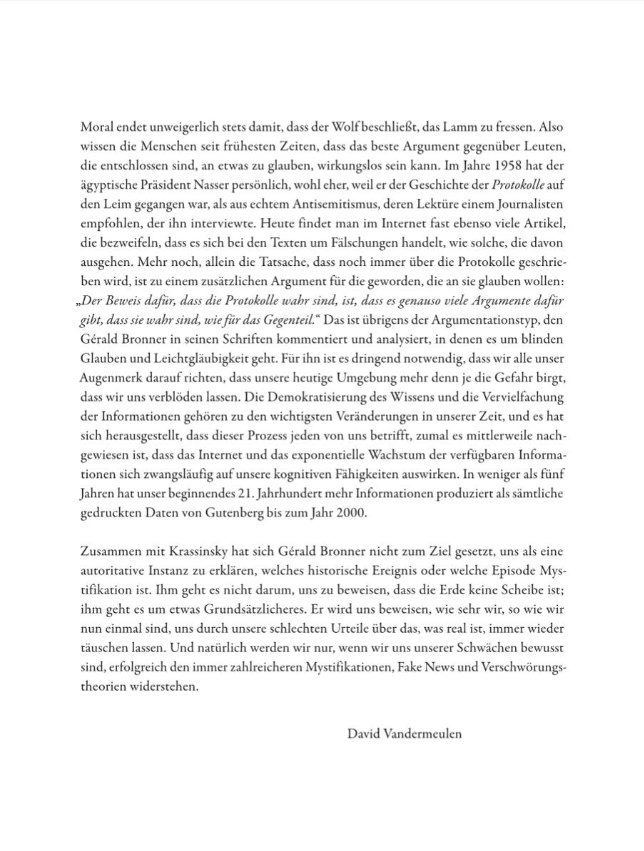 Gérald Bronner, geb. 1969, ist ein bekannter französischer Soziologe, der sich vor allem mit Fanatismus, Radikalisierung und Verschwörungstheorien auseinandergesetzt hat.