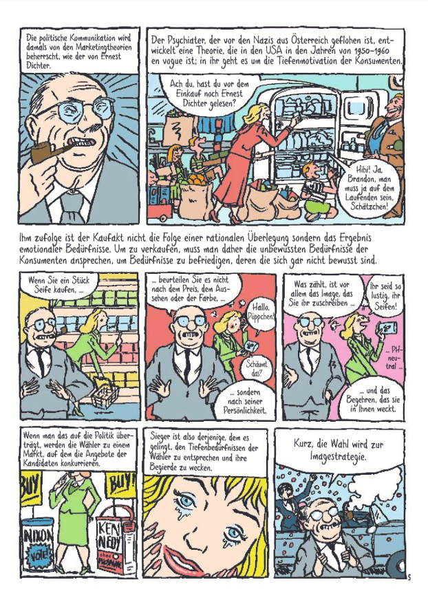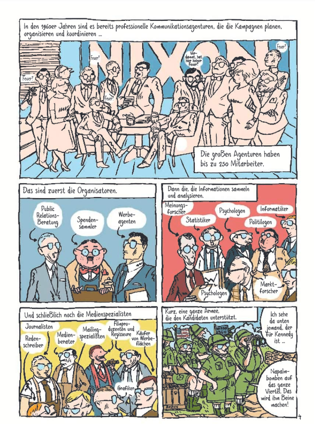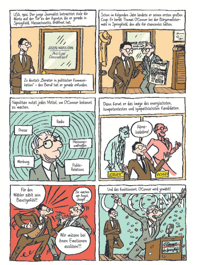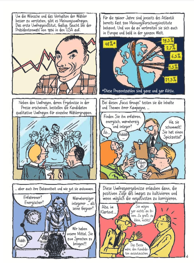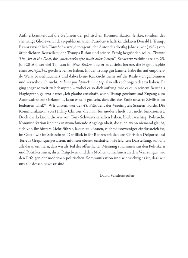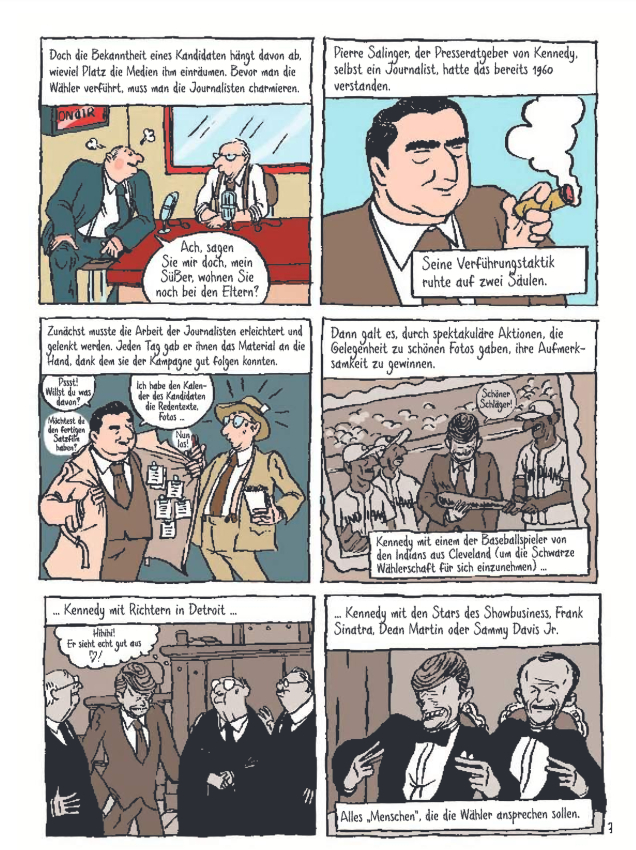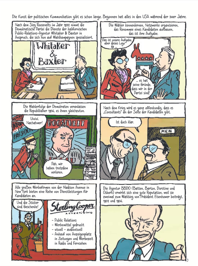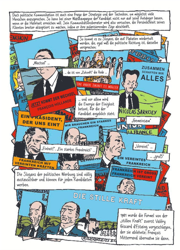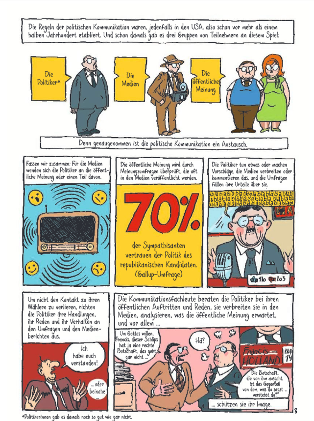 Die Grundregeln der politischen Kommunikation gelten in den USA seit einem guten halben Jahrhundert, und sie gelten nicht nur für die Kandidaten bei Wahlen und ihre Ratgeber oder »spin doctors«. In Wahrheit handelt es sich jedoch um ein Spiel, auf das sich Politiker, Medien und Öffentlichkeit geeinigt haben, denn in der politischen Kommunikation geht es zwischen diesen Spielern ständig hin und her. Eine kluge Analyse dieses Spiels gibt uns der Historiker Christian Delporte, die dazu passenden Illustrationen sind »Augenöffner« …
