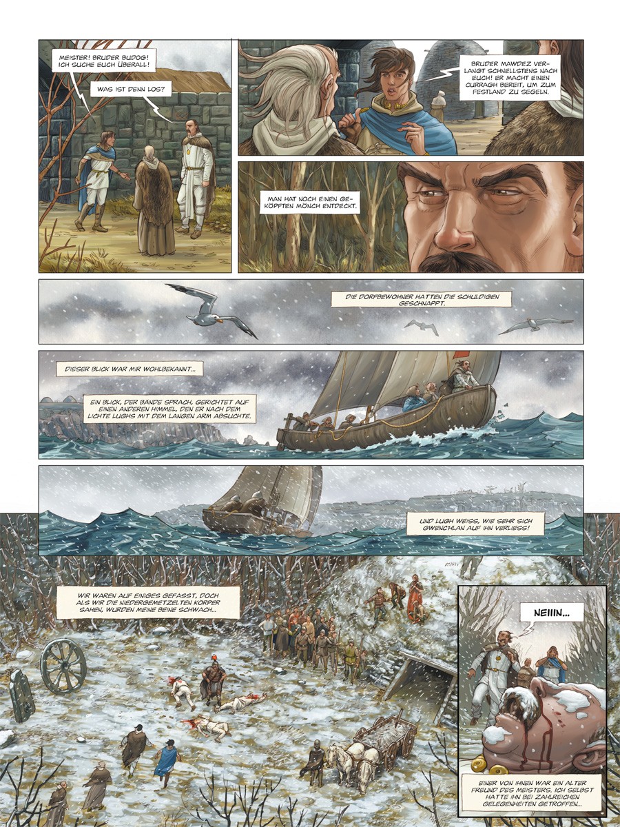 Ein dichter und spannender Thriller, von Lamontagne in wunderschönen, detailreichen Bildern illustriert, die uns in die mittelalterliche Welt der Kelten entführen.
