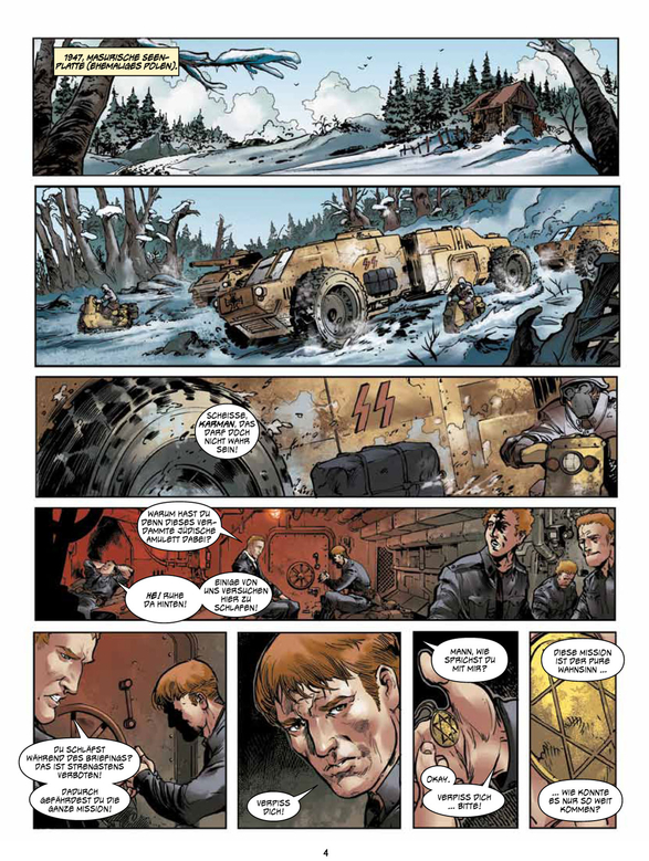 1. Januar 1947: Masurische Seenplatte – (ehemaliges) Polen Ein Kommando der Alliierten versucht als SS-Männer getarnt, in den geheimsten Stützpunkt des Deutschen Reichs einzudringen, um Albert Einstein zu befreien. Diese Soldaten sind die fähigsten Halunken der alliierten Streitkräfte. Wölfe, die bereit sind, sich auf den Feind zu stürzen, und die sich aber auch jederzeit gegenseitig zerfleischen können. In SS-Uniformen geschlüpft, merken sie rasch, dass sie dabei sind so zu werden, wie diejenigen, die sie bekämpfen. Unter ihnen befindet sich Jonah Karman, ein junger jüdischer Wissenschaftler, dessen Familie von den Nazis ausgelöscht wurde. Er ist wohl derjenige von ihnen, der am ehesten zusammenbrechen könnte...