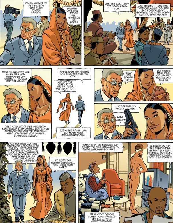 Bei einer prächtigen indischen Hochzeitszeremonie wird die Braut vor der Hochzeit erschossen. Vater der Baut ist Sumak, Kopf einer ebenfalls mit Diamanten handeln-den Bande mit Namen J.D.C..Uma findet heraus, daß Sumak ein Vermögen an schwarzen Diamanten illegal durch Bestrahlung mit radioaktivem Material erzeugt hat und daß es einen Verräter in den Reihen der Ewigen gibt.
