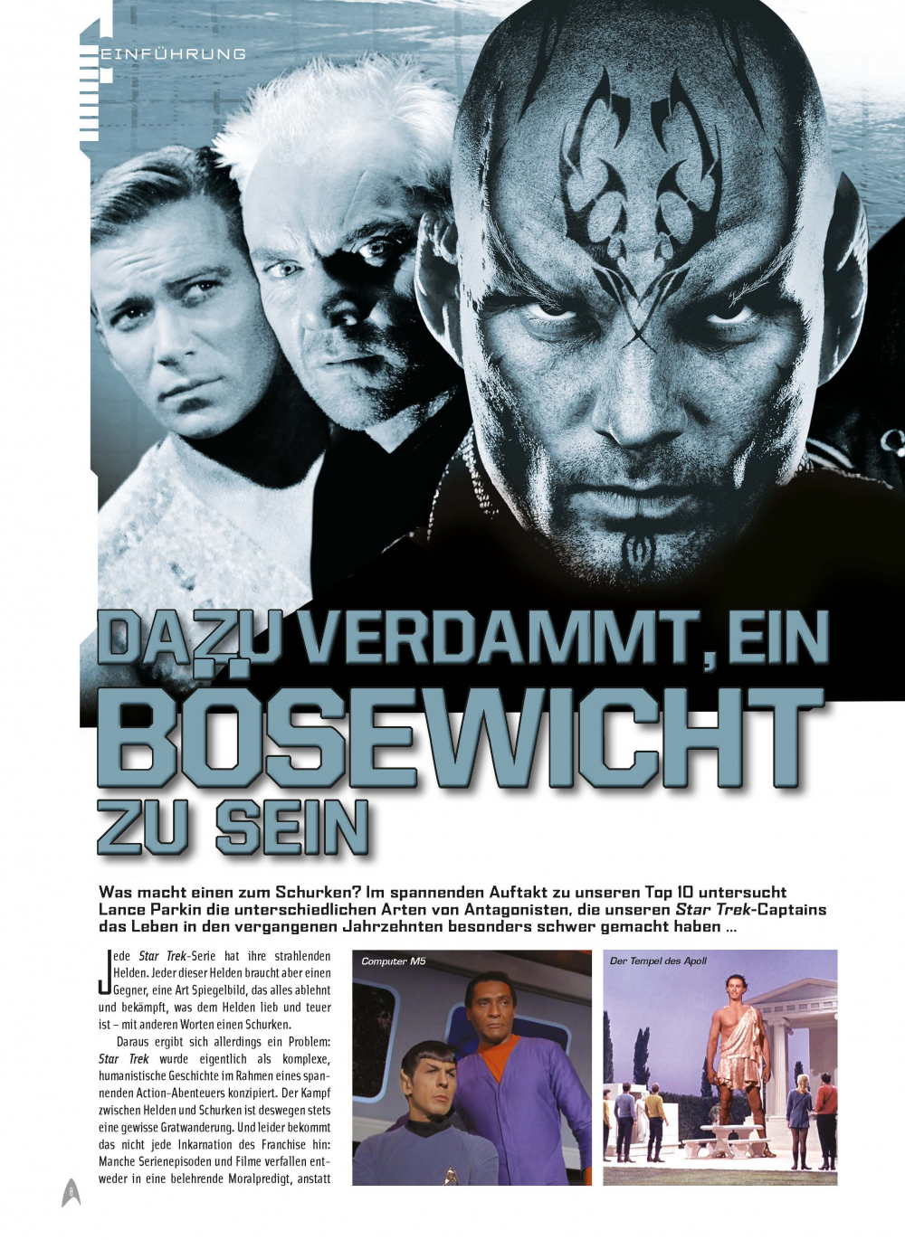 Ein unentbehrlicher Guide mit Star-Treks Kultschurken Während über 50 unglaublichen Jahren hat das Star-Trek-Franchise in Fernsehserien und Spielfilmen zahlreiche weithin bekannte und beliebte Schurken hervorgebracht. Diese Sammlung enthält reichlich bebilderte Features zu einigen der allerbesten – oder allerschlimmsten – Schurken sowie klassische Interviews mit den Schauspielern, die sie dargestellt haben. Mit dabei sind die Borg (Alice Krige als die Borg-Königin), Khan (Ricardo Montalban, Benedict Cumberbatch), Q (John de Lancie), Shinzon (Tom Hardy) und unzählige mehr.