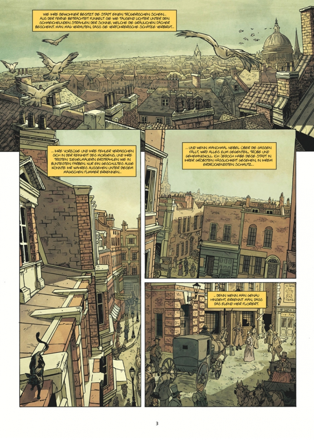 „Das Antlitz der Stadt ist, wie das ihrer Bewohner, trügerisch: von Ferne betrachtet, glitzern tausende Lichter, entfacht von der Sonne, die die grauen Dächer liebkost. Dahinter vermutet man üppige Schätze.