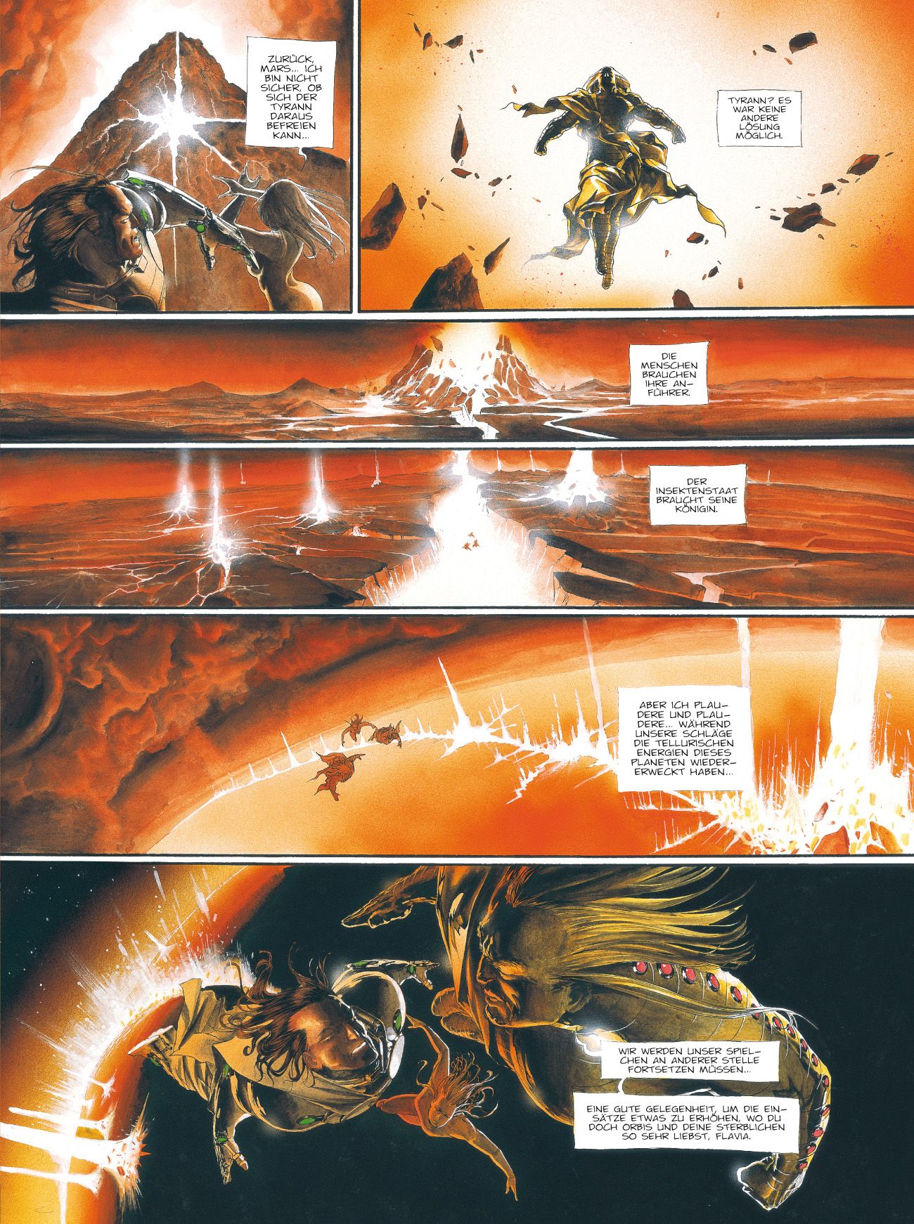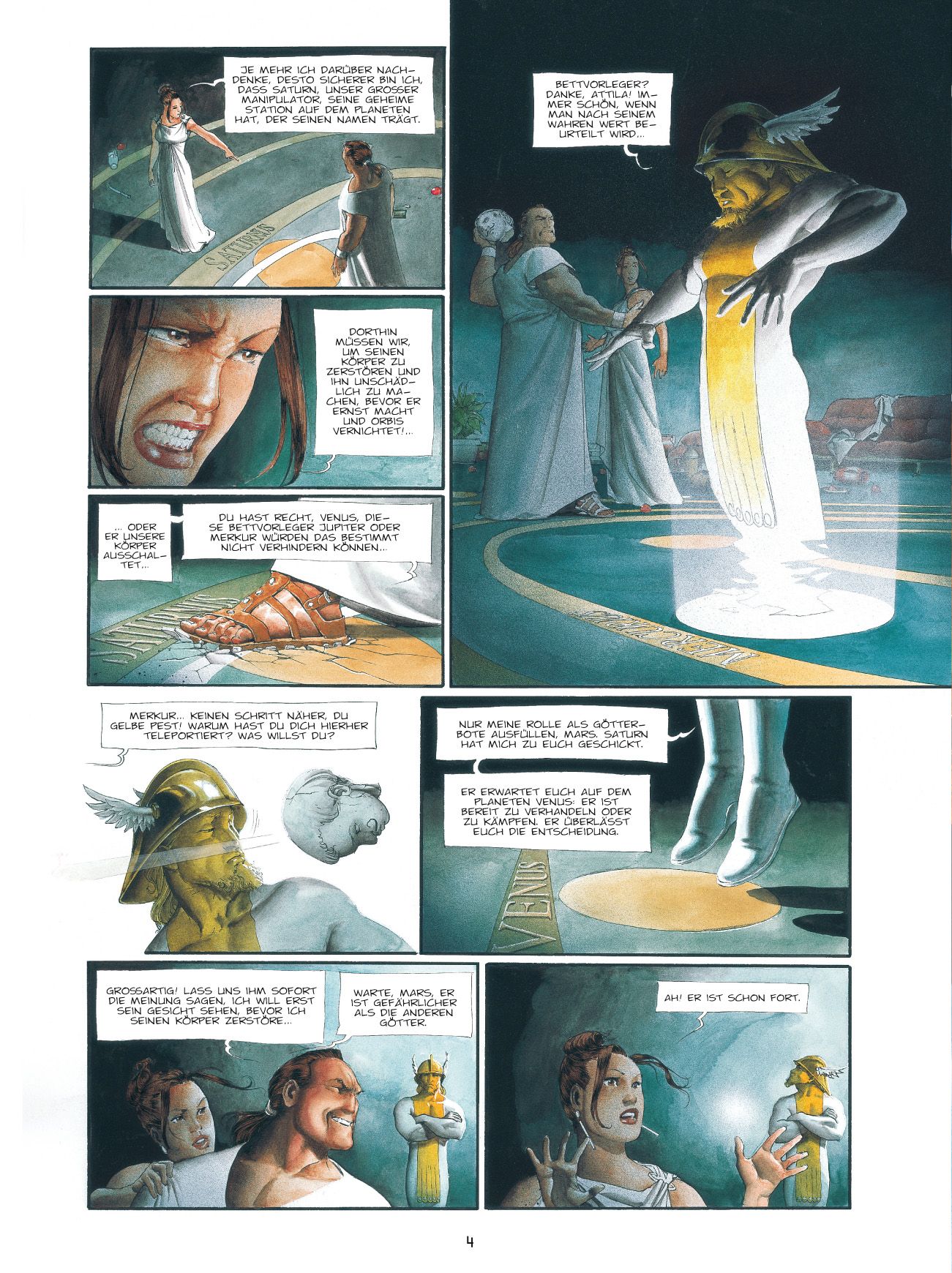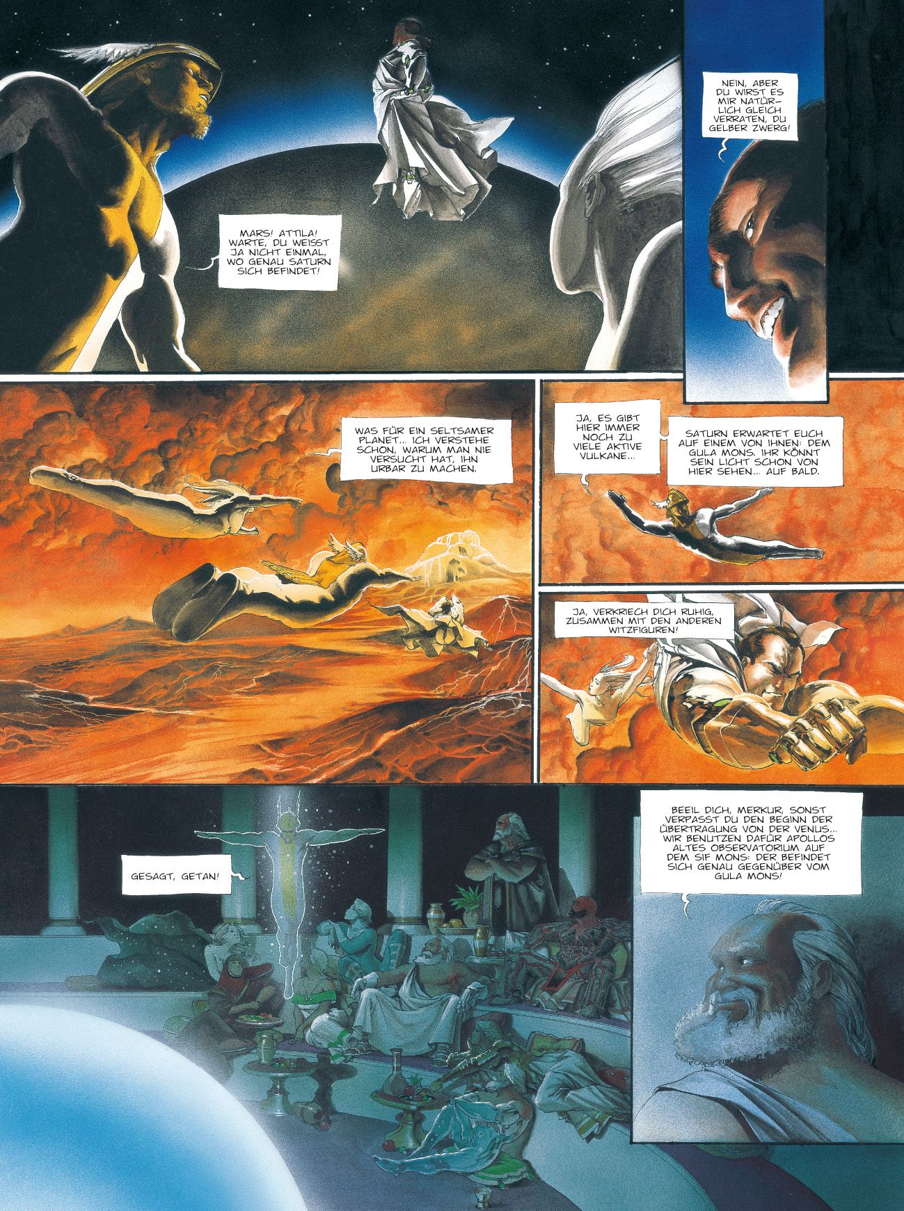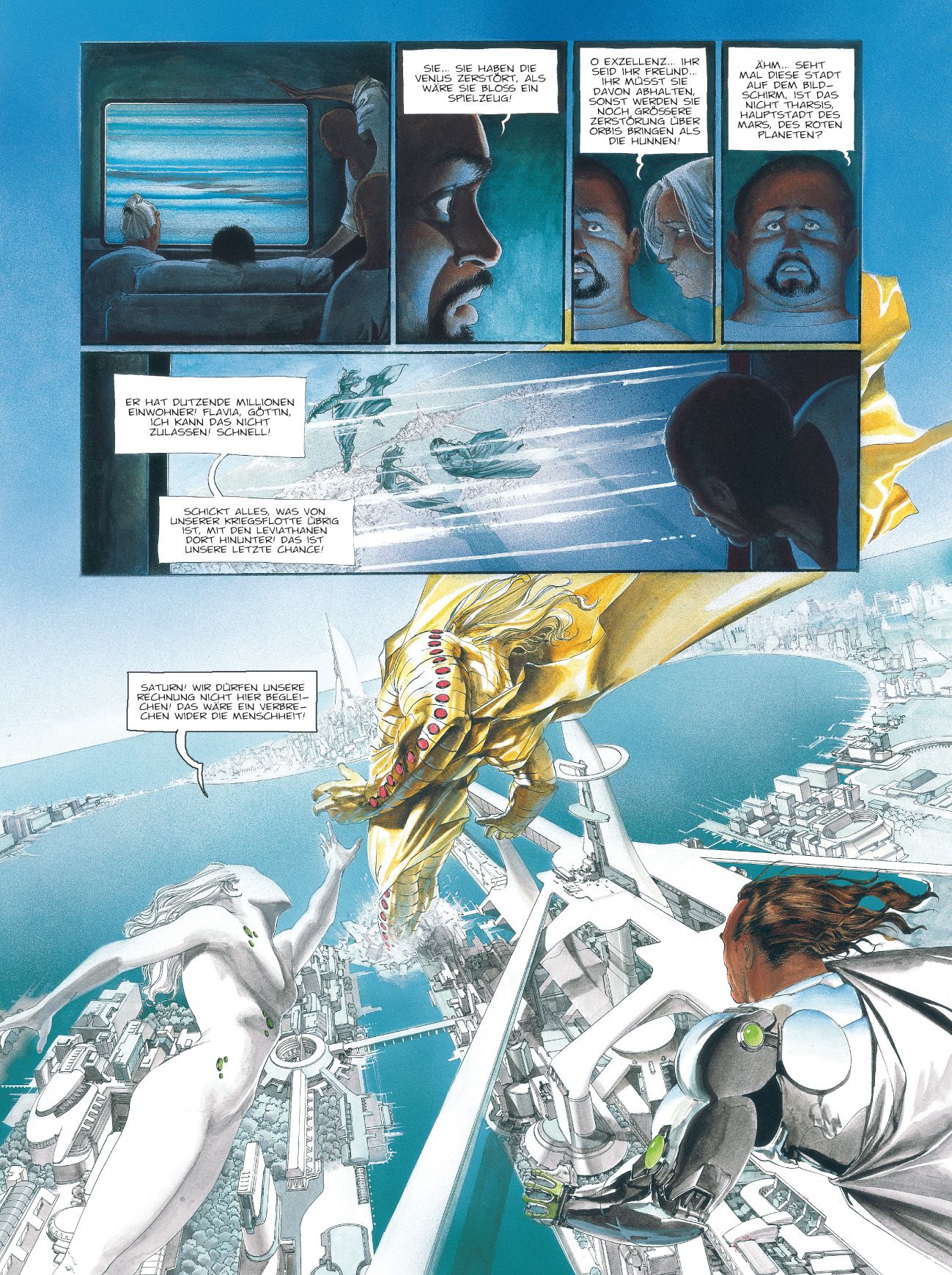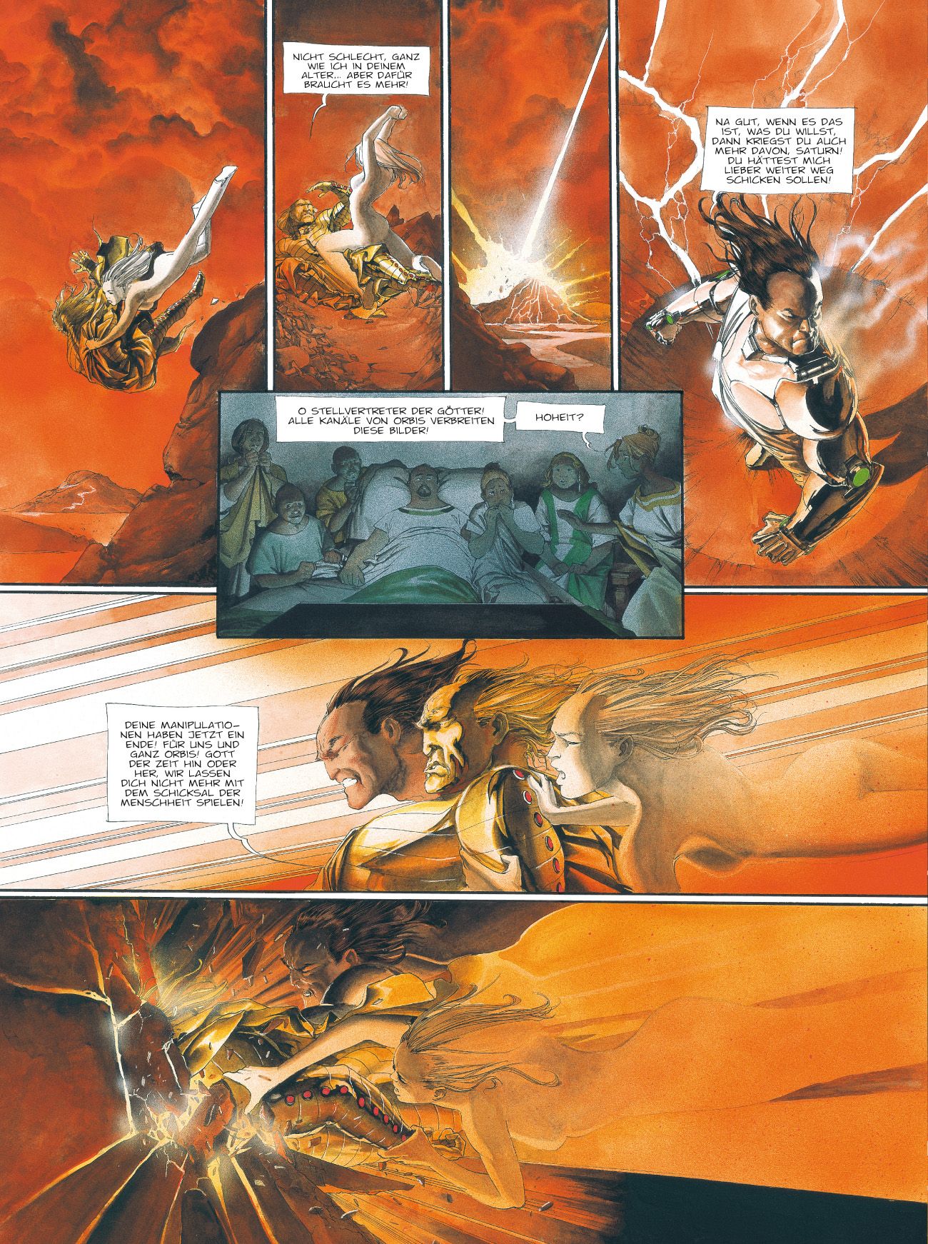 In diesen Kampf greifen sogar die Götter selbst ein: Dei ex machina beschreibt, wie Flavia und Attila (auch bekannt als Venus und Mars) sich stellvertretend mit dem Rest des Pantheons anlegen. Exit schließlich beschreibt das Ende der titanischen Auseinandersetzung.