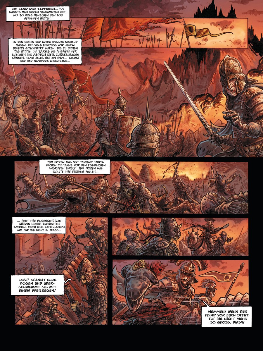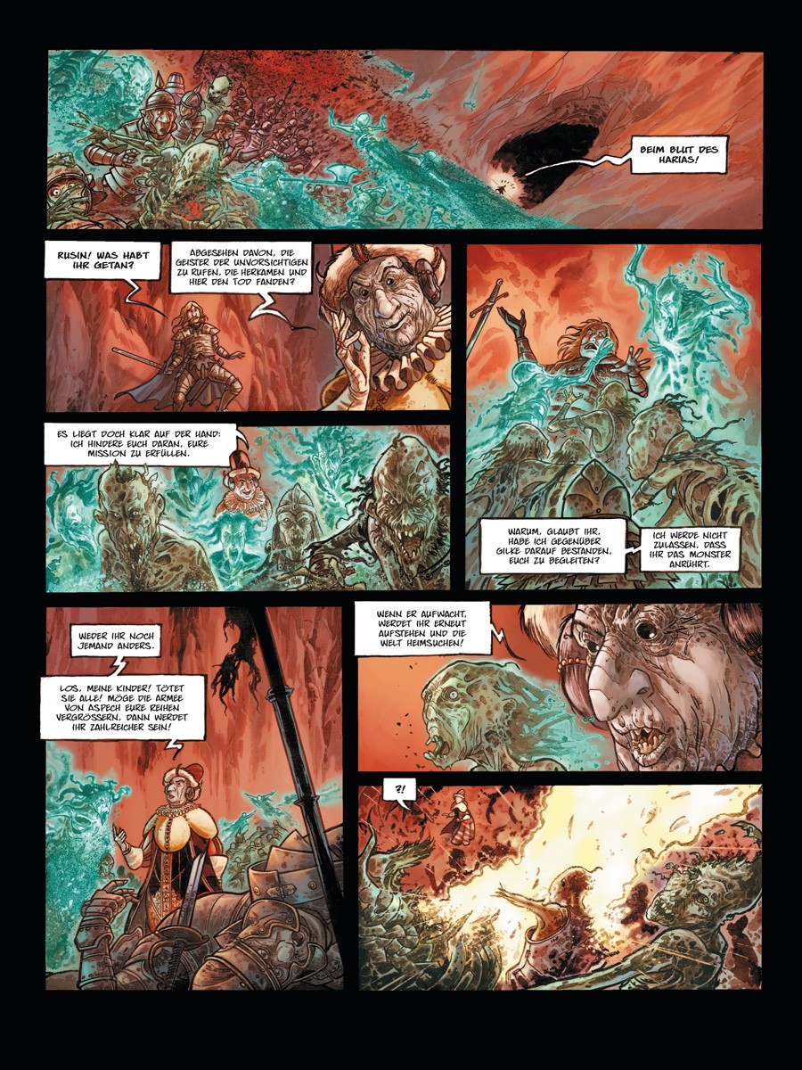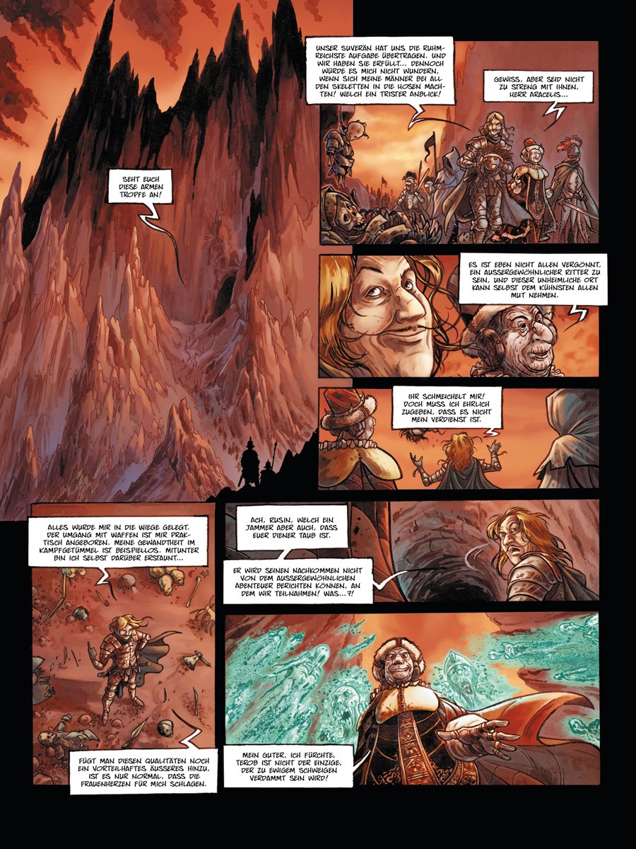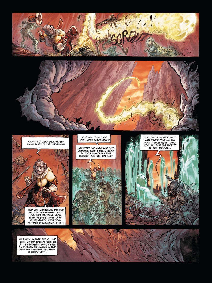 Das Reich von Aspech schwebt in großer Gefahr! Ein untoter Hexer ist im Begriff, nach tausendjährigem Schlaf zu erwachen und droht, alles, was auf seinem Weg liegt, zu vernichten. Um die Gefahr zu bannen, ruft der König eine Truppe von Söldnern zusammen, unter denen sich auch die Abenteurer Emrod, Velia, Perelund und Forn befinden. Die alles andere als begabten, aber dafür durchtriebenen Kämpfer haben die Identität der legendären »Geißeln von Enharma« angenommen, eine auf dem ganzen Kontinent gefürchtete Gruppe von Mördern. Doch als es zum Kampf kommt, wird den vier Spaßvögeln bewusst, in welch ernste Lage sie sich geritten haben…