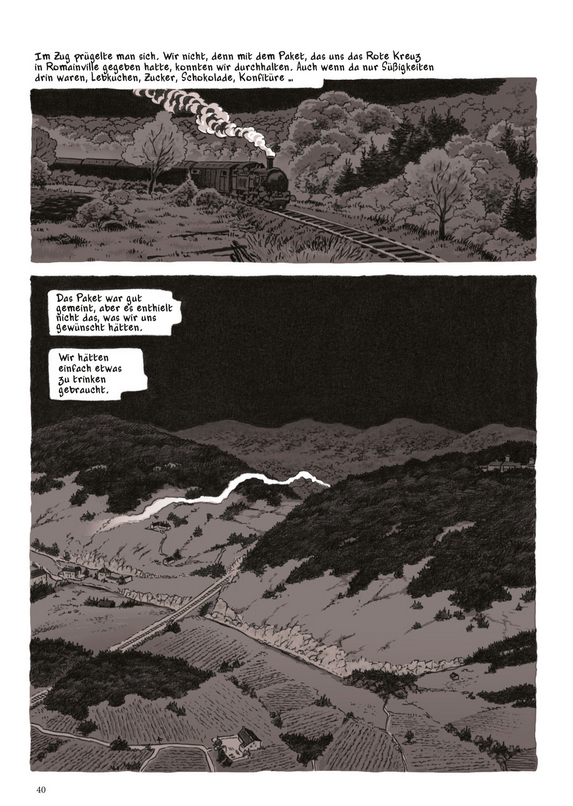 Erfahrungsbericht einer französischen Kämpferin der Résistance im 2. Weltkrieg. Autor und Zeichner Boris Golzio nahm sich dieser Geschichte an, die er mit Hilfe von Tonaufzeichnungen des mündlichen Berichts der Francine R. zu einer Graphic Novel verarbeitete.