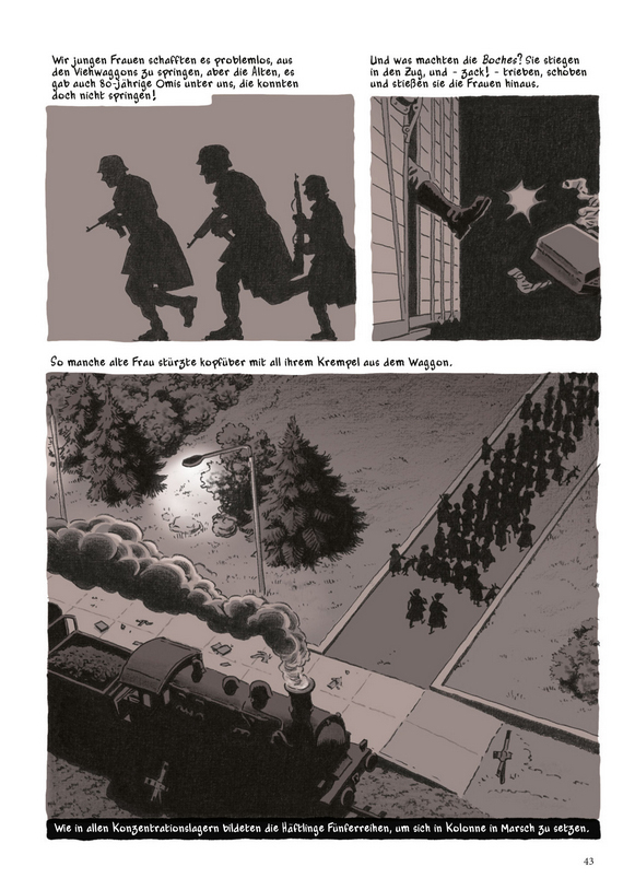In langen persönlichen Gesprächen mit Francine R., einer Überlebenden des Konzentrationslagers Ravensbrück, hat Boris Golzio das Schicksal dieser beindruckenden Frau entdeckt und in einer Graphic Novel umgesetzt. Francine R. war während der deutschen Besatzung Frankreichs Mitglied der Résistance. Am 6. April 1944 wird sie zusammen mit ihrer Schwester von der Gestapo verhaftet. Beide werden anschließend in unterschiedliche Lager nach Deutschland deportiert. Schliesslich wird Francine im Frauen-Konzentrationslager Ravensbrück inhaftiert. Sie erzählt aus erster Hand von den unmenschlichen Bedingungen der Zwangsarbeit und des (Über-)Lebens im Lager.