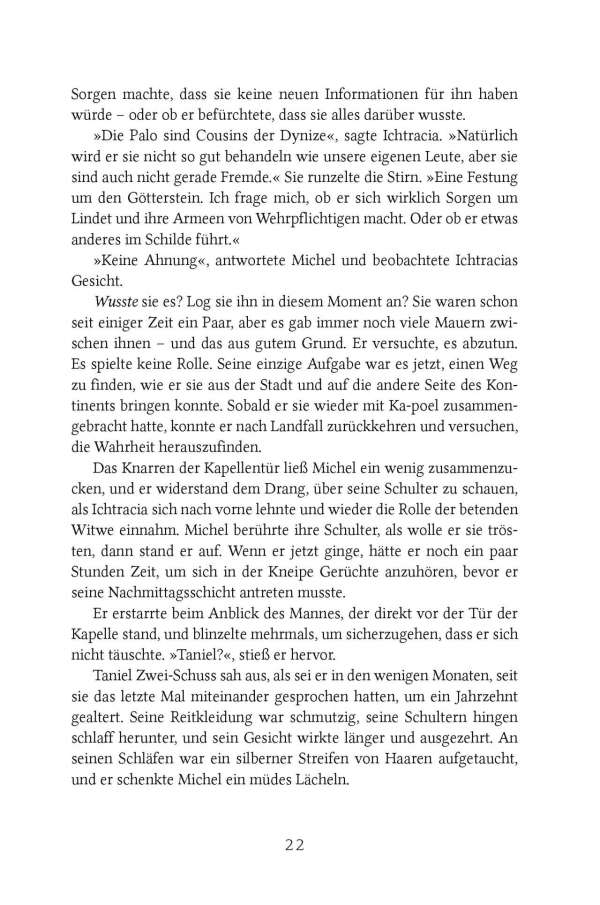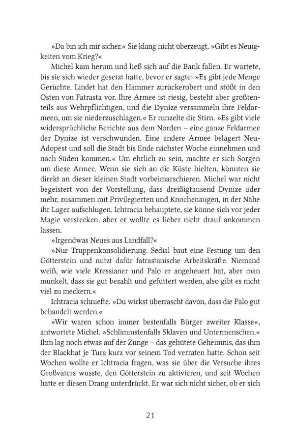 Die Dynize haben den Landfall-Gottesstein entschlüsselt, und Michel Bravis soll nach Greenfire Depths zurückkehren, um alles zu tun, was er kann, um sie daran zu hindern, die Macht des Steins zu nutzen.
