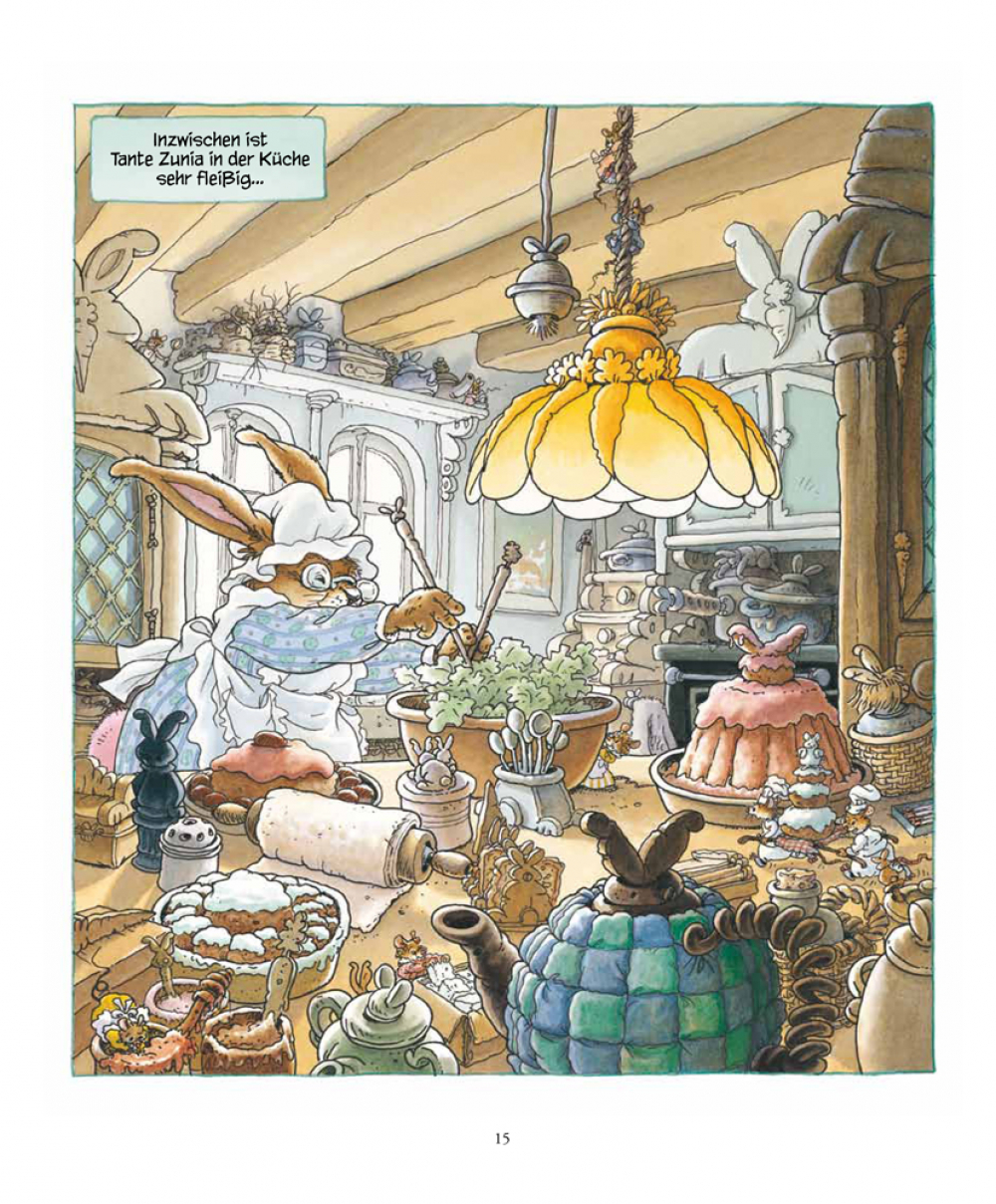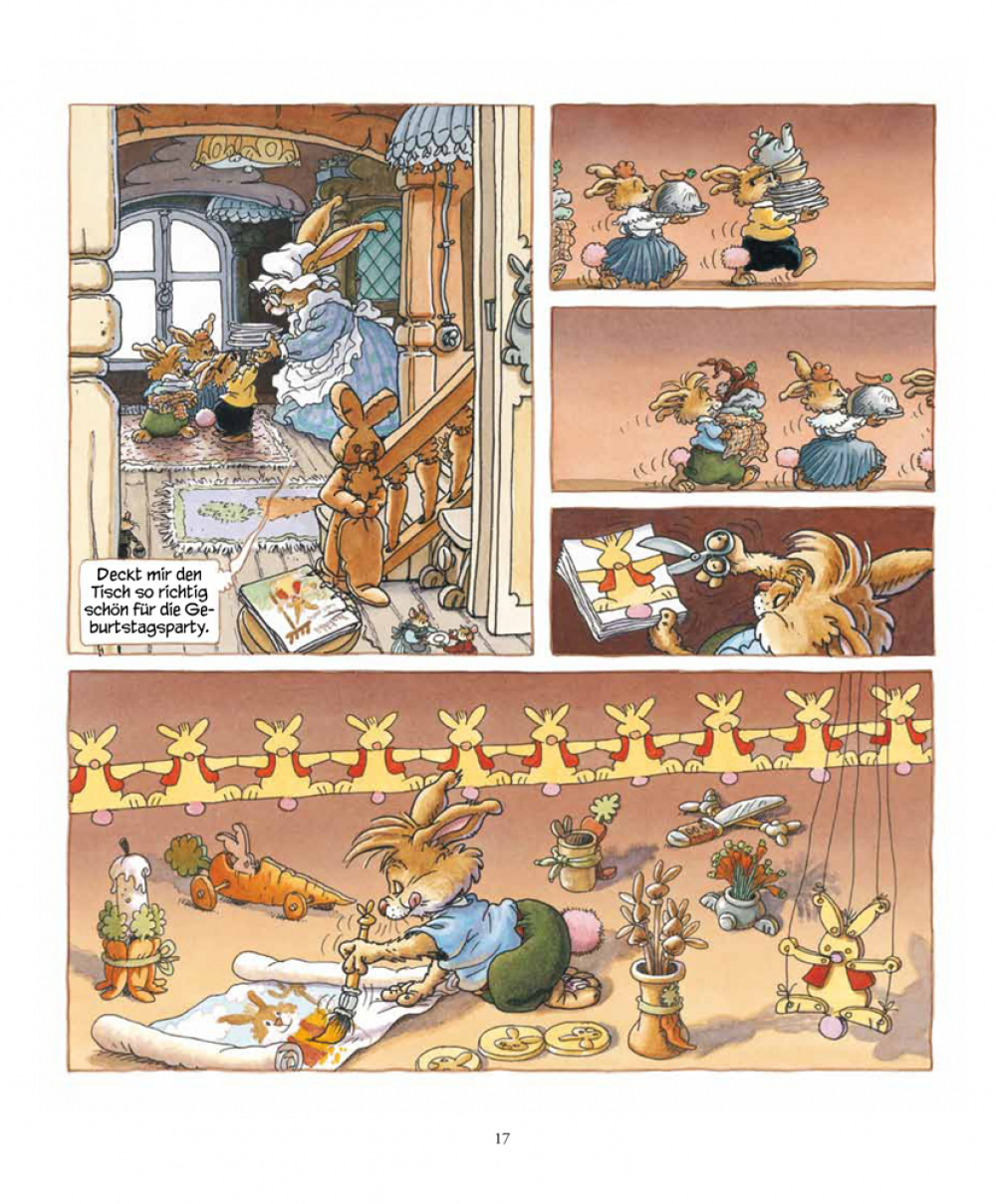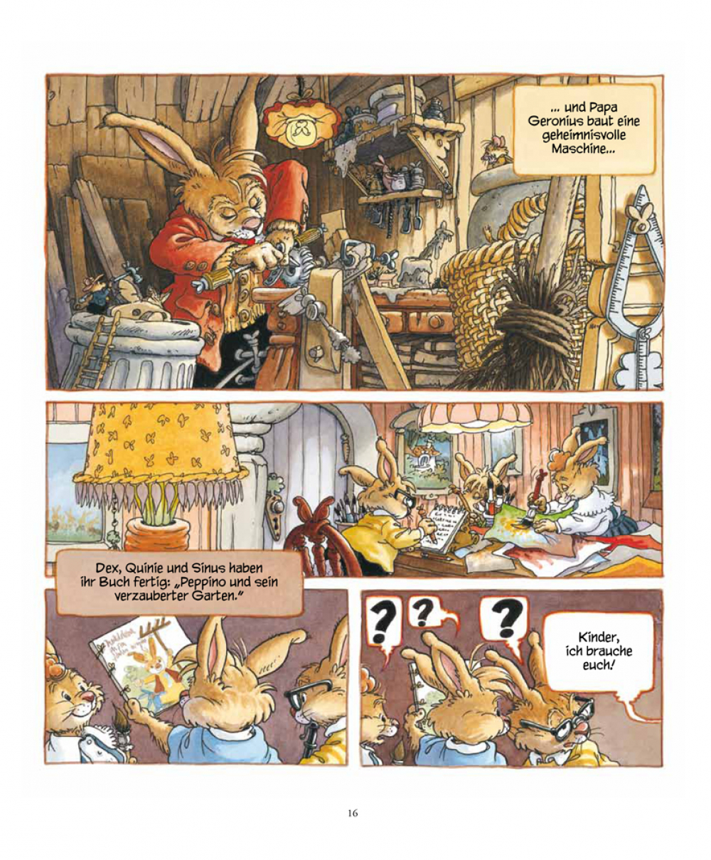 Die ganze Familie Hase arbeitet hart, um für ihn eine schöne Überraschungsparty zu organisieren. Tante Zinia bäckt und kocht, Papa Geronius bastelt an einem mysteriösen Geschenk. Und Quinie, Dex und Sinus schmücken den Tisch und arbeiten ihrerseits an einem persönlichen Geschenk für Peppino.