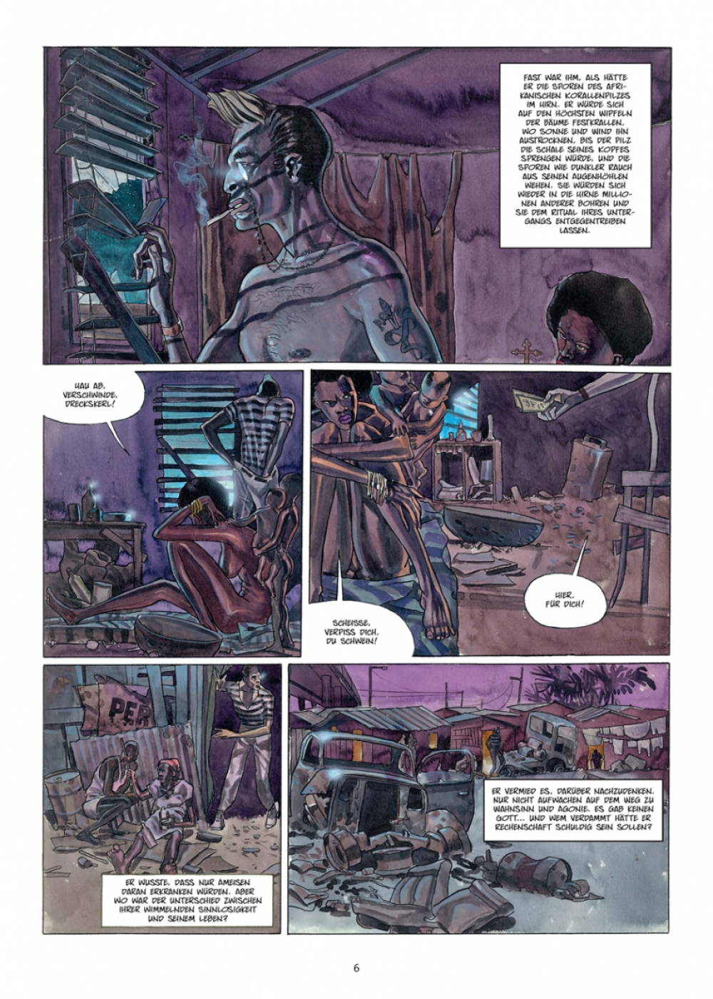 Mit »Die Haie von Lagos« zementierte Matthias Schultheiss seinen internationalen Ruf als meisterhafter Comiczeichern und Geschichtenerzähler. Ein modernes Piratenabenteuer in exotischer Kulisse, ein Lehrstück über Raubtierkapitalismus, das Recht des Stärkeren und die unendlichen Gier des Menschen, und das Porträt eines ziellosen Antihelden, der vor den Geistern seiner Vergangenheit davonläuft, nur um einem blutigen Schicksal in die Arme zu rennen – »Die Haie von Lagos« ist so kompromisslos wie einzigartig. Und in dieser Gesamtausgabe endlich wieder komplett verfügbar!