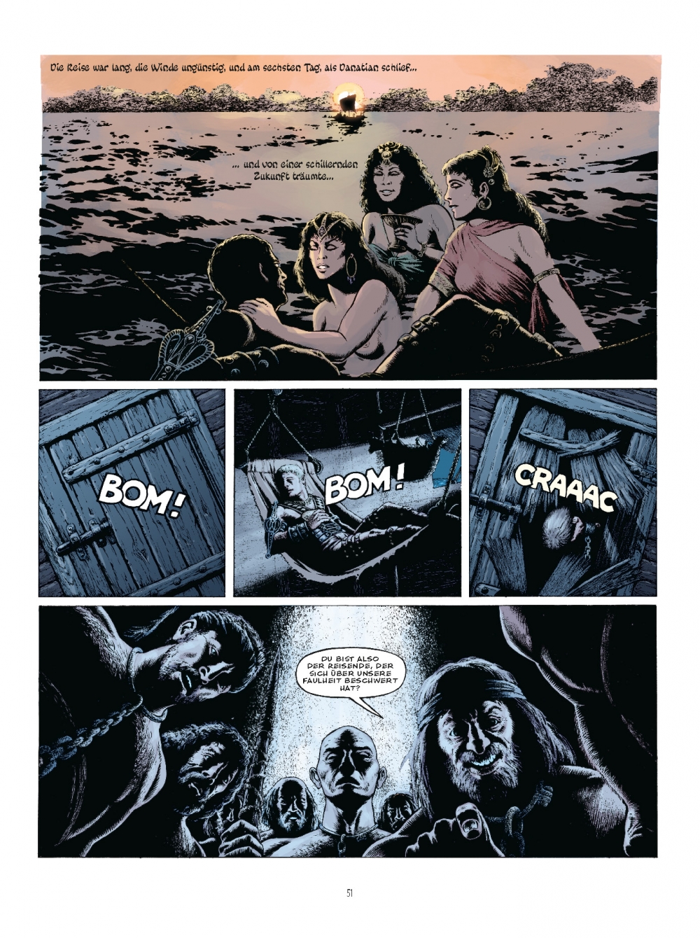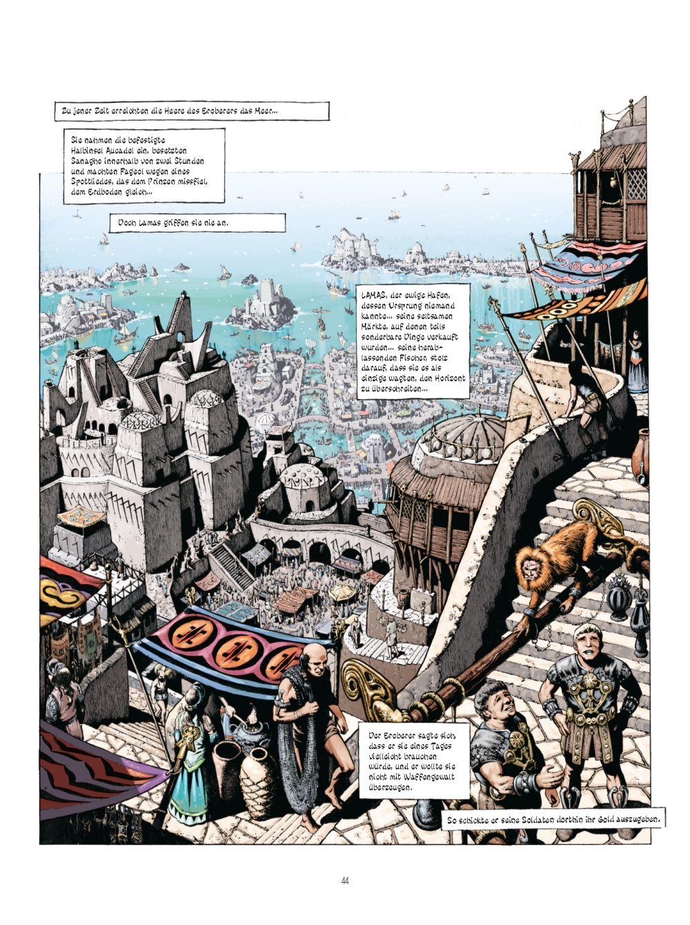 Die im Original Les Armées du conquérant betitelte Serie debütierte im April 1975 auf den Seiten des französischen Erwachsenencomicmagazins Métal Hurlant. In einer zeitlich nicht näher bestimmten Epoche angesiedelt, konnte die Heroic-Fantasy-Reihe neben Hochkarätern aus der Science-Fiction wie Arzach von Mœbius und Richard Corbens »Going Home« mühelos bestehen. Neben dem atemberaubenden Artwork überzeugen die Abenteuer der Heere des Eroberers durch ebenso überraschende wie schockierende Wendungen