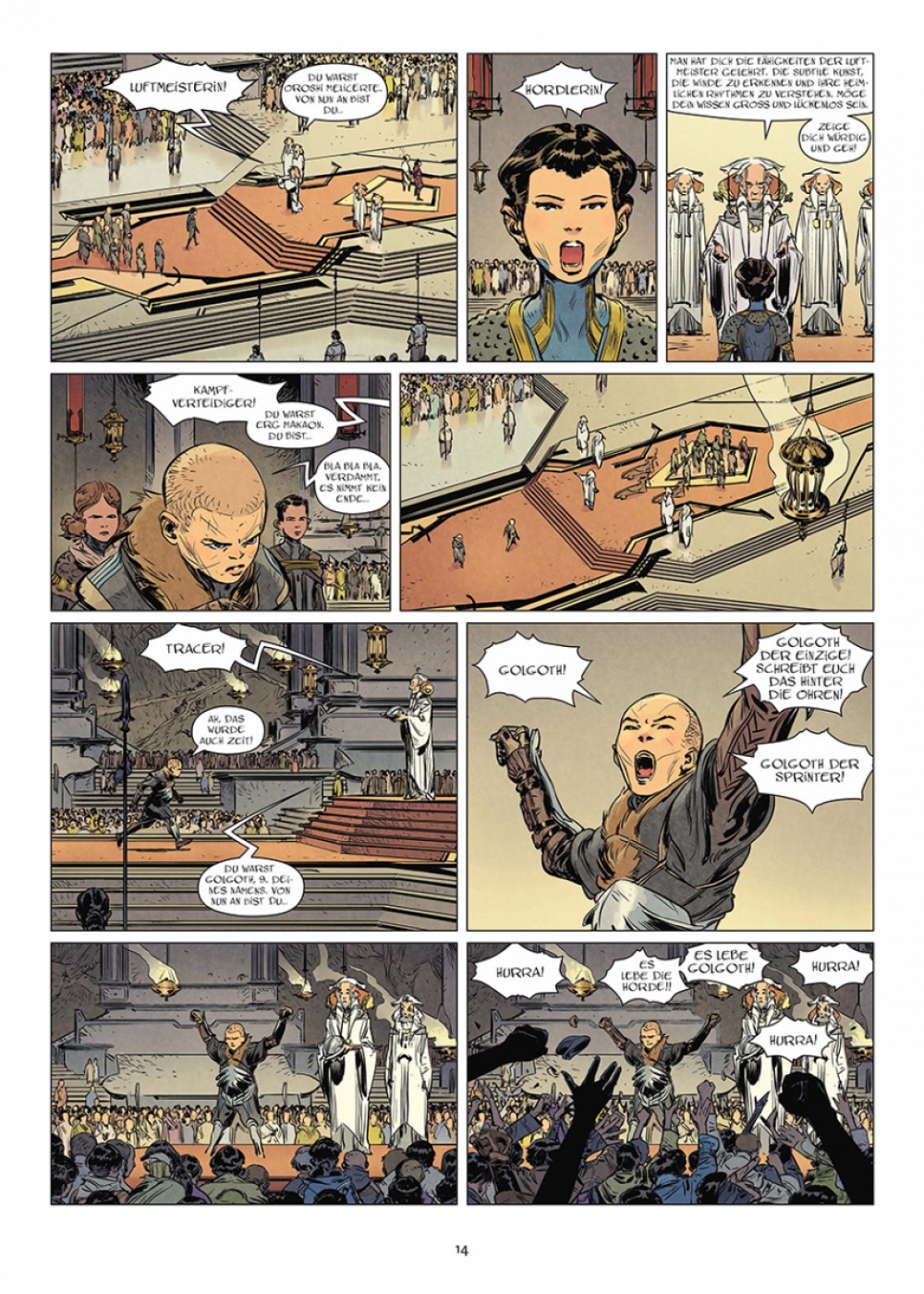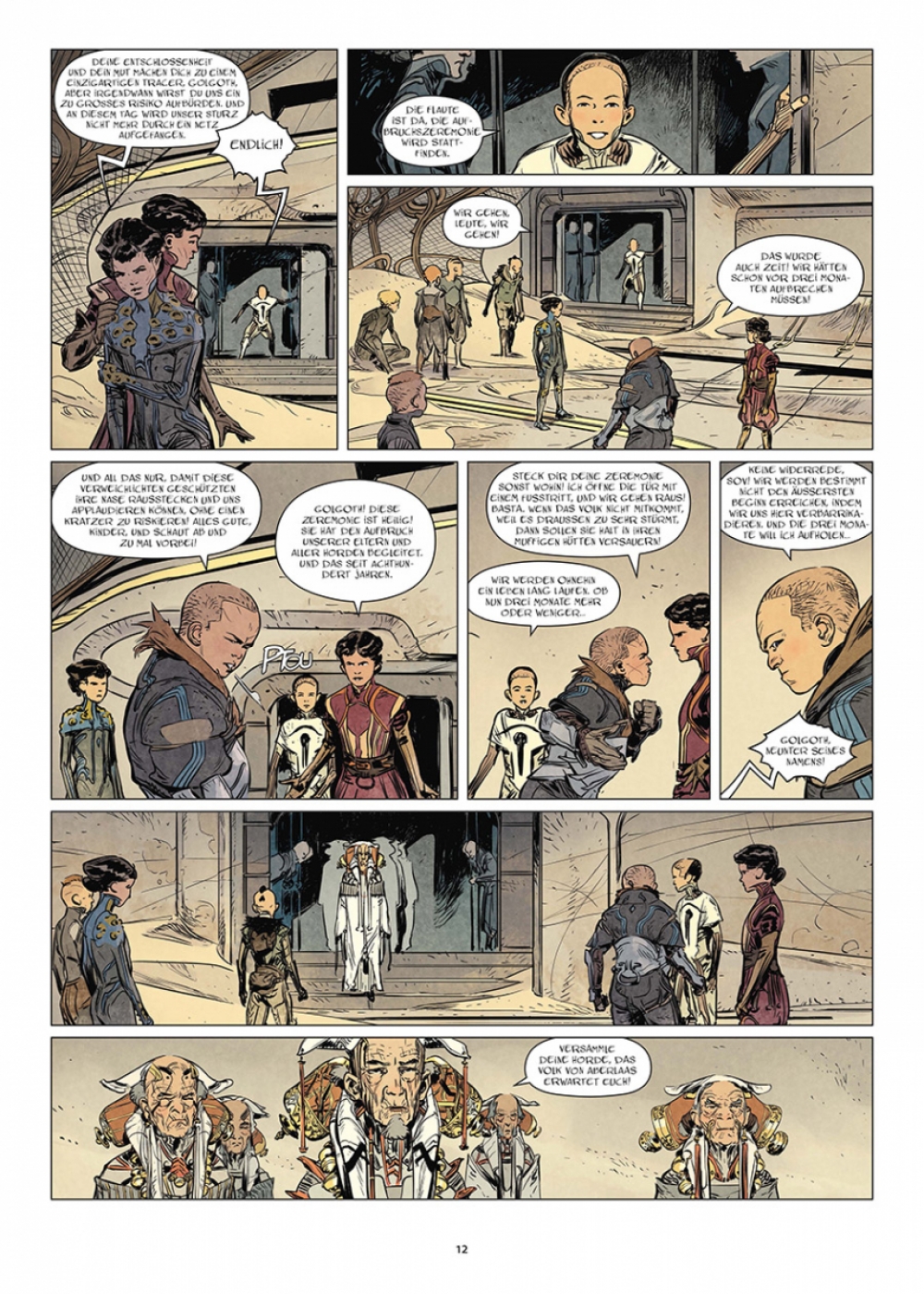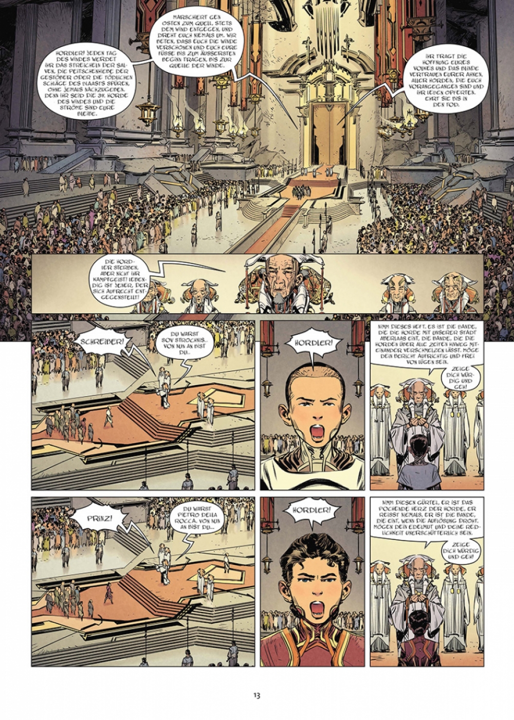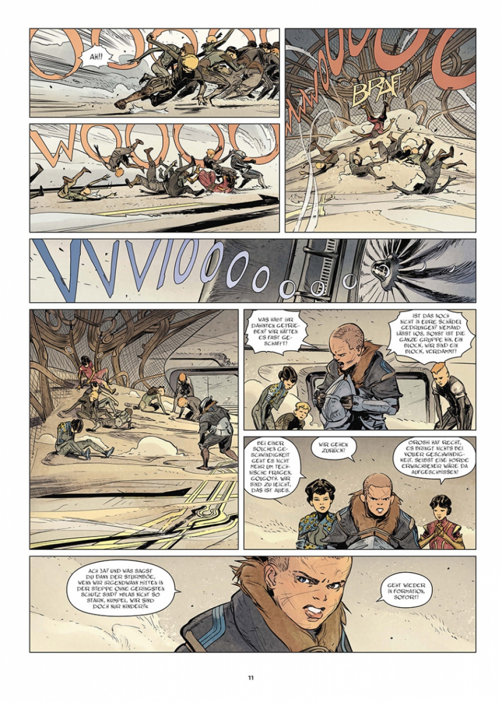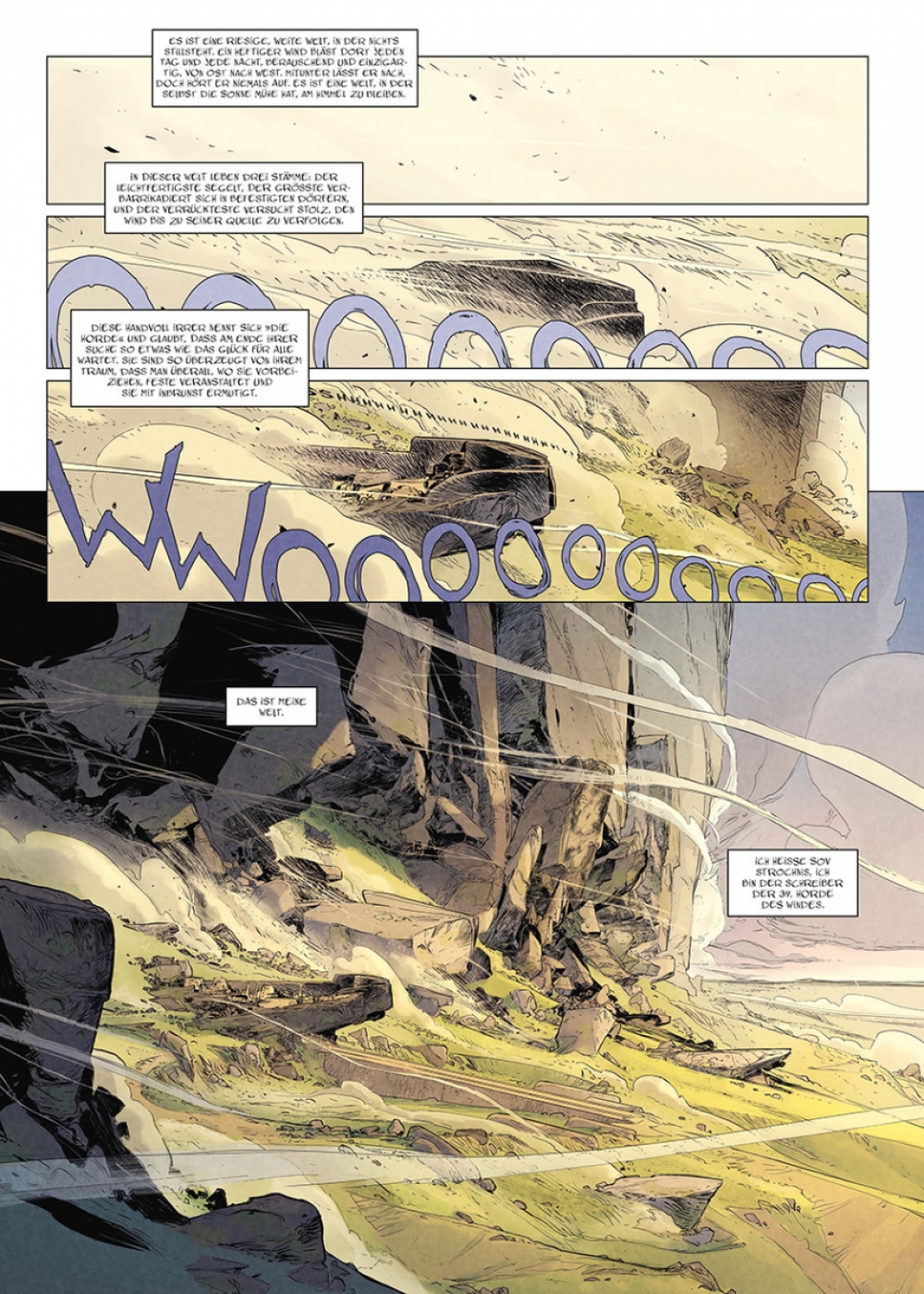 "Sie sind mehr als eine Gemeinschaft. Sie sind mehr als eine Familie. Sie sind die 34. Horde des Windes. Ihre Aufgabe ist es, die mythische Quelle des Windes zu erreichen, der ohne Unterlass über ihre Welt hinwegfegt und der das Leben ihres Volks zum ewigen Existenzkampf macht. Golgoth marschiert vorneweg, hinter ihm Sov, der Schreiber, dann der Rest. Sie waren noch halbe Kinder, als sie aufbrachen. Nun sind sie schon seit 27 Jahren unterwegs, und noch immer ist ihr Ziel nicht in Sicht. So kämpfen sie sich immer weiter voran, gegen den peitschenden Wind, einer ungewissen Erlösung entgegen…
