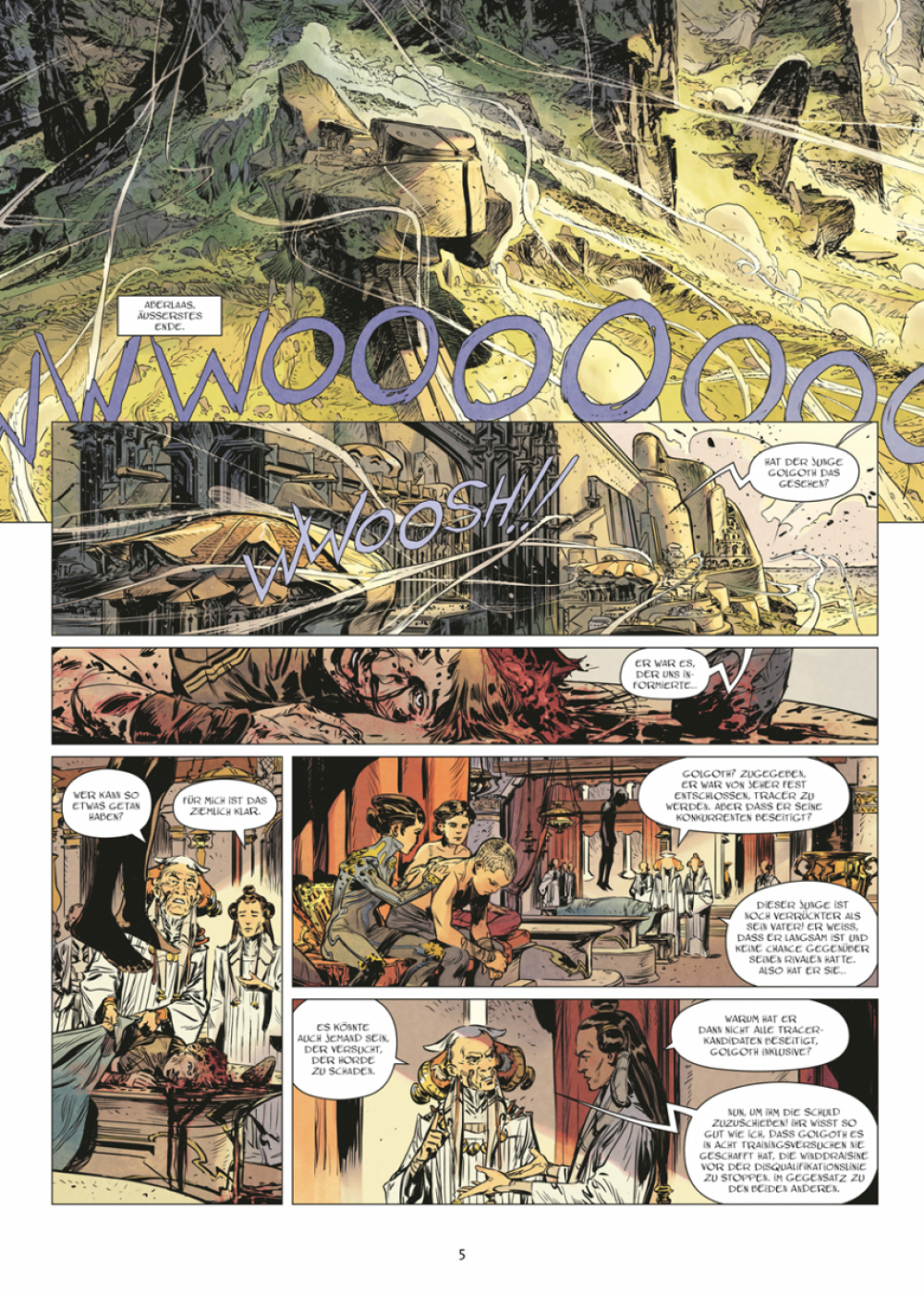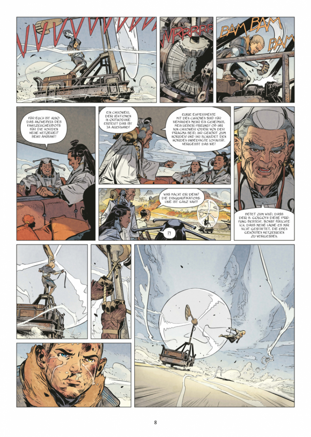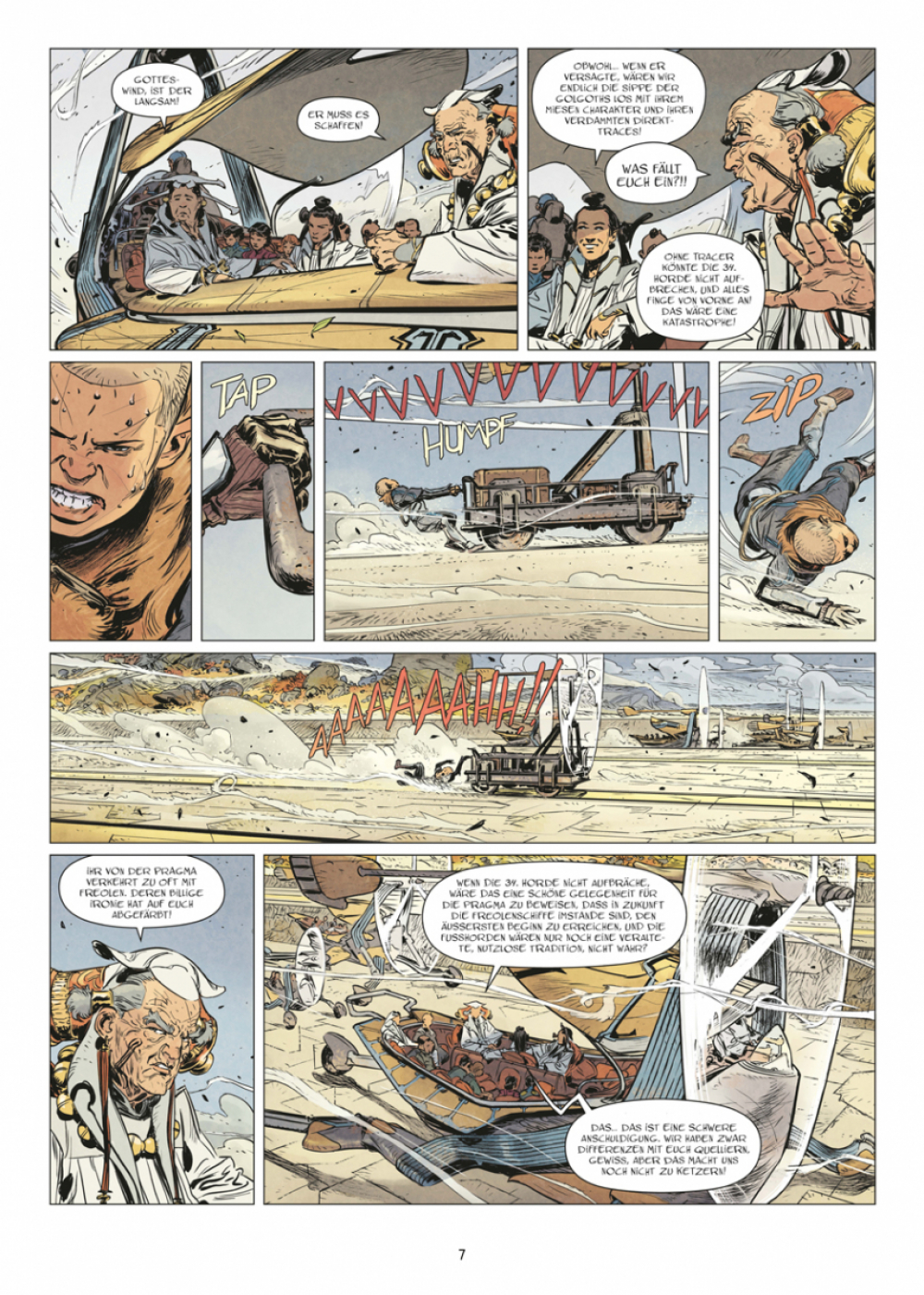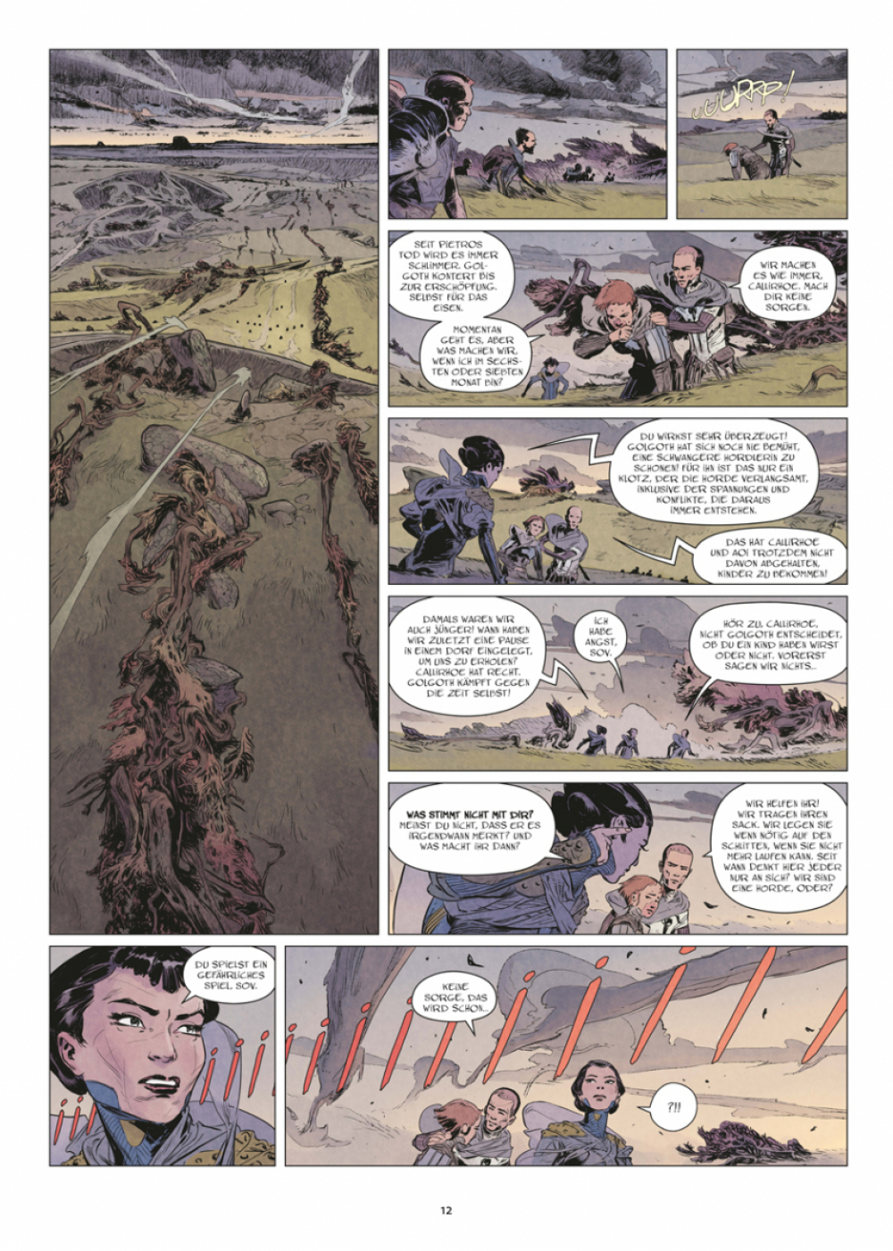 Inmitten der unermesslichen Steppe kreuzt die Horde den Weg der Physalis, eines Schiffes der Freolen-Flotte auf Mission zu den Dörfern der Geschützten. Unter Jubel werden die Hordler an Bord willkommen geheißen, und endlich können sie ein wenig Kraft für ihre lange Reise schöpfen. Doch zwischen den Feierlichkeiten und Ehrungen wächst Sovs Unbehagen: Sind die Freolen wirklich die Verbündeten, für die sie sich ausgeben? Und war diese Begegnung wirklich ein Zufall?