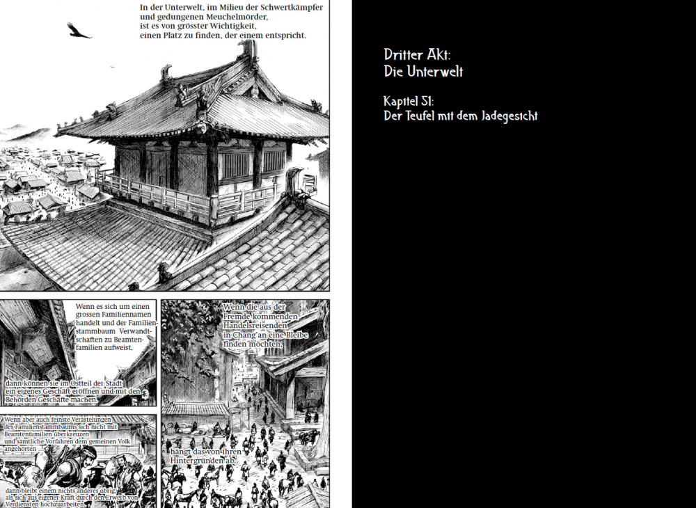 Nachdem sie sich von Ayuya verabschiedet haben, stossen Daoma und seine Weggefährten stossen, auf dem Weg zum Gebirgspass von Yumenguan auf eine Truppe von vom Kaiserhof entsandten Häschern. Gleichzeitig scheint im fernen Chang’an die Rebellengruppe der bunten Blüten Huayantuan wieder in Erscheinung zu treten ….