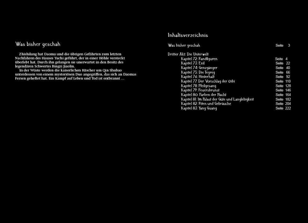 Um an den tief in seinem Herzen verankerten moralischen Grundsätzen festhalten zu können, entschliesst sich Pei Xingyan dazu, sich von seinem Onkel Pei Shiju zu distanzieren und fortan seinen eigenen Weg zu gehen. Gleichzeitig wird Ayuya, die sich von Daoma und den anderen Weggefährten verabschiedet hat, in einem entlegenen Winkel der Wüste zu einem Mitglied der